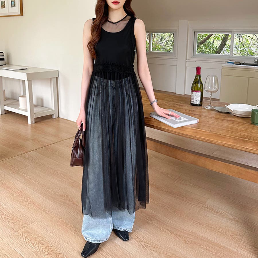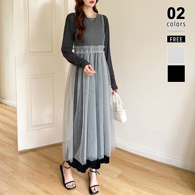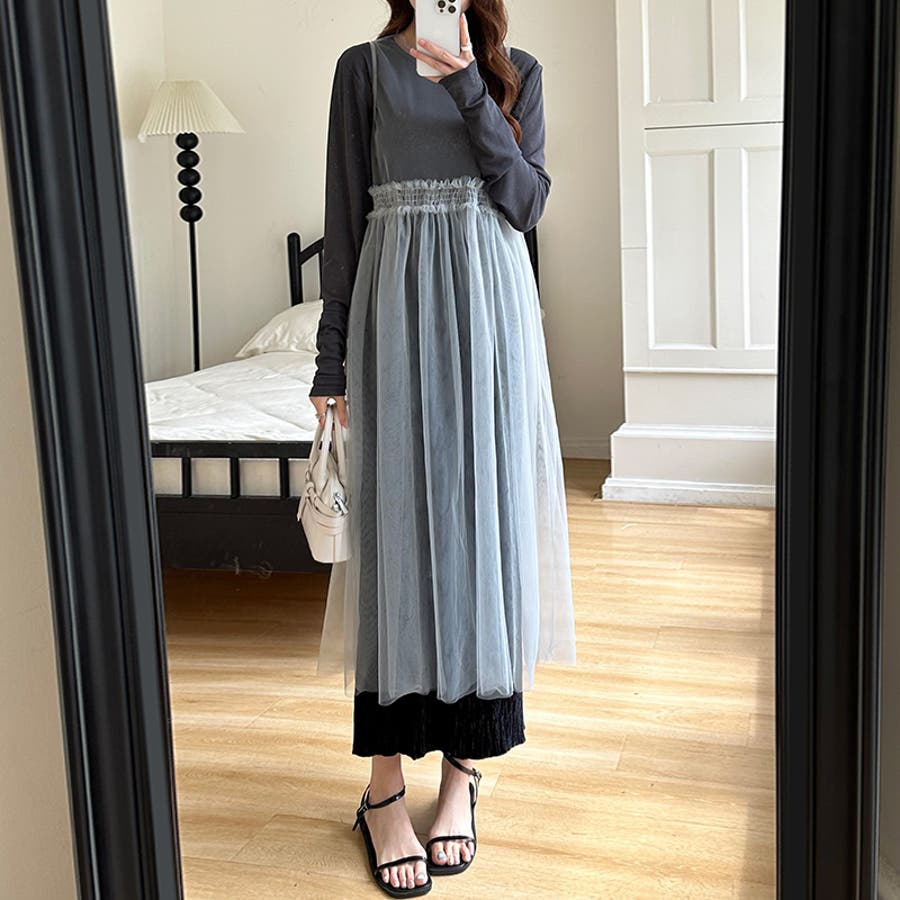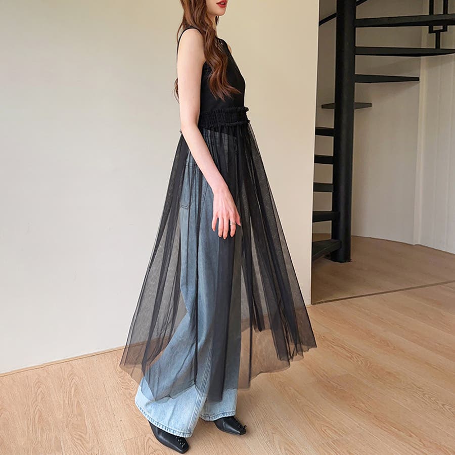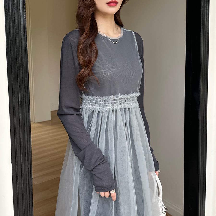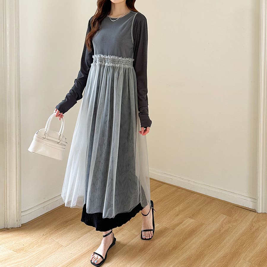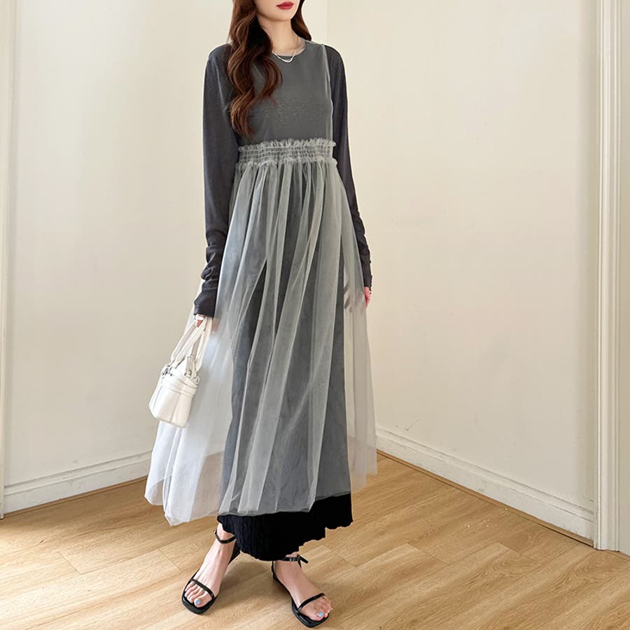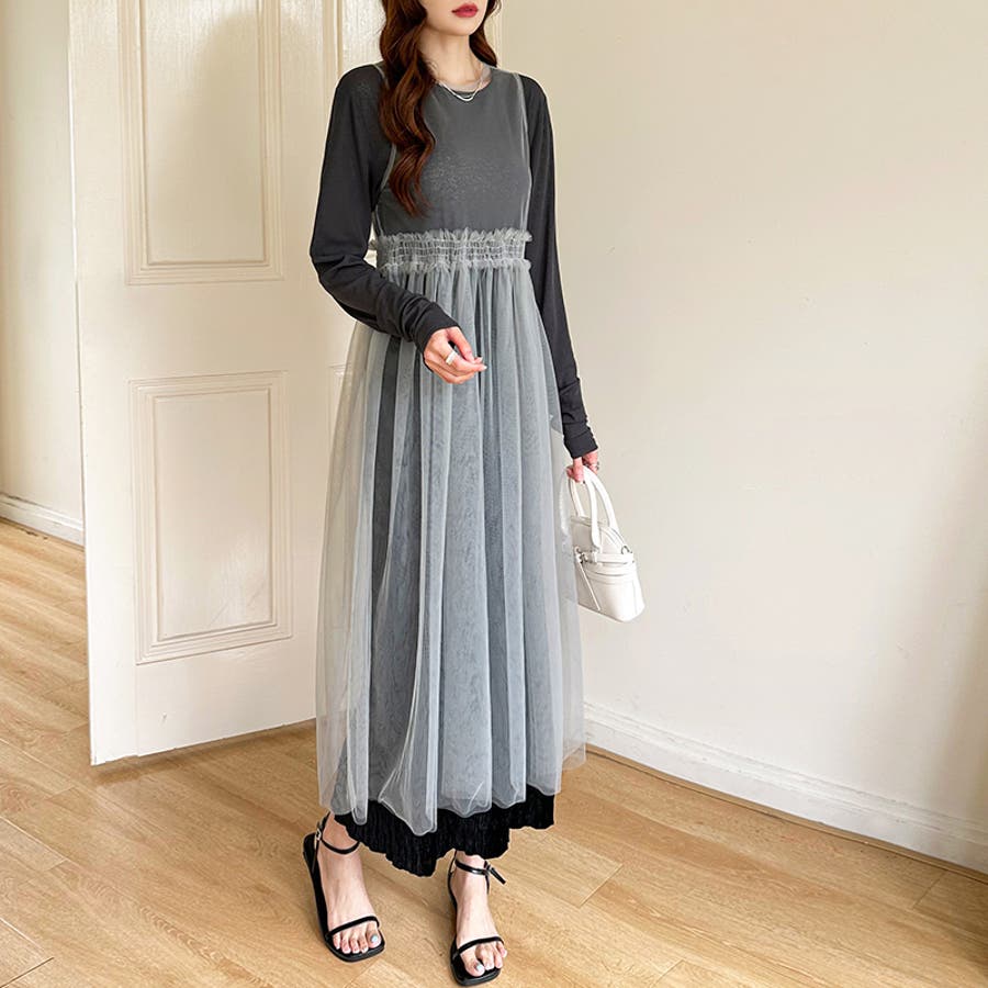 チュールワンピース レイヤードシアーワンピース ロングワンピース