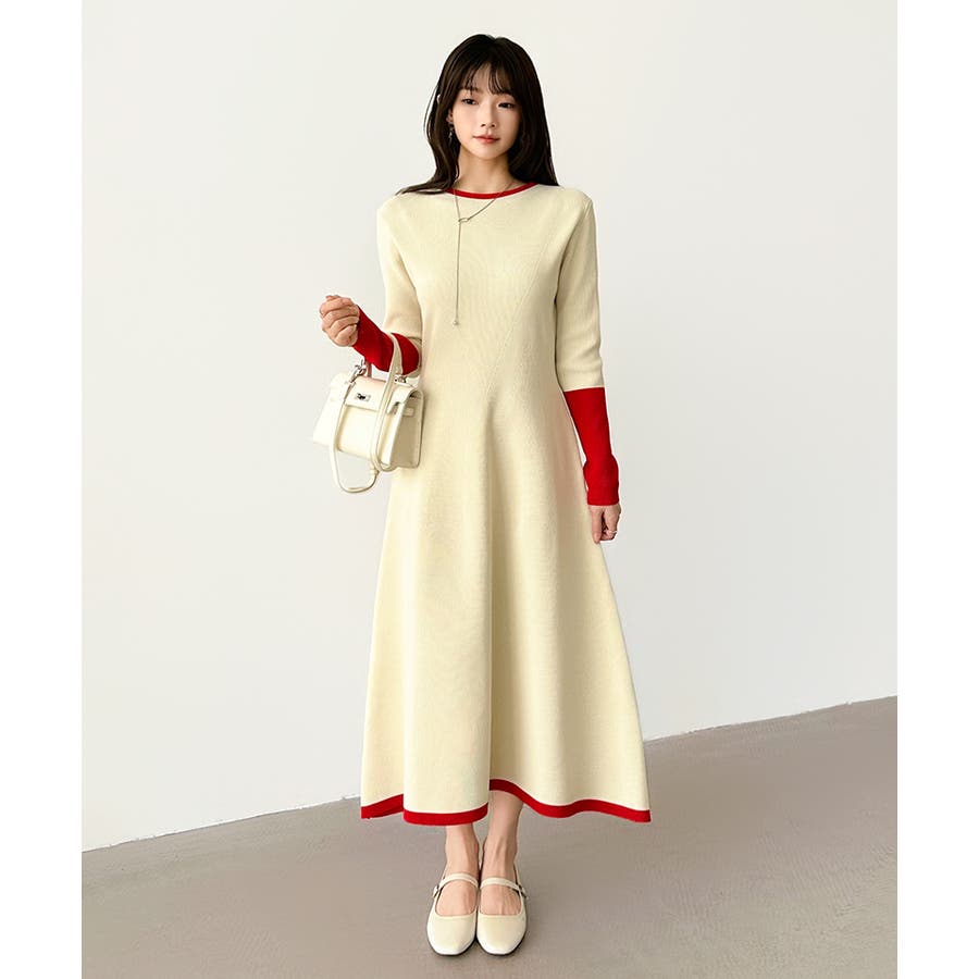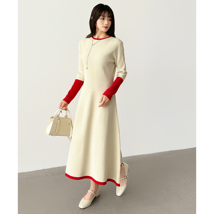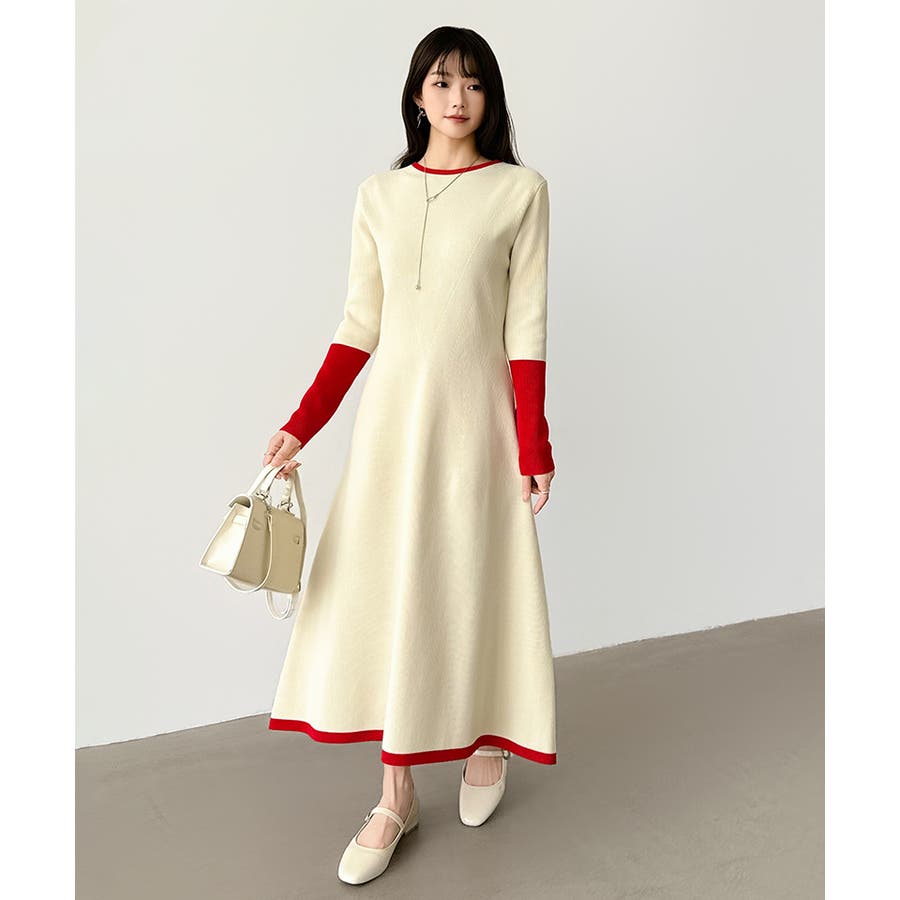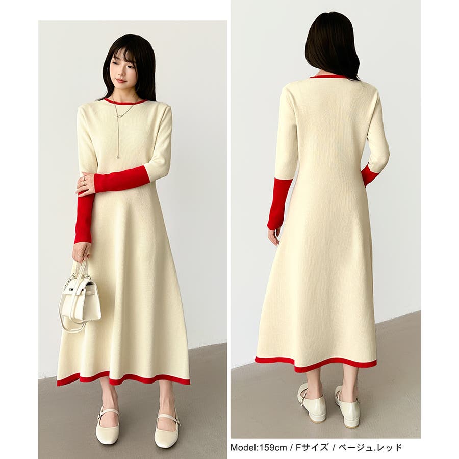 ワンピース ニット フレア Aライン ニットワンピース 長袖 レディース スポンジニット シンプル 配色 バイカラー aラインワンピース ミモレ丈 ロング フレアワンピース ダンボールニット ロングワンピース カジュアル ロング丈 ミモレ 丈 ロング丈ワンピース ミモレ丈ワンピース シンプルワンピース バイカラーワンピース 襟 スポンディッシュ ストレッチワンピース ロング丈ワンピ ワンピ ロングワンピ クルーネック クルーネックワンピース おしゃれ 体型カバー 無地 楽ちんワンピース 楽ちん 楽 軽い 伸縮性 着痩せ 着痩せワンピース 着痩せワンピ タイト フィット 細見え 袖 温かい 暖かい あたたかい あったか 長袖ワンピース 膝下 ひざ下 1枚で決まる シワになりにくい お出かけ おでかけ 旅行 オフィス オフィスカジュアル オフィスカジュアル秋冬 きれいめ きれい め 大人 かわいい 可愛い 大人可愛い オトナ女子 オシャレ 女性 女子 母 母親 ママ ママコーデ プチプラ トレンド ヒット 商品 おすすめ 服 ファッション コーデ コーディネート フリーサイズ フリー サイズ ベージュ レッド 赤 グリーン 緑 グレー 灰色 パープル 紫 グレージュ ブラック 黒 カラー 黒ワンピース ブラックワンピース ワンピース春 ワンピース秋 ワンピース冬 秋冬ワンピース 秋冬ワンピ 低身長 高身長 低身長さん 高身長さん ワンピース秋冬 ワンピースレディース ロングワンピースレディース 長袖ワンピースレディース 体型カバーワンピース 大人可愛いワンピース Aラインワンピース長袖 大人カジュアル 新作 秋冬 春 秋 冬 春服 秋服 冬服 秋物 冬物 春用 秋用 冬用 春物 秋物 冬物 韓国 韓国ファッション 10代 20代 30代 40代 50代 60代 70代 cocomomo ココモモ