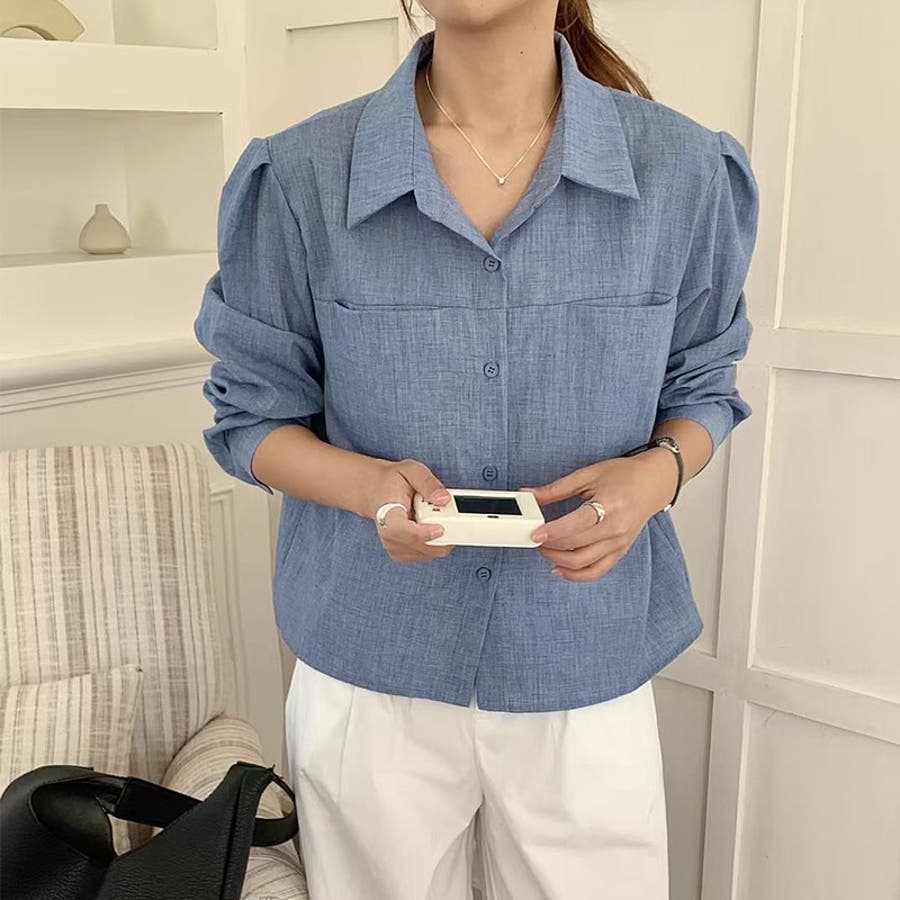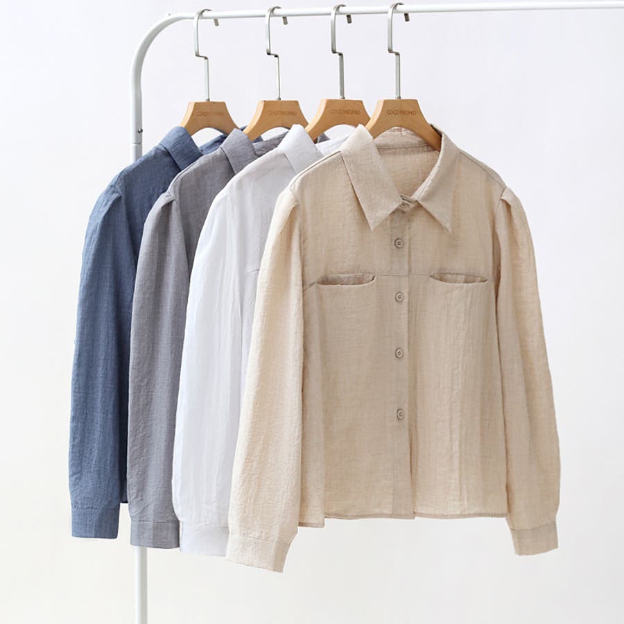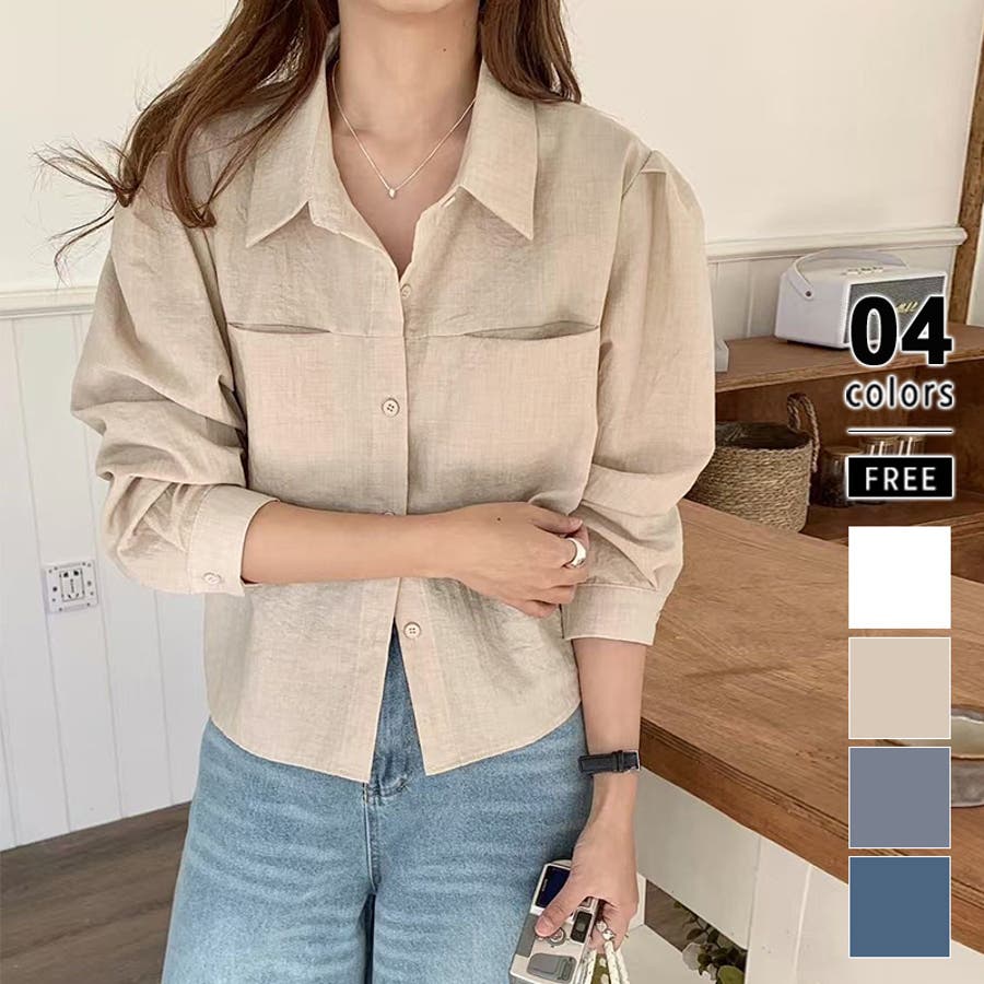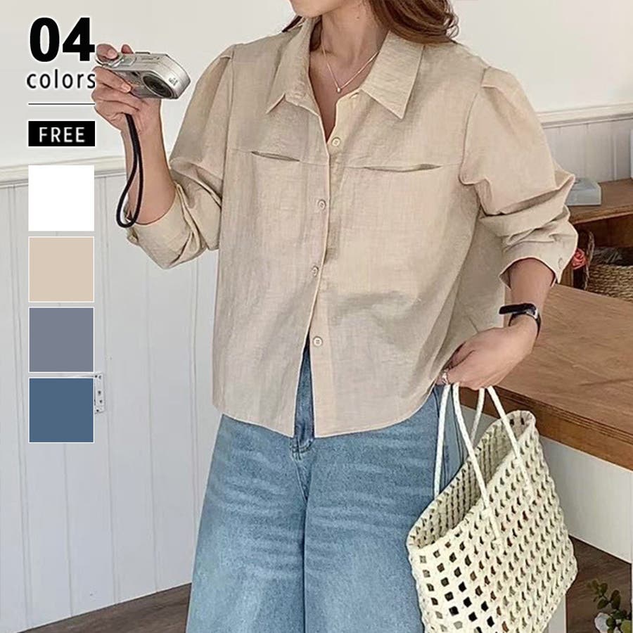 シャツ ショート丈 長袖 レディース クロップド丈 トップス おしゃれ カジュアル 羽織 シンプル ショートシャツ ショート 丈 短い シャツブラウス ゆったり クロップド シャツブラウスレディース ショートトップス ショート丈トップス ボリューム ボリューム袖 ボリュームスリーブ 襟 襟付き 襟あり 長袖シャツ 袖 開き 前 前ボタン ボタン 前あき 前開き ポケット 付き ポケット付き 肩 タック 透け感 さらさら 着回し 着まわし 無地 リネン風 麻風 tops 羽織る 羽織り ナチュラル 大人 オトナ かわいい 可愛い オシャレ 女性 母 母親 女 ママ プチプラ トレンド ヒット 商品 おすすめ 服 ファッション コーデ コーディネート 韓国ファッション服 韓国風 フリーサイズ フリー サイズ ホワイト 白 白シャツ ライトブラウン ブラウン 茶色 ブルー 青 グレー 灰色 カラー レディース春 レディース秋 レディース夏 レディース秋 レディース冬 長袖レディース 春トップス 夏トップス 秋トップス 秋トップスレディース 長袖トップス 長袖トップスレディース レディース秋物 新作 春夏 春 夏 秋 春服 夏服 秋服 春物 夏物 春用 夏用 韓国 韓国ファッション 10代 20代 30代 40代 50代 60代 cocomomo ココモモ