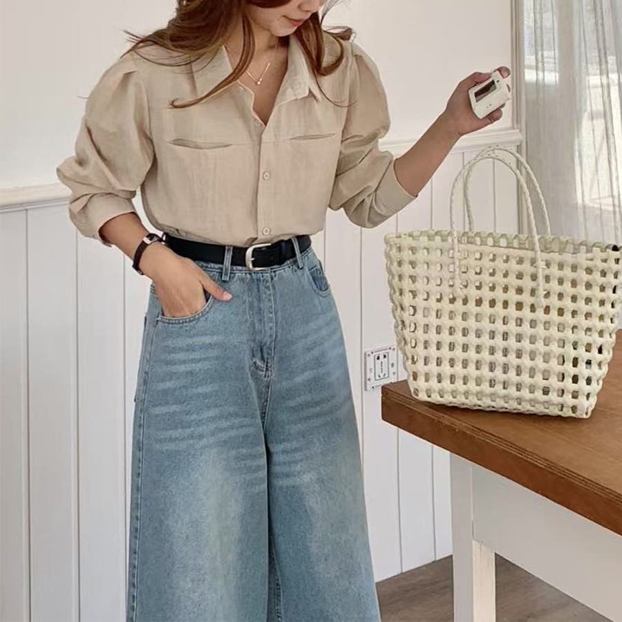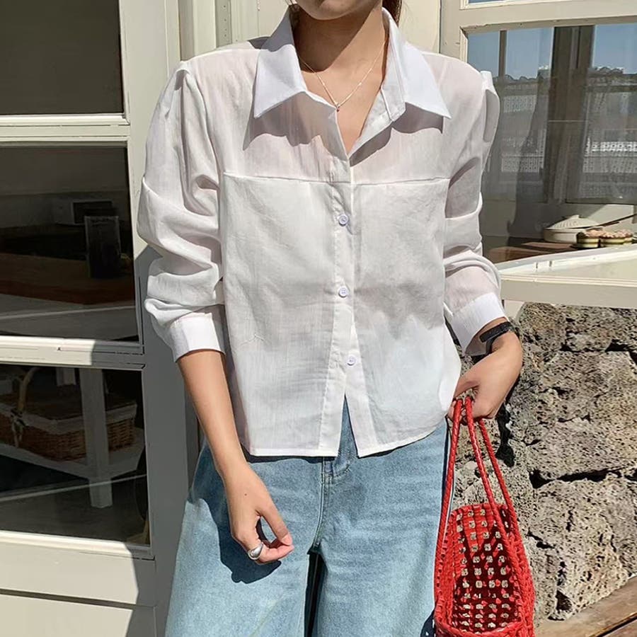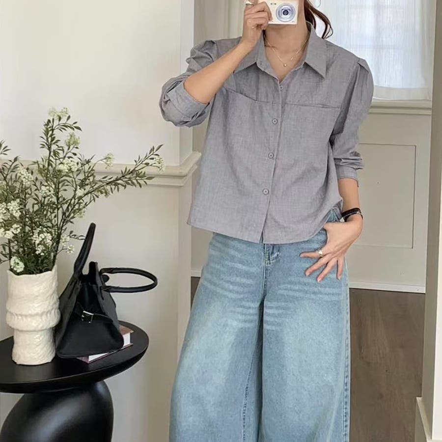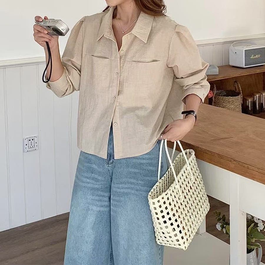 シャツ ショート丈 長袖 レディース クロップド丈 トップス おしゃれ カジュアル 羽織 シンプル ショートシャツ ショート 丈 短い シャツブラウス ゆったり クロップド シャツブラウスレディース ショートトップス ショート丈トップス ボリューム ボリューム袖 ボリュームスリーブ 襟 襟付き 襟あり 長袖シャツ 袖 開き 前 前ボタン ボタン 前あき 前開き ポケット 付き ポケット付き 肩 タック 透け感 さらさら 着回し 着まわし 無地 リネン風 麻風 tops 羽織る 羽織り ナチュラル 大人 オトナ かわいい 可愛い オシャレ 女性 母 母親 女 ママ プチプラ トレンド ヒット 商品 おすすめ 服 ファッション コーデ コーディネート 韓国ファッション服 韓国風 フリーサイズ フリー サイズ ホワイト 白 白シャツ ライトブラウン ブラウン 茶色 ブルー 青 グレー 灰色 カラー レディース春 レディース秋 レディース夏 レディース秋 レディース冬 長袖レディース 春トップス 夏トップス 秋トップス 秋トップスレディース 長袖トップス 長袖トップスレディース レディース秋物 新作 春夏 春 夏 秋 春服 夏服 秋服 春物 夏物 春用 夏用 韓国 韓国ファッション 10代 20代 30代 40代 50代 60代 cocomomo ココモモ