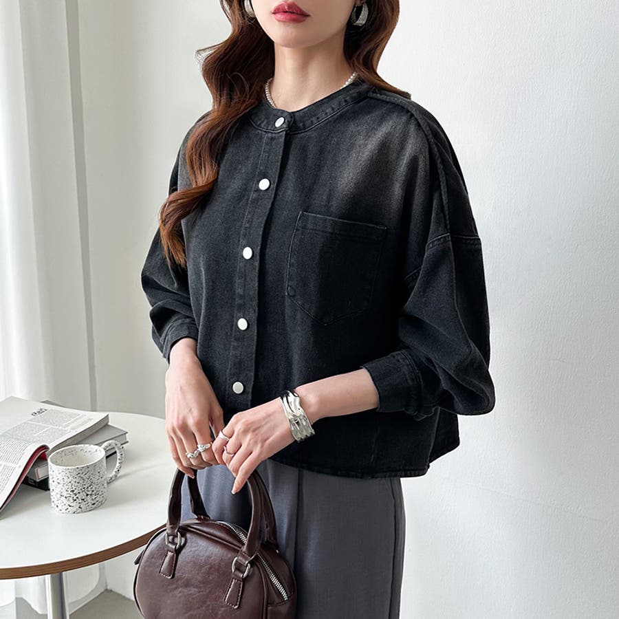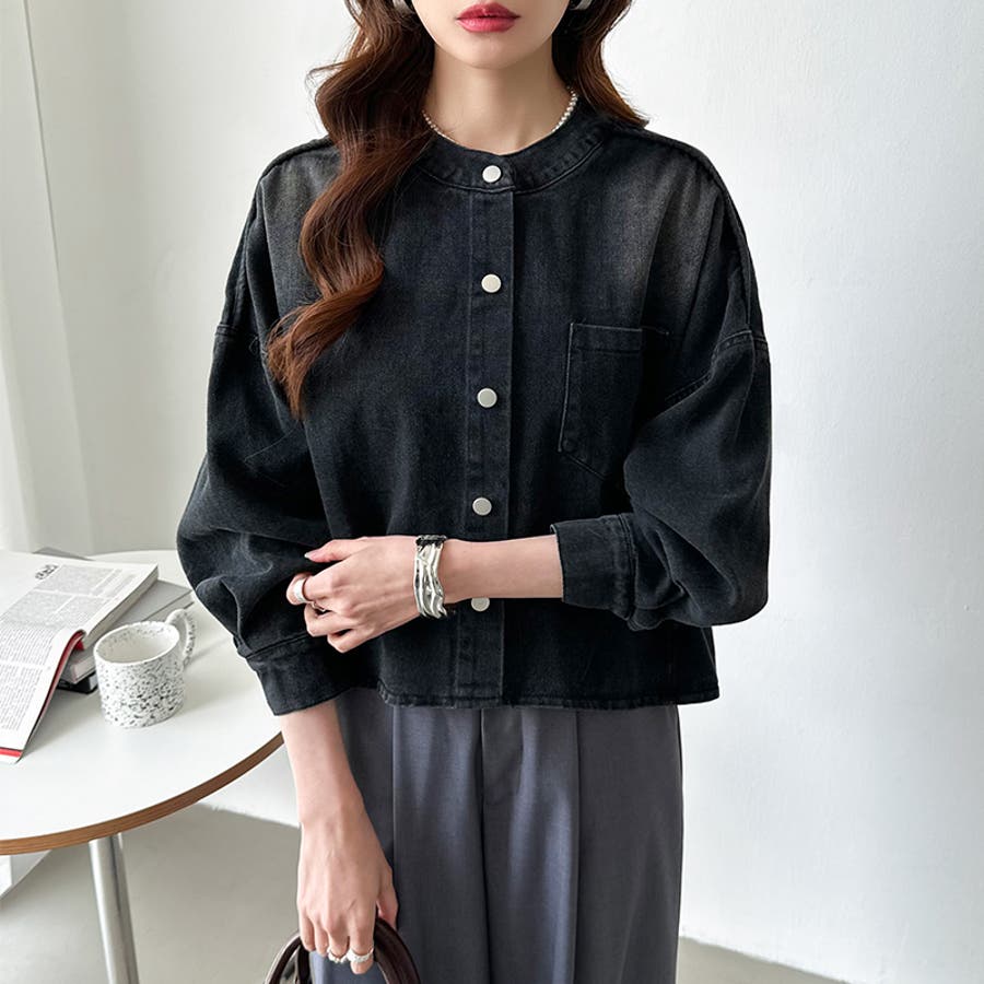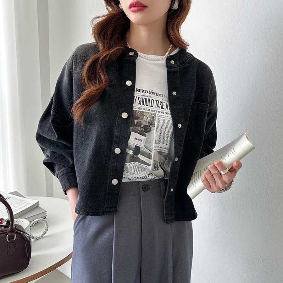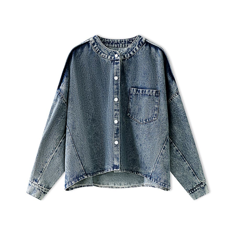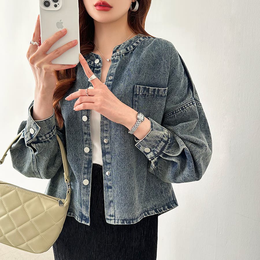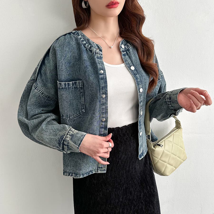 ノーカラーデニムジャケット。
