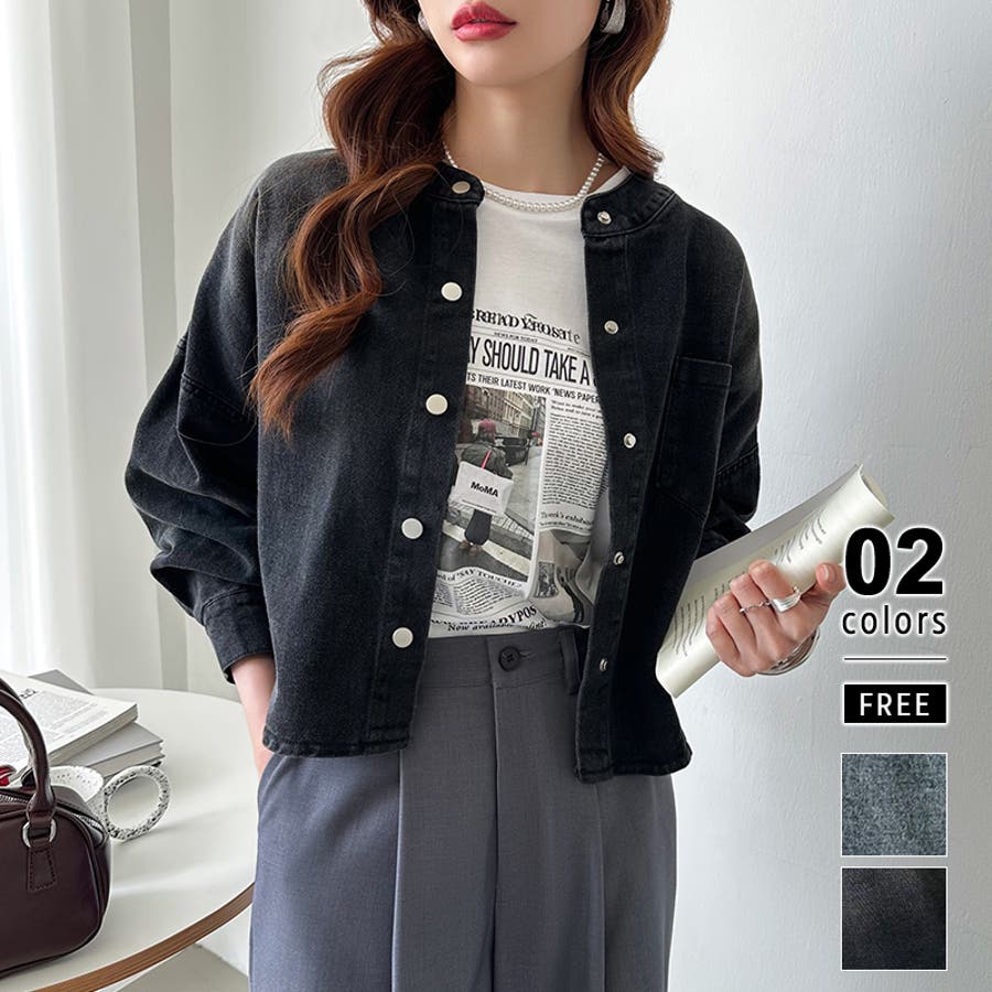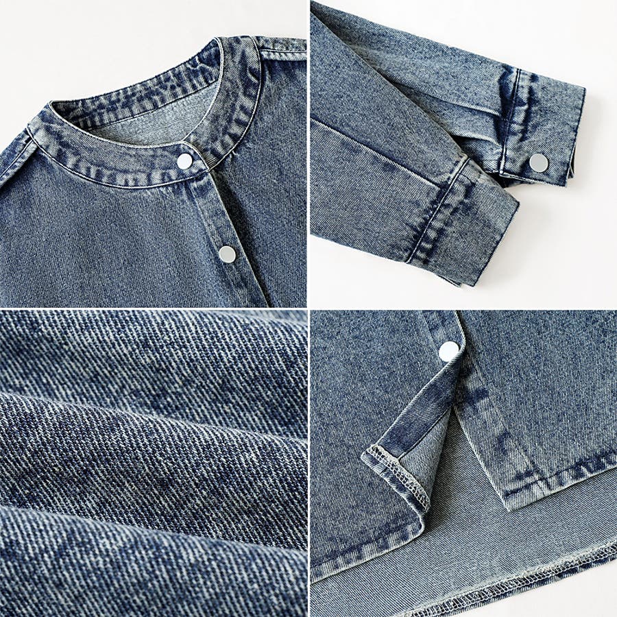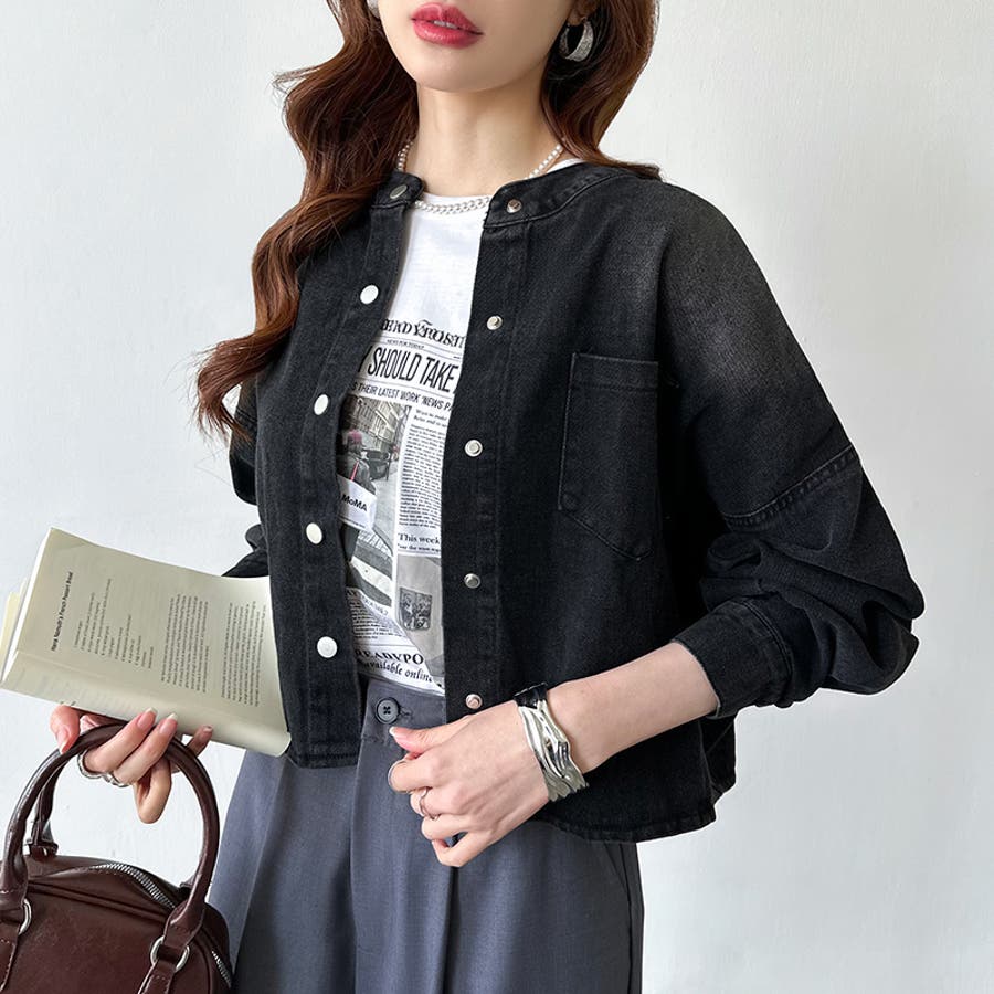 ノーカラーデニムジャケット ショート丈 デニムジャケット