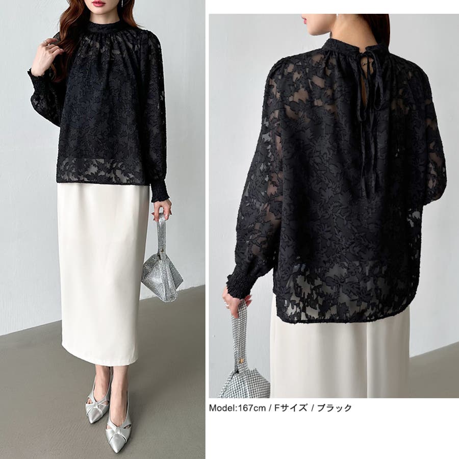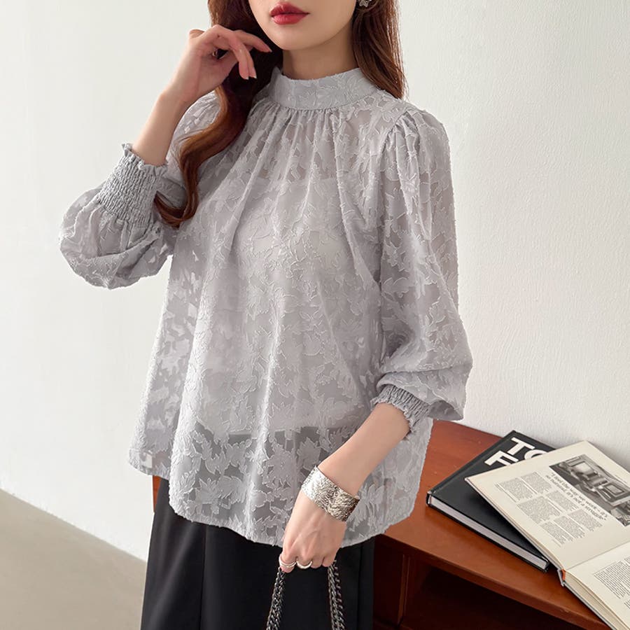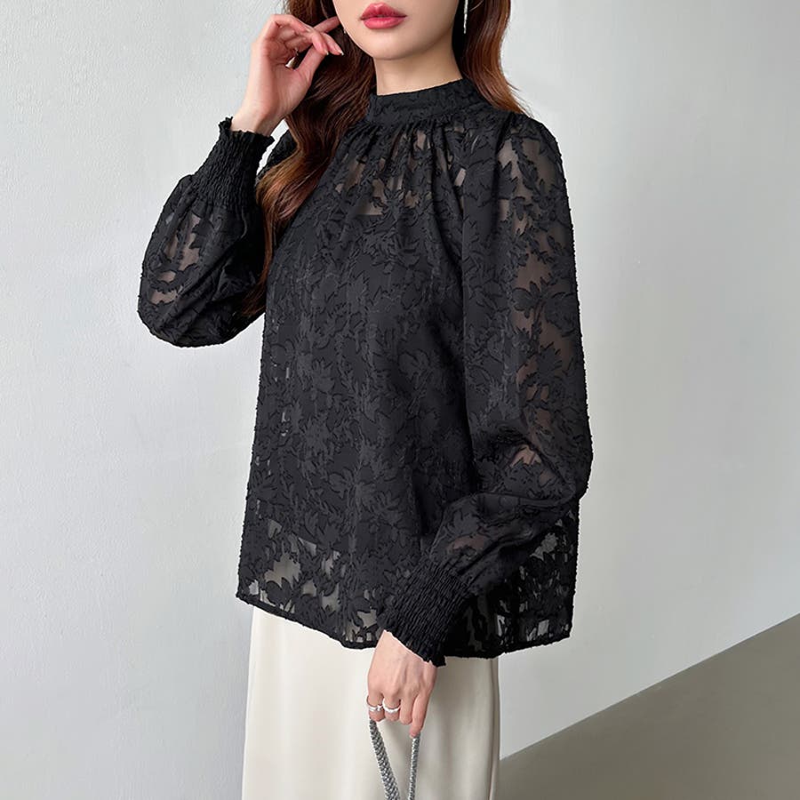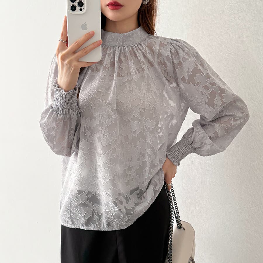 フラワージャガードブラウス シアーブラウス ブラウス