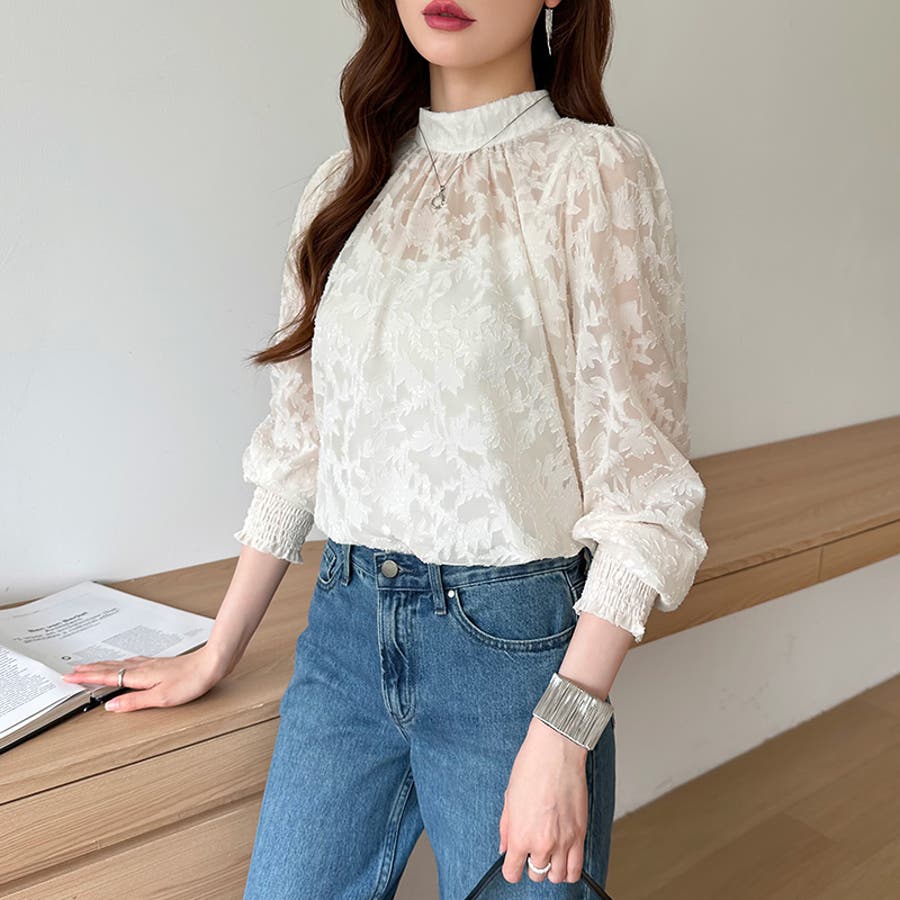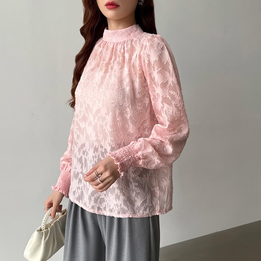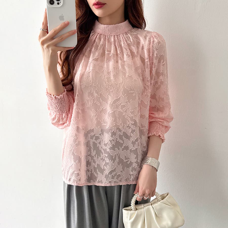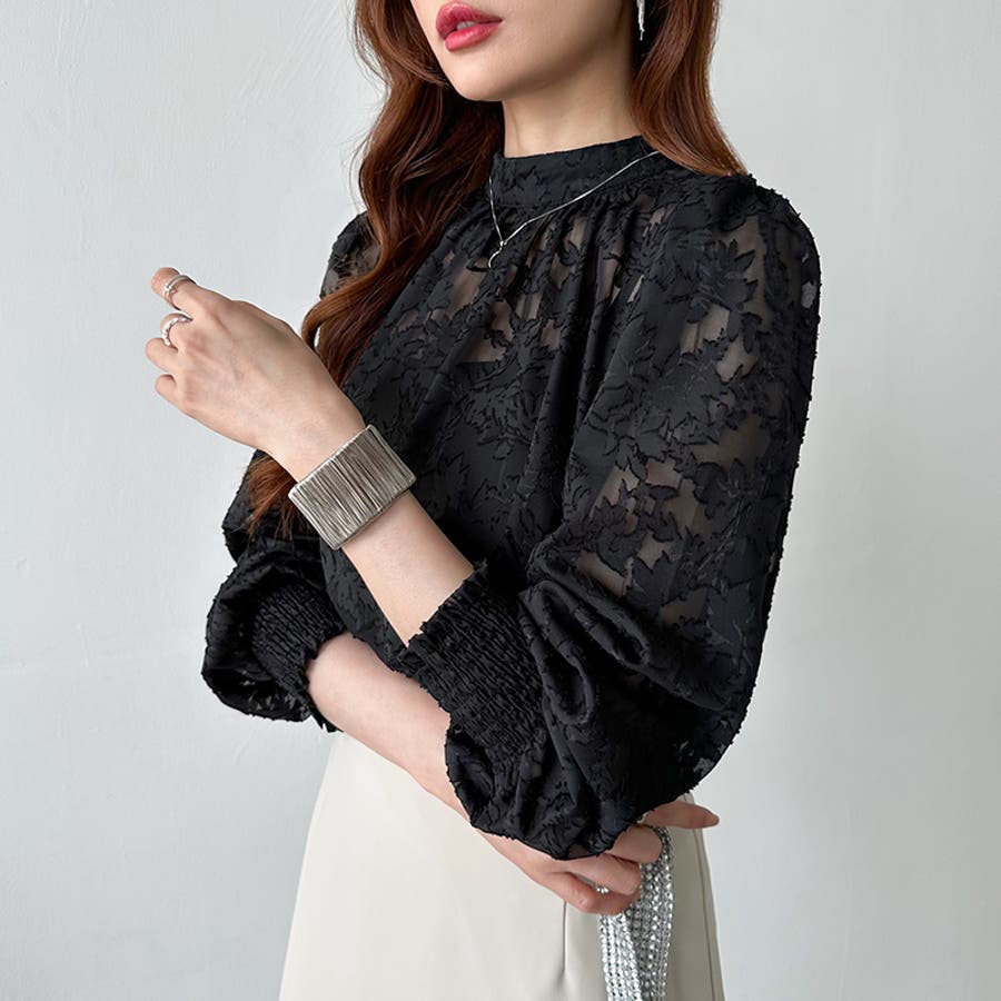 フラワージャガードブラウス シアーブラウス ブラウス
