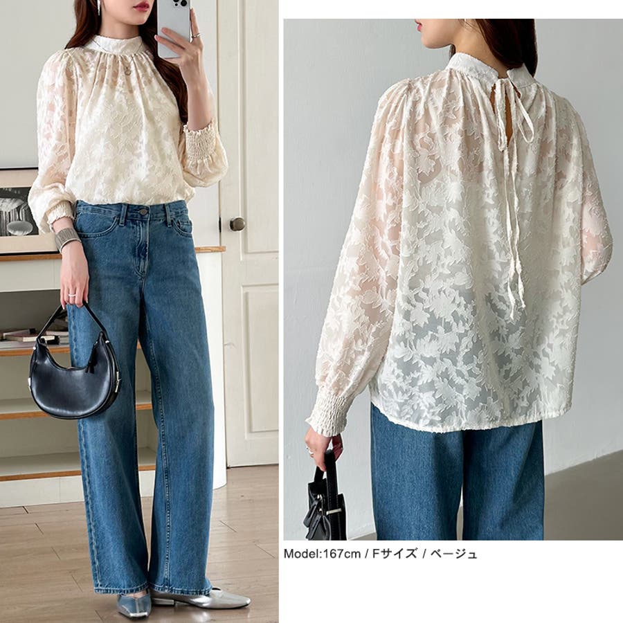 ブラウス シアーブラウス ジャガード ジャガードブラウス 長袖 レディース フラワージャガード フォーマル きれいめ 透け感 トップス オフィス オフィスカジュアル おしゃれ シアー ハイネック 花柄 ゆったり スタンドカラー ボリューム袖 リボン バックリボン バックリボンブラウス 重ね着 レイヤード 重ね ボリュームスリーブ バルーン袖 バルーンスリーブ 袖 ぽわん袖 ポワン ぽわん ボタニカル 柄ブラウス ブラウス柄 レース 柄 フリンジ プルオーバー カットソー シャツブラウス 袖ゴム 袖口 ゴム シャーリング 体型カバー 体型 カバー 二の腕カバー 二の腕 カバー 透け シャツブラウスレディース tops セレモニー 結婚式 お呼ばれ パーティ パーティー オケージョン 謝恩会 お宮参り 同窓会 顔合わせ 二次会 発表会 演奏会 演奏 発表 会 冠婚葬祭 学校行事 行事 参観日 誕生日 式典 成人式 懇談会 食事会 女子会 デート バースデー 会社 仕事 ビジネス 服装 事務服 通勤 通学 大学 大学生 ol OL 会社 オフィスカジュアル オフィカジ オフィスカジュアル春夏 オフィスレディース カジュアル きれい め 綺麗め 大人 オトナ かわいい 可愛い 大人可愛い オシャレ 女性 母 母親 女 ママ プチプラ 高見え 高級感 トレンド ヒット 商品 おすすめ 服 ファッション コーデ コーディネート フリー サイズ フリーサイズ ベージュ グレー 灰色 ピンク ブルー 青 水色 ブラック 黒 カラー レディース春 レディース夏 レディース秋 春トップス 夏トップス 夏ブラウス ブラウス白 新作 春夏 春 夏 春服 夏服 春物 夏物 春用 夏用 韓国 韓国ファッション 10代 20代 30代 40代 50代 60代 cocomomo ココモモ