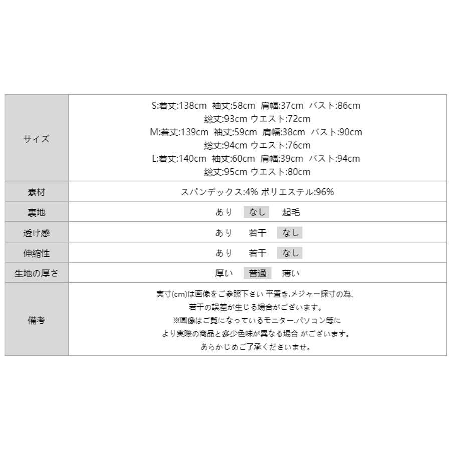 | サイズ | S: 着丈 138cm 袖丈 58cm 肩幅 37cm バスト 86cm ウエスト 72cm M: 着丈 139cm 袖丈 59cm 肩幅 38cm バスト 90cm ウエスト 76cm L: 着丈 140cm 袖丈 60cm 肩幅 39cm バスト 94cm ウエスト 80cm |