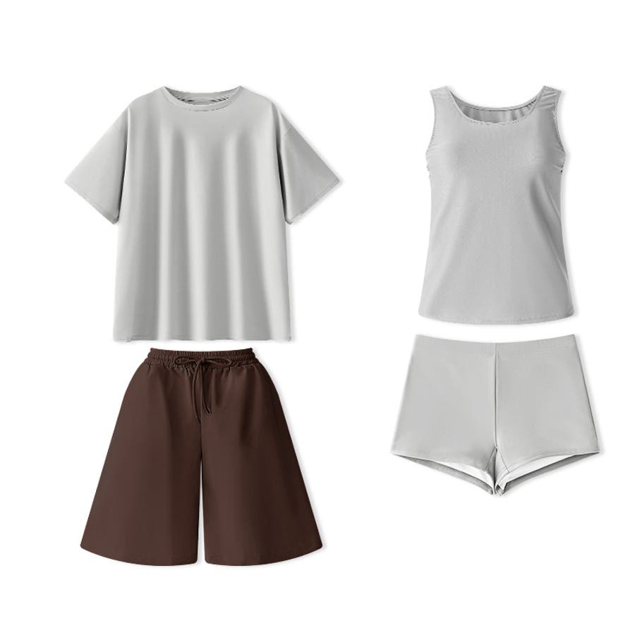 水着 レディース ラッシュガード 体型カバー タンキニ 4点セット ハーフパンツ 半袖 カップ付き タンクトップ ショートパンツ セパレート 上下 セット セットアップ ママ水着 水陸両用 パンツ 一体型 大きいサイズ おしゃれ 服みたいな 大人 水陸 両用 上下セット 水着セット 四点セット そで ノースリーブ セパレート水着 カバーアップ 4点 4点セット トップス ボトムス 半ズボン ズボン ボトム ハイウエスト Tシャツ tシャツ 半袖tシャツ パッド パット カップ 胸パッド付き レディース水着 二の腕カバー 体型がカバー 体型カバー水着 レディース体型カバー 水着体型カバー ゆったり 大きめ 大きい サイズ 体型 カバー 隠し ラッシュ ガード ラッシュガードレディース ラッシュガードレディース上下 ラッシュガードセット ラッシュガード付き ラッシュガードレディース大きいサイズ フードなし シンプル クルーネック プルオーバー 太もも バスト 胸 カバー カバーアップ 伸縮性 ストレッチ ウエストゴム 紐 水遊びパンツ 下 着たまま 上着 露出少なめ 露出少ない 洋服みたい 服 紫外線対策 日焼け 日焼け対策 脱ぎ着しやすい 着せ 海 プール ビーチ リゾート マリン 海水浴 夏休み 旅行 スイム ウェア ビーチウェア スイムウェア スポーティ スポーティー オトナ女子 女性 女子 可愛い かわいい 大人可愛い オシャレ 高校生 学生 ママ ママ水着 母 女性 マタニティ 水着レディース プチプラ 高見え m l xl M L XL サイズ Mサイズ Lサイズ XLサイズ ホワイト 白 グレー 灰色 ライトブラウン ブラウン ブルー 青 水色 カーキ 緑 ブラック 黒 水着レディース 新作 春夏新作 春夏 春 夏 韓国 韓国ファッション 10代 20代 30代 40代 50代 60代 cocomomo ココモモ