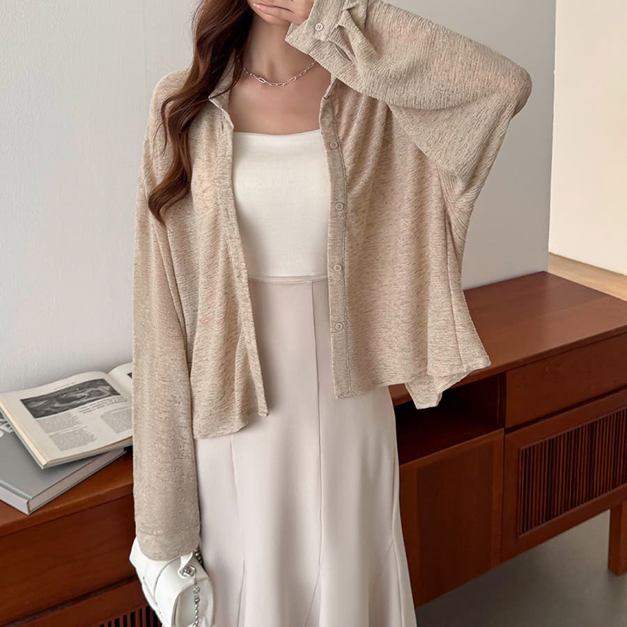 シアーシャツ バックスリット シアー カーディガン レディース きれいめ サマー シャツ 長袖 薄手 ゆったり シアーカーディガン 涼しい ドロップショルダー トップス オフィス オフィスカジュアル 透け感 羽織 襟付き スリット スリット入り 入り ショート ショート丈 ボリューム袖 おしゃれ 体型カバー ブラウス シアーブラウス ボリュームスリーブ ぽわん ぽわん袖 シアーシャツレディース 重ね着 レイヤード シャツブラウス シャツブラウスレディース 長袖シャツ 袖 開き 前 前ボタン ボタン 前あき 前開き さらさら 薄い 着回し 着まわし 無地 シンプル tops 羽織る 羽織り 羽織もの 上着 冷房対策 日焼け対策 紫外線対策 UV対策 オフィカジ オフィスカジュアル春夏 ナチュラル 上品 きれい め 綺麗め 大人 オトナ かわいい 可愛い 大人可愛い オシャレ 女性 母 母親 女 女子 ママ プチプラ 高見え 高級感 トレンド ヒット 商品 おすすめ 服 ファッション コーデ コーディネート 韓国ファッション服 韓国風 フリーサイズ フリー サイズ ベージュ 茶色 グレー 灰色 ブラック 黒 カラー レディース春 レディース秋 レディース夏 レディース秋 長袖レディース 春トップス 夏トップス 秋トップス 秋トップスレディース 長袖トップス 長袖トップスレディース レディース秋物 新作 春夏 春 夏 秋 春服 夏服 春物 夏物 春用 夏用 韓国 韓国ファッション 10代 20代 30代 40代 50代 60代 cocomomo ココモモ