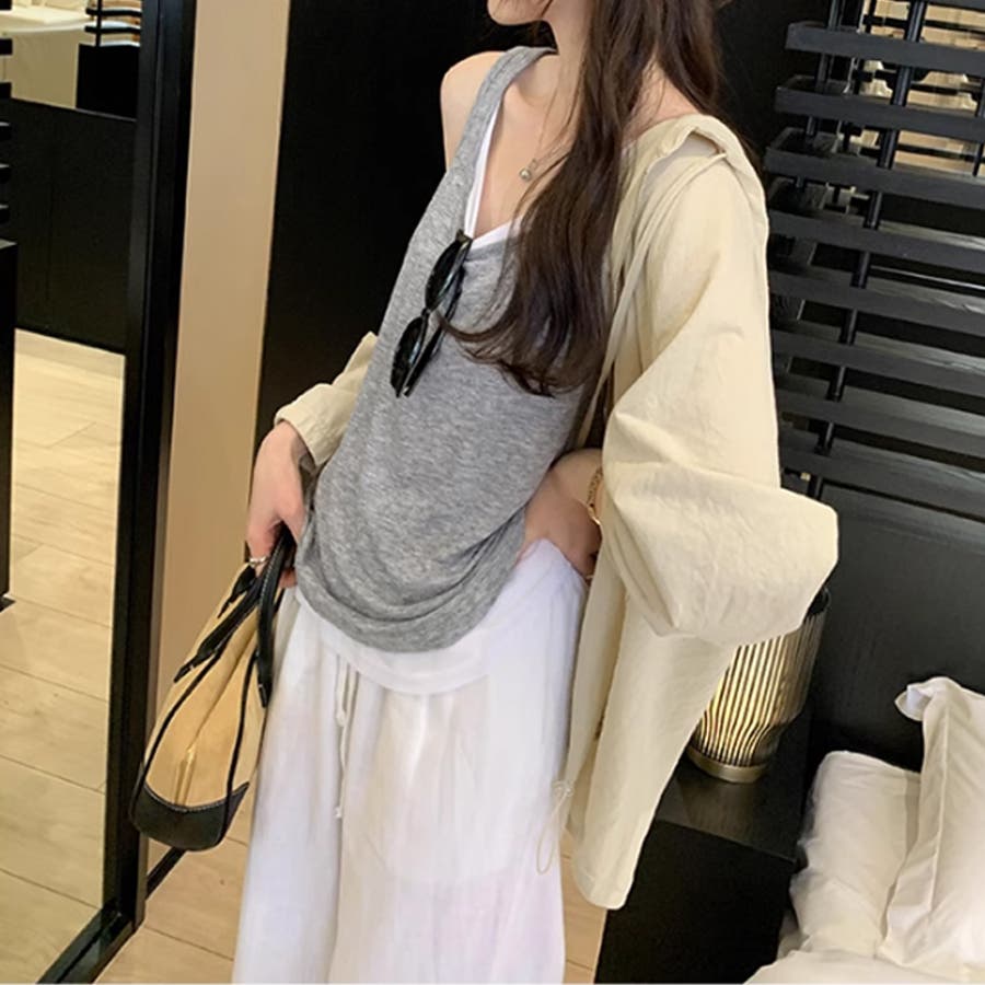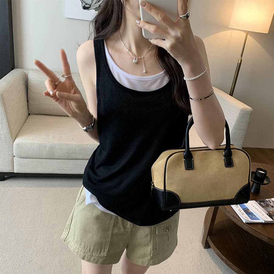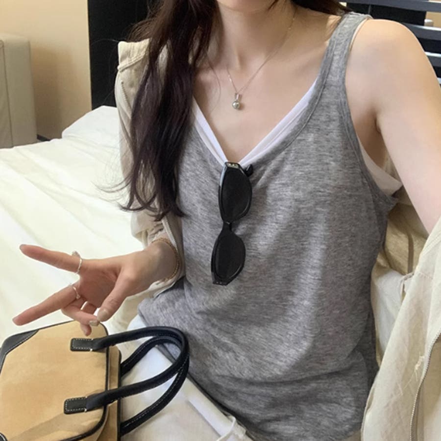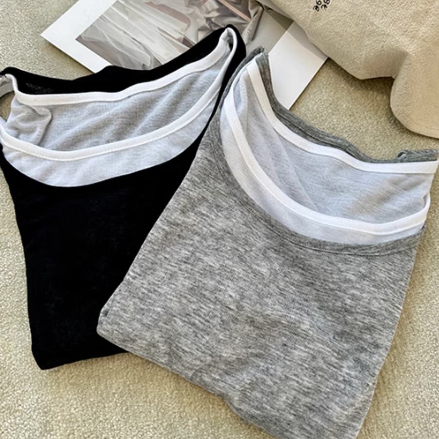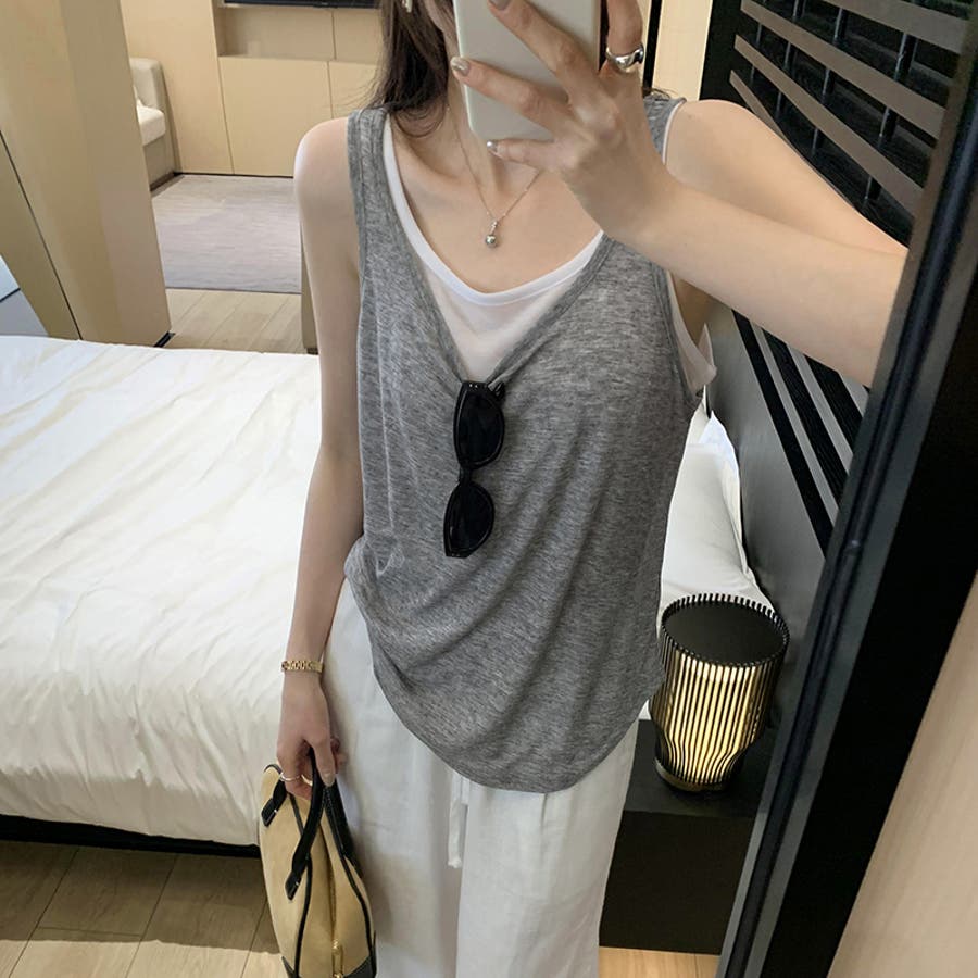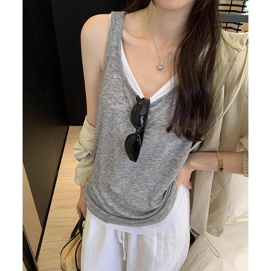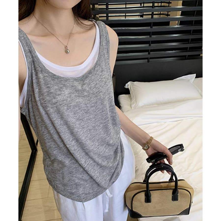タンクトップ レイヤード ノースリーブ 重ね着 カットソー レディース インナー トップス ストレッチ 無地 プルオーバー 薄手 レイヤードインナー レイヤードトップス ノースリーブトップス 重ね 着 伸縮性 二枚重ね 袖なし 袖 なし おしゃれ 薄い 涼しい 肩出し tops 洗える カジュアル 大人 かわいい 可愛い 大人可愛い きれいめ きれい め キレイ キレイめ 綺麗 オシャレ プチプラ 高見え トレンド ヒット 商品 おすすめ 服 ファッション コーデ コーディネート 母 ママ ママコーデ 女性 服 服装 s m S M サイズ Sサイズ Mサイズ グレー 灰色 ブラック 黒 カラー レディース春夏 レディース夏物 レディース夏 レディース春 春トップス 夏トップス 春物 夏物 春用 夏用 春夏 春 夏 秋 冬 春服 夏服 韓国 韓国ファッション 10代 20代 30代 40代 50代 60代 cocomomo ココモモ