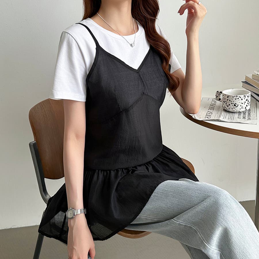 レイヤードキャミソール ペプラムキャミソール シアーキャミソール