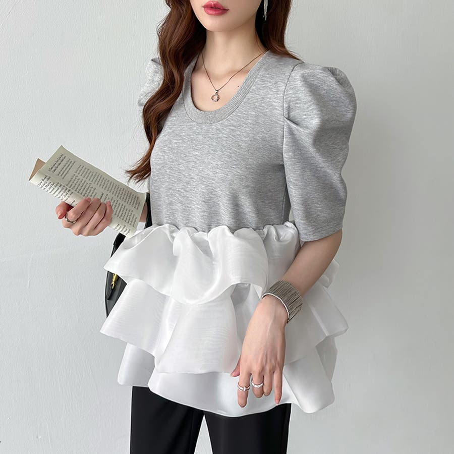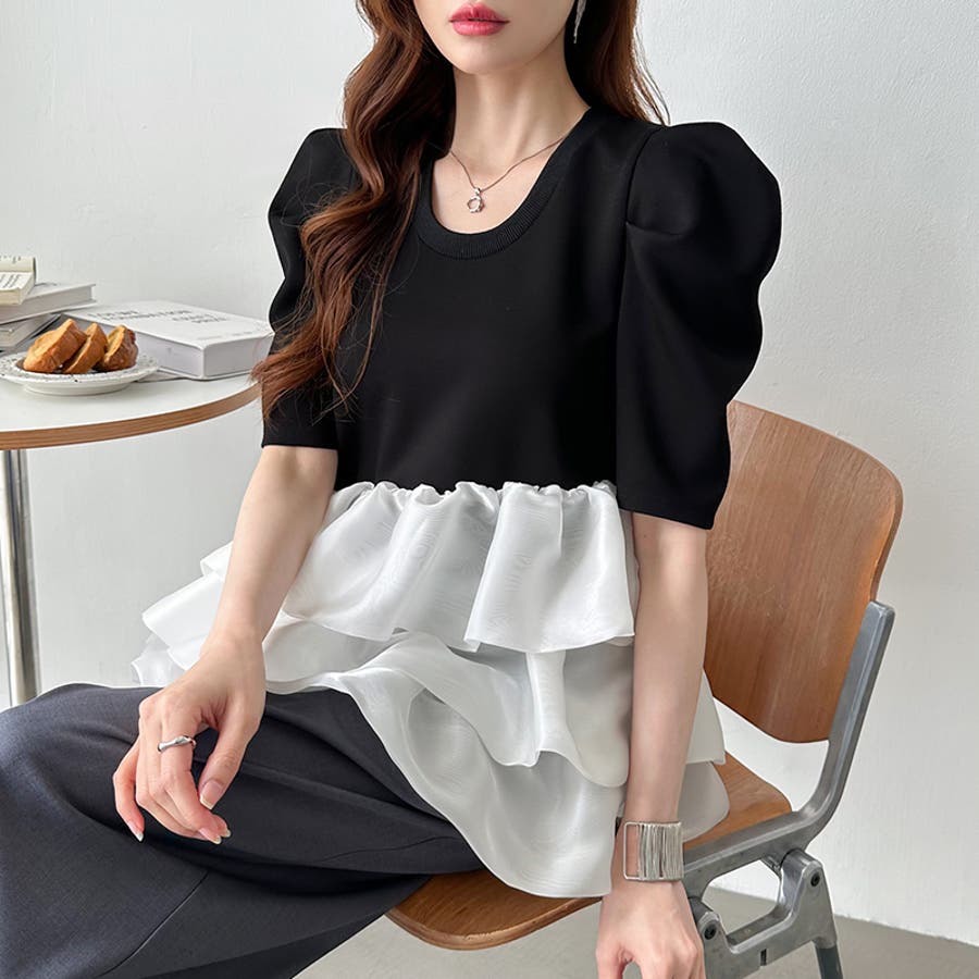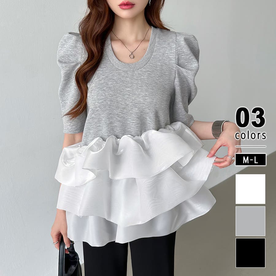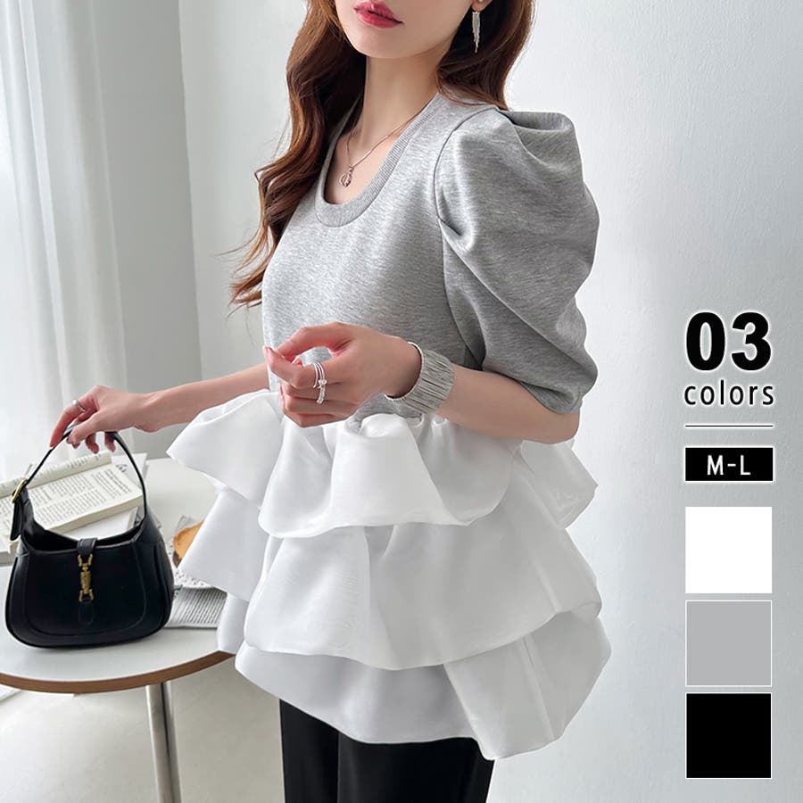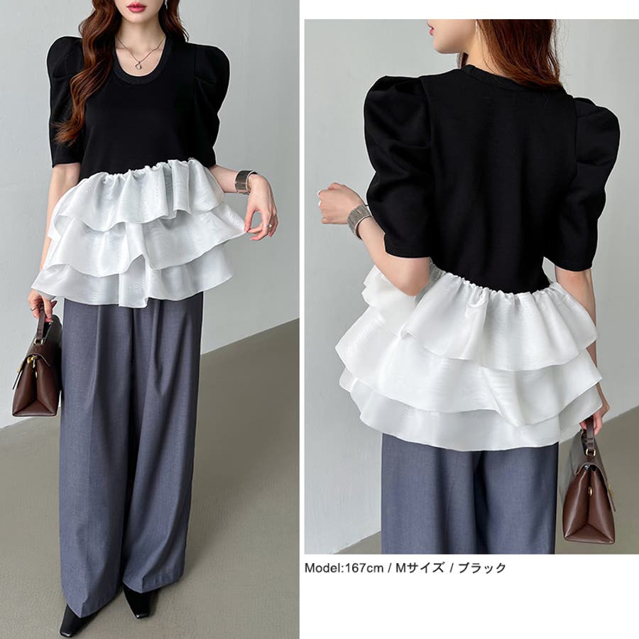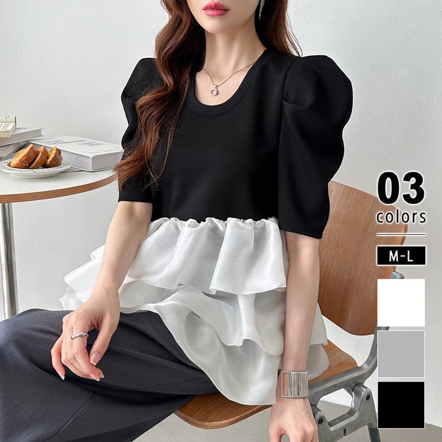 バルーンフリルトップス ティアード オーガンジー フリル トップス レディース ダンボールニット パワショル パワーショルダー カットソー 半袖 五分袖 uネック アシンメトリー アシメ ドッキング ドッキングトップス バルーン Uネック 深め アシメフリル チュニック ティアードフリル オーガンジートップス チュール チュールトップス パワショルトップス 五分袖トップス 二の腕カバー 体型カバー 体型 二の腕 カバー 隠し オケージョン パフスリーブ 半袖トップス 半袖カットソー パフショルダー おしゃれ きれいめ プルオーバー さらさら サラサラ tops 洗える 1枚で決まる 半袖トップスレディース キレカジ きれいめカジュアル 華やか 上品 カジュアル 大人 かわいい 可愛い 大人可愛い きれい め キレイ キレイめ 綺麗 オシャレ プチプラ 高見え トレンド ヒット 商品 おすすめ 服 洋服 ファッション コーデ コーディネート 母 ママ ママコーデ 女性 服 服装 m l M L サイズ Mサイズ Lサイズ ブラック ホワイト 白 グレー 灰色 ブラック 黒 カラー レディース春夏 レディース夏物 レディース夏 レディース春 春トップス 夏トップス 春物 夏物 春用 夏用 春夏 春 夏 春服 夏服 韓国 韓国ファッション 10代 20代 30代 40代 50代 60代 cocomomo ココモモ