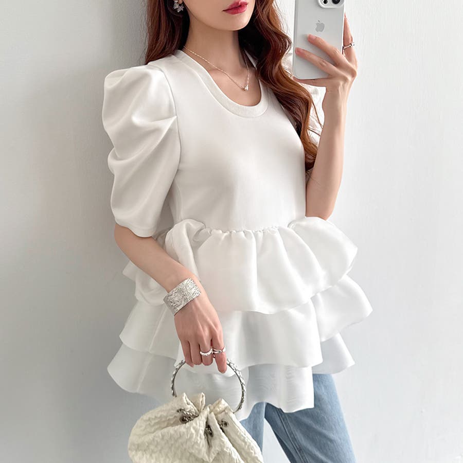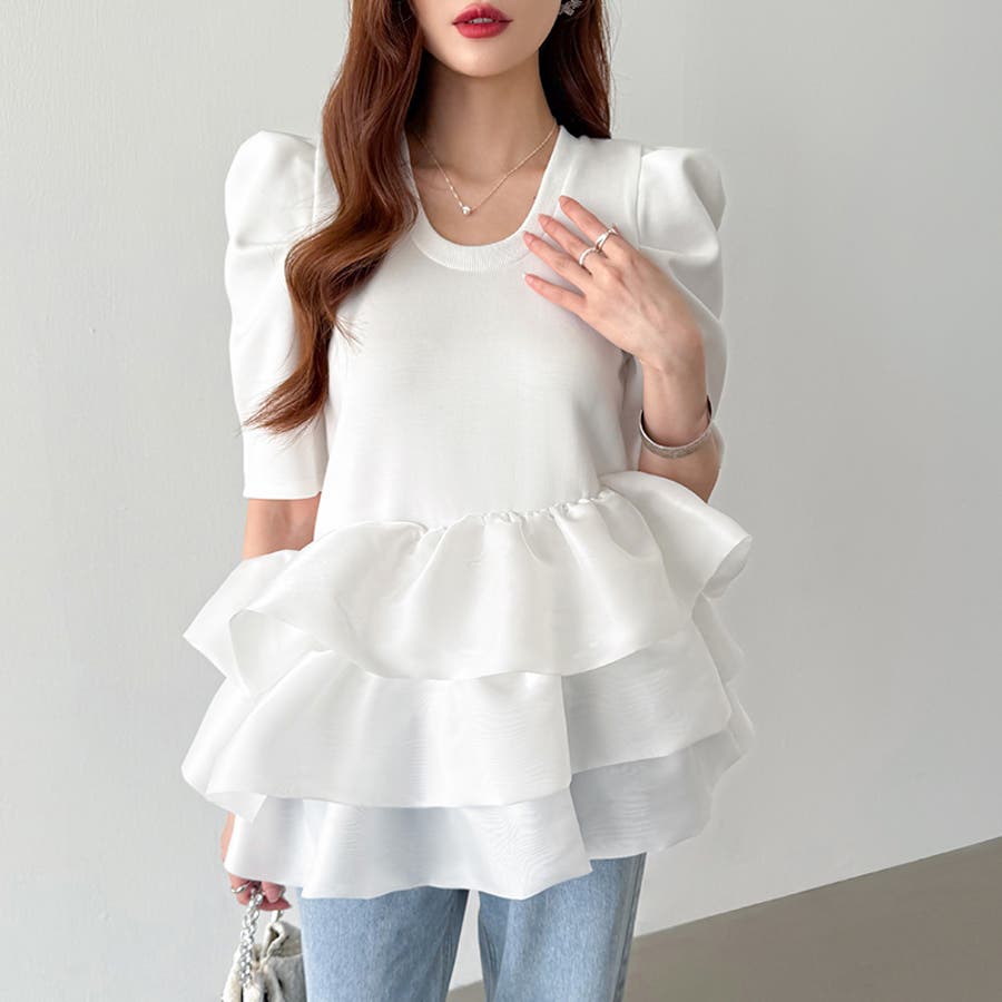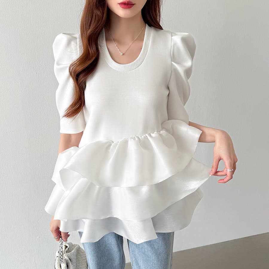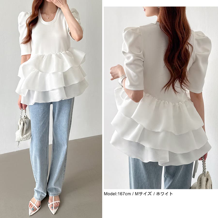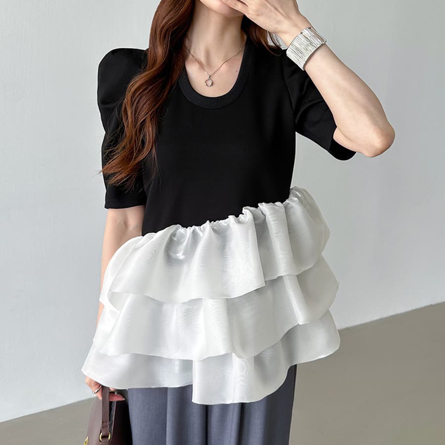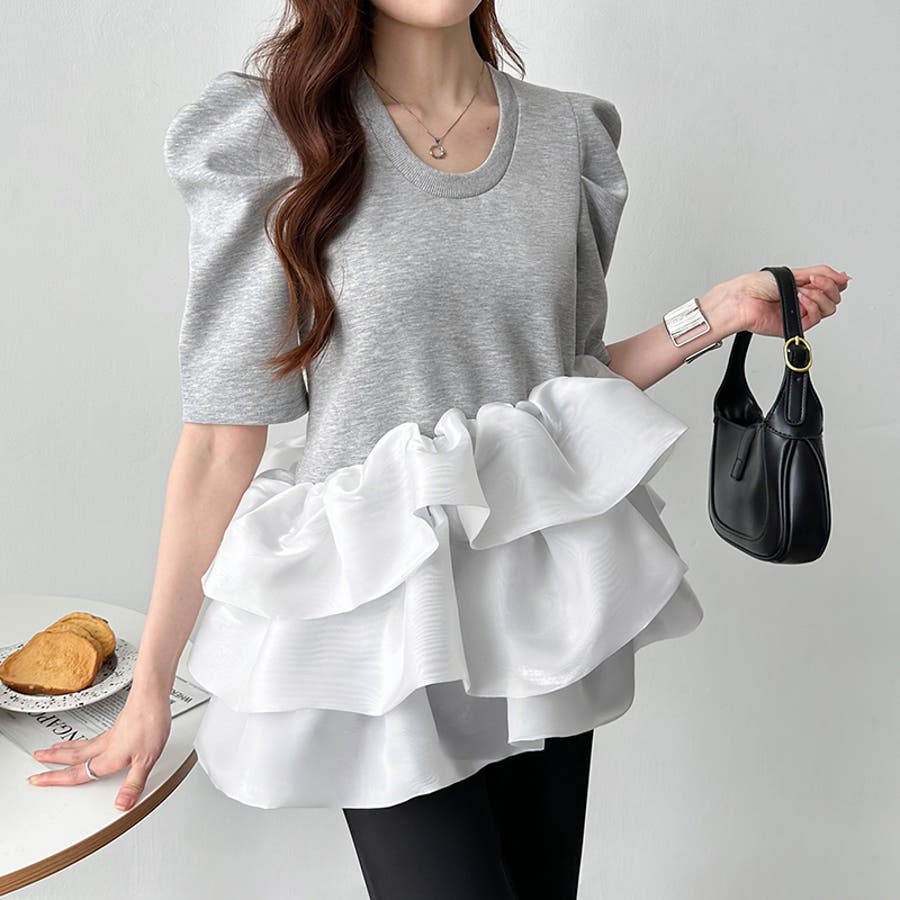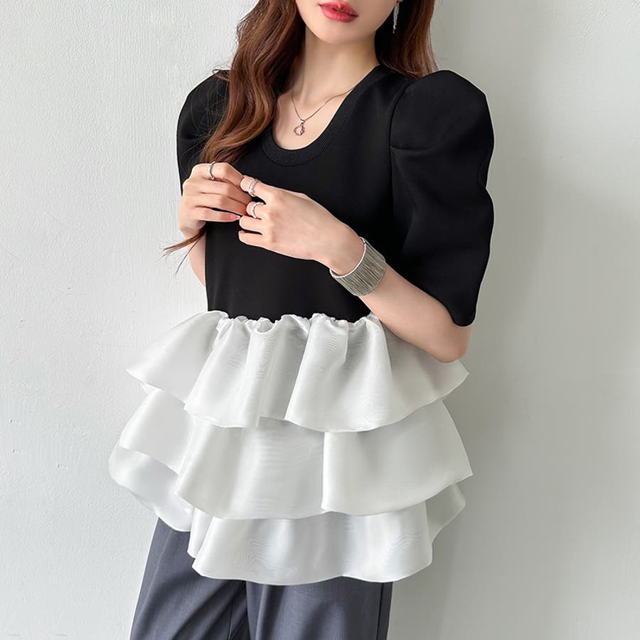バルーンフリルトップス ティアード オーガンジー フリル トップス レディース ダンボールニット パワショル パワーショルダー カットソー 半袖 五分袖 uネック アシンメトリー アシメ ドッキング ドッキングトップス バルーン Uネック 深め アシメフリル チュニック ティアードフリル オーガンジートップス チュール チュールトップス パワショルトップス 五分袖トップス 二の腕カバー 体型カバー 体型 二の腕 カバー 隠し オケージョン パフスリーブ 半袖トップス 半袖カットソー パフショルダー おしゃれ きれいめ プルオーバー さらさら サラサラ tops 洗える 1枚で決まる 半袖トップスレディース キレカジ きれいめカジュアル 華やか 上品 カジュアル 大人 かわいい 可愛い 大人可愛い きれい め キレイ キレイめ 綺麗 オシャレ プチプラ 高見え トレンド ヒット 商品 おすすめ 服 洋服 ファッション コーデ コーディネート 母 ママ ママコーデ 女性 服 服装 m l M L サイズ Mサイズ Lサイズ ブラック ホワイト 白 グレー 灰色 ブラック 黒 カラー レディース春夏 レディース夏物 レディース夏 レディース春 春トップス 夏トップス 春物 夏物 春用 夏用 春夏 春 夏 春服 夏服 韓国 韓国ファッション 10代 20代 30代 40代 50代 60代 cocomomo ココモモ