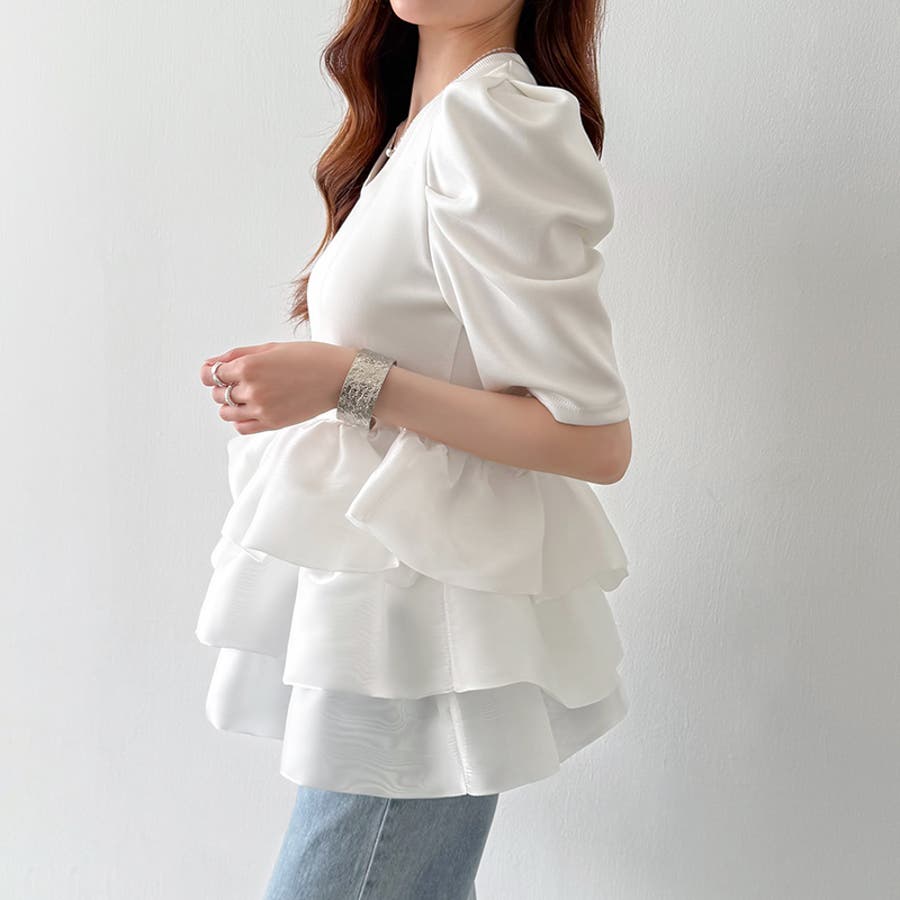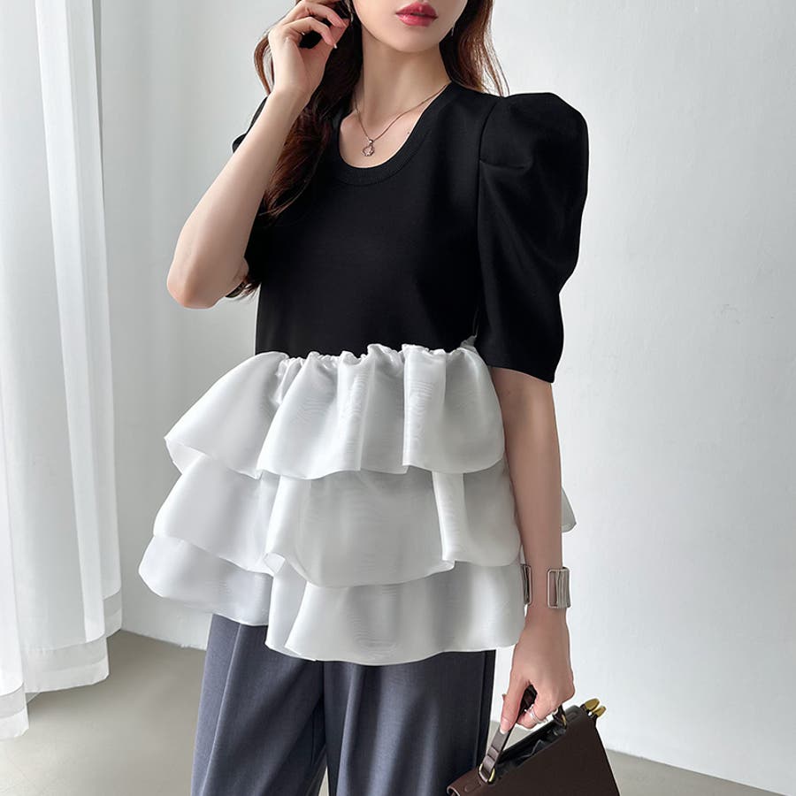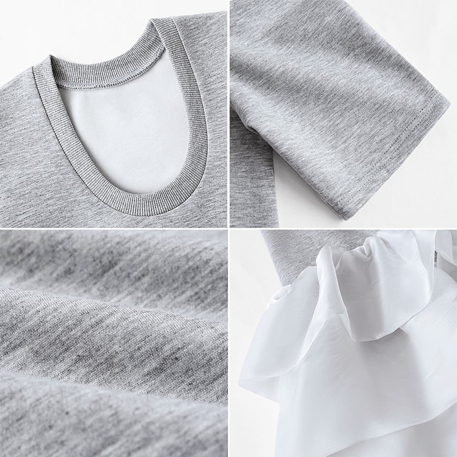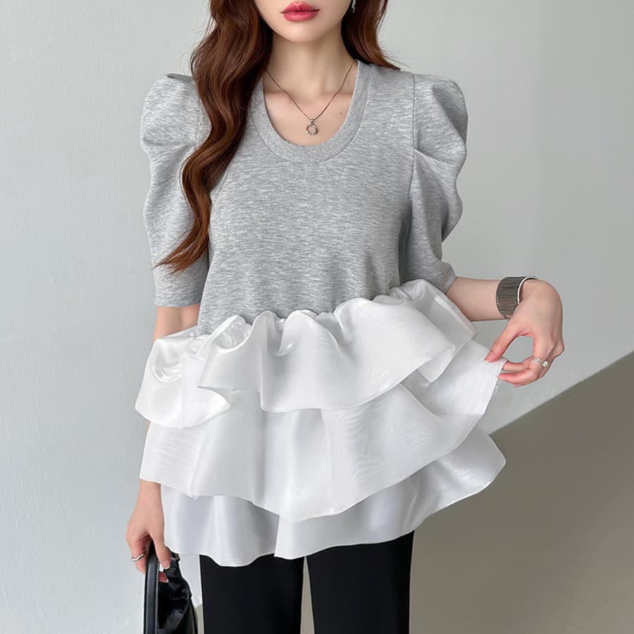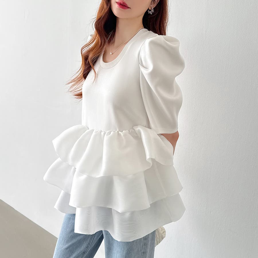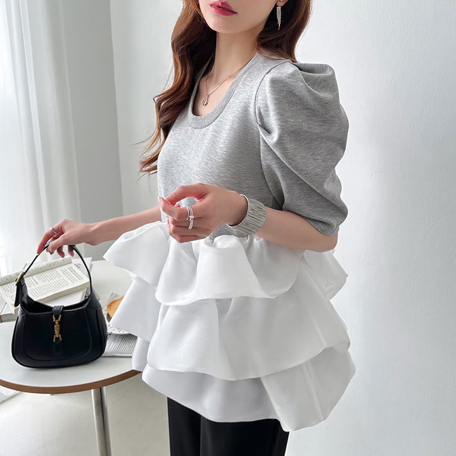 バルーンフリルトップス ティアード オーガンジー フリル トップス レディース ダンボールニット パワショル パワーショルダー カットソー 半袖 五分袖 uネック アシンメトリー アシメ ドッキング ドッキングトップス バルーン Uネック 深め アシメフリル チュニック ティアードフリル オーガンジートップス チュール チュールトップス パワショルトップス 五分袖トップス 二の腕カバー 体型カバー 体型 二の腕 カバー 隠し オケージョン パフスリーブ 半袖トップス 半袖カットソー パフショルダー おしゃれ きれいめ プルオーバー さらさら サラサラ tops 洗える 1枚で決まる 半袖トップスレディース キレカジ きれいめカジュアル 華やか 上品 カジュアル 大人 かわいい 可愛い 大人可愛い きれい め キレイ キレイめ 綺麗 オシャレ プチプラ 高見え トレンド ヒット 商品 おすすめ 服 洋服 ファッション コーデ コーディネート 母 ママ ママコーデ 女性 服 服装 m l M L サイズ Mサイズ Lサイズ ブラック ホワイト 白 グレー 灰色 ブラック 黒 カラー レディース春夏 レディース夏物 レディース夏 レディース春 春トップス 夏トップス 春物 夏物 春用 夏用 春夏 春 夏 春服 夏服 韓国 韓国ファッション 10代 20代 30代 40代 50代 60代 cocomomo ココモモ