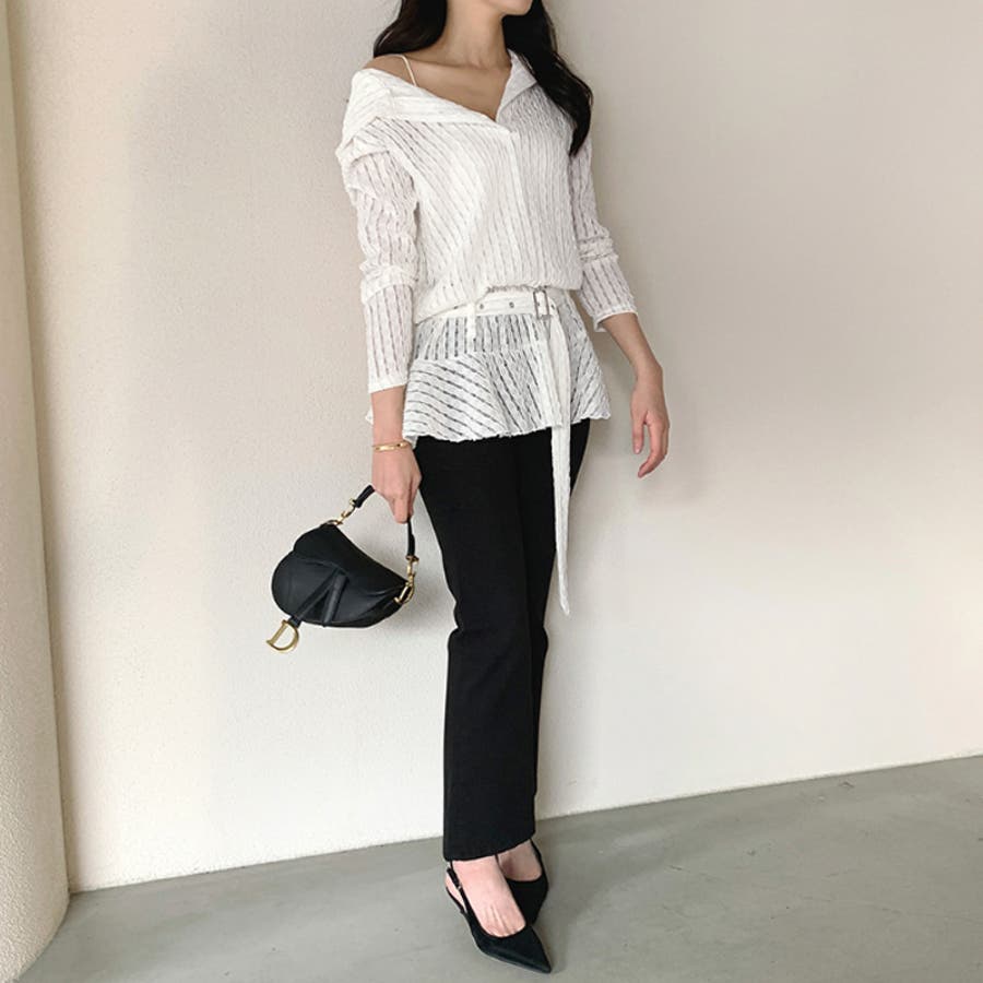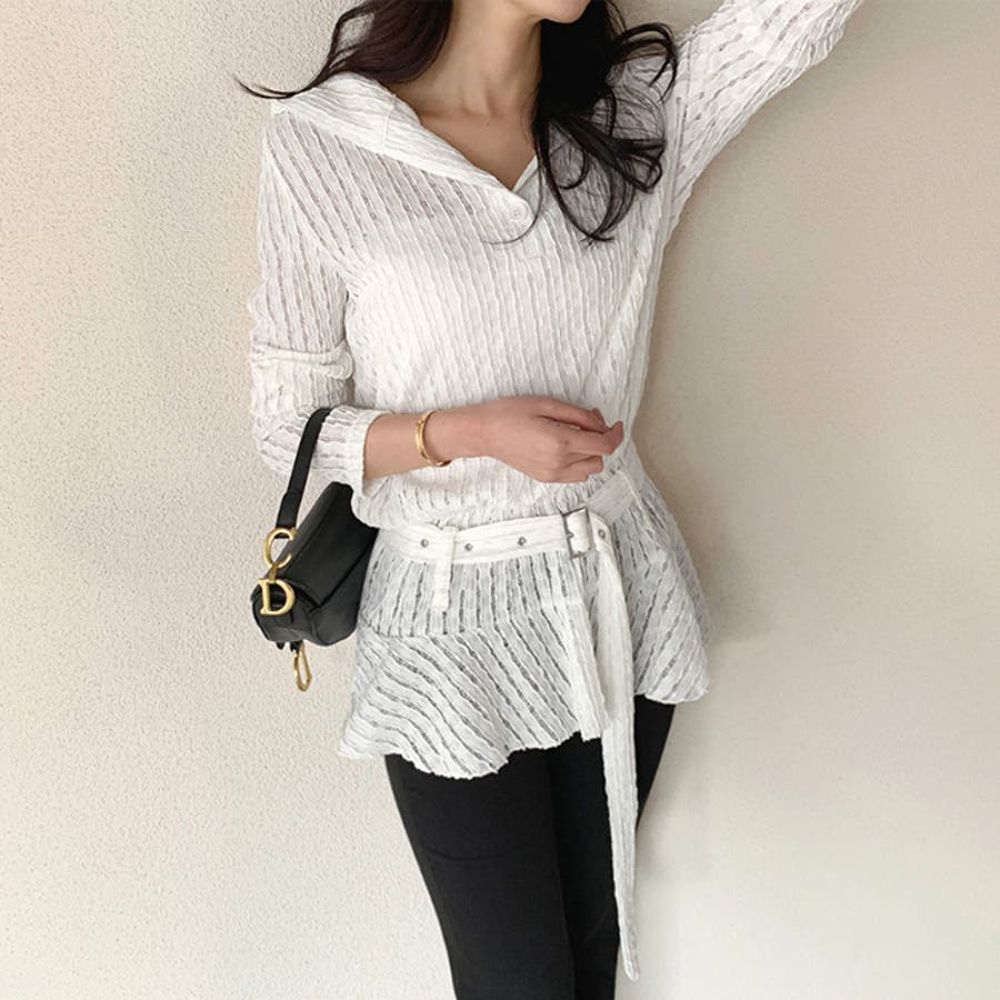 ベルト付きフードパーカー ペプラムシャツ チュニック