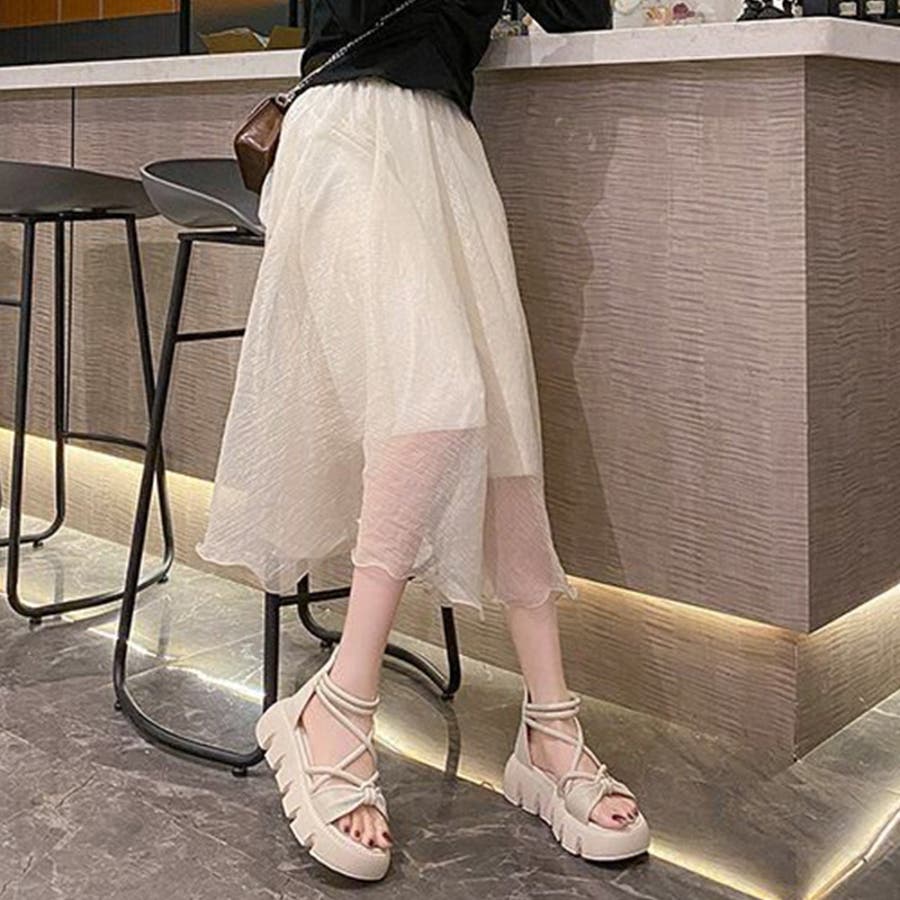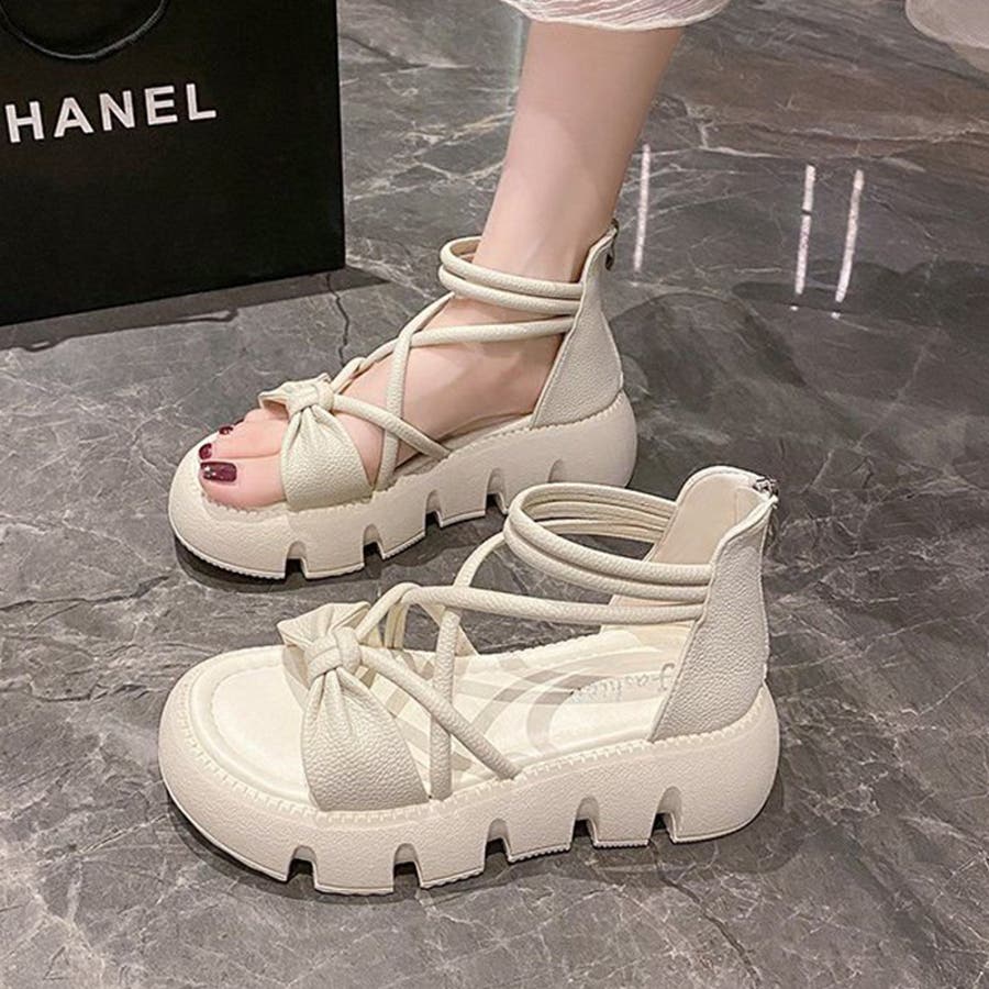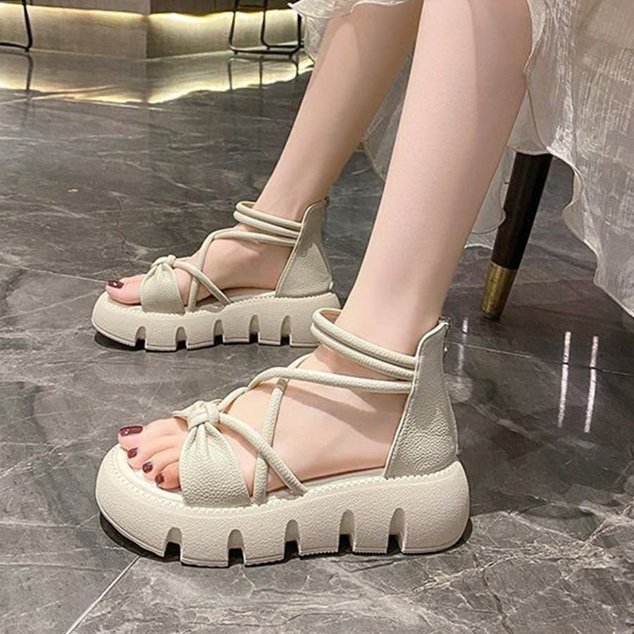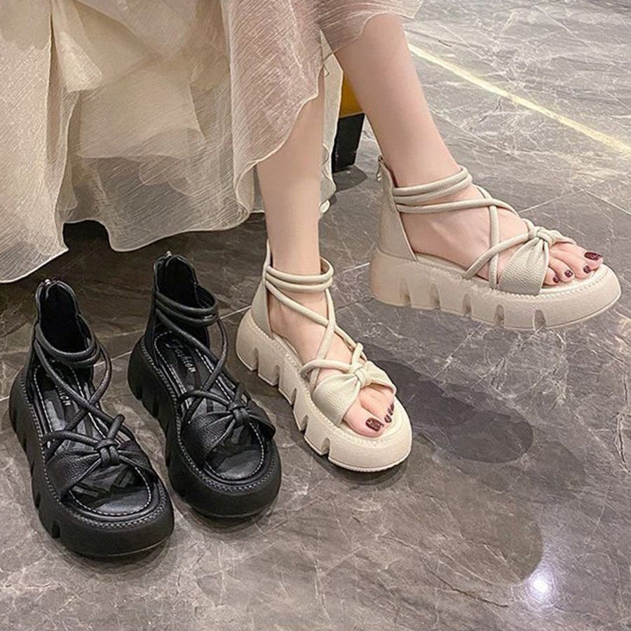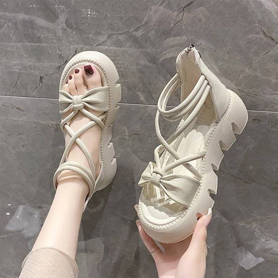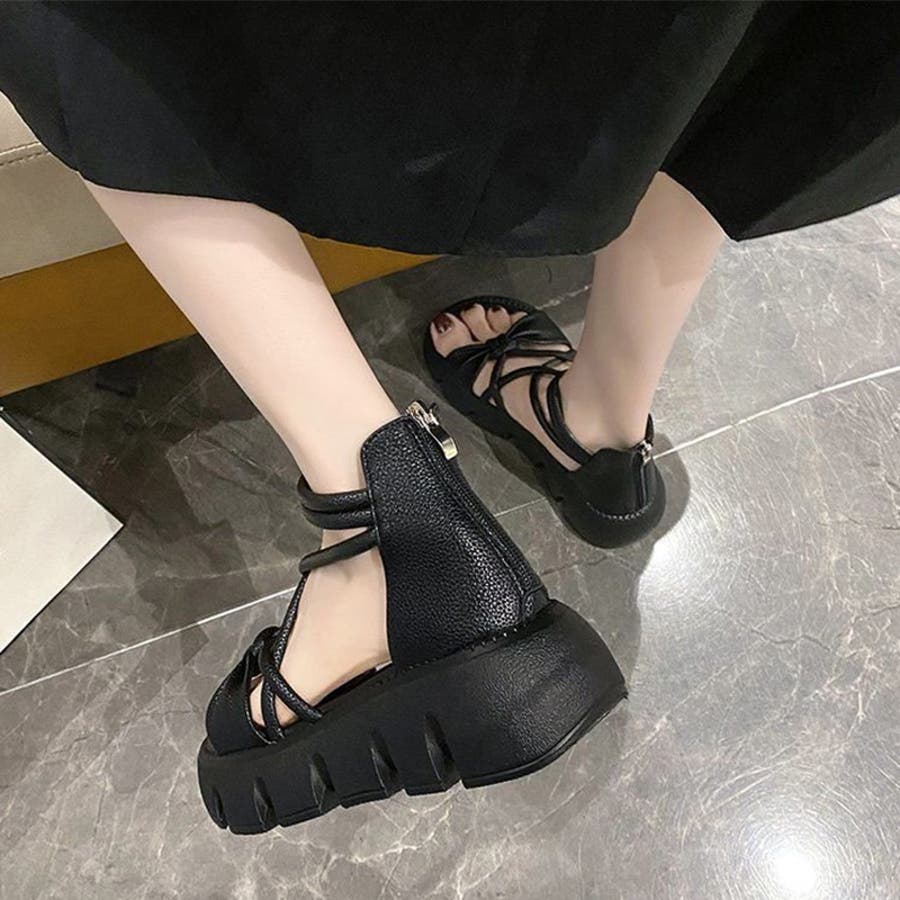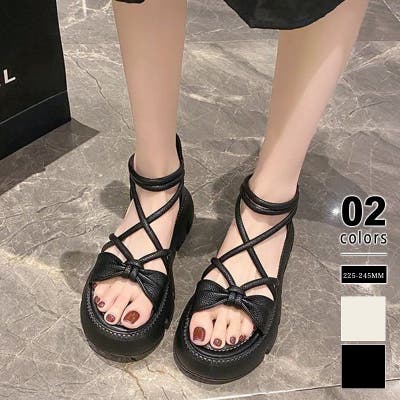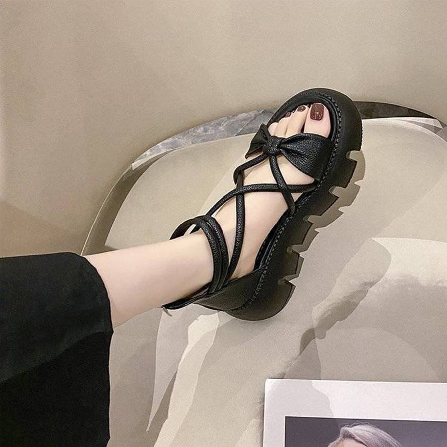 リボンクロスストラップサンダル 厚底サンダル 厚底