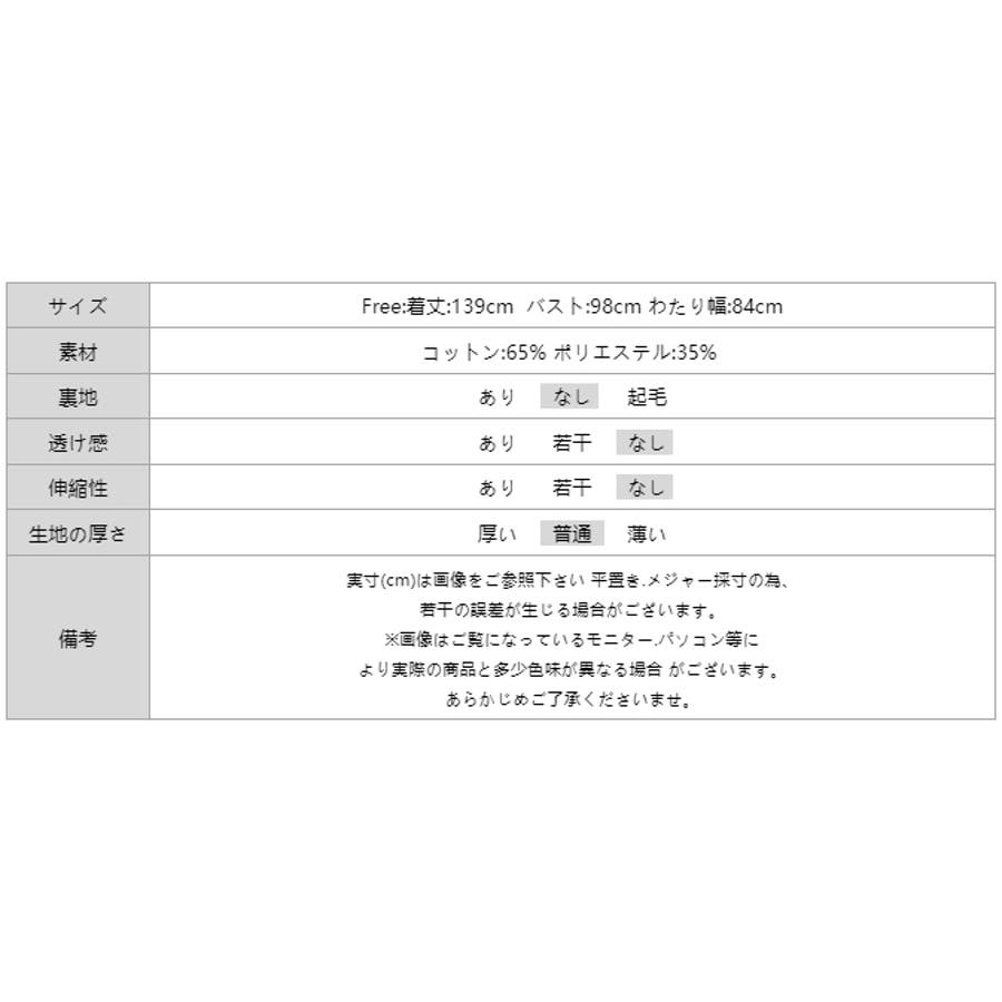 | サイズ | Free: 着丈 139cm バスト 98cm わたり幅 84cm |