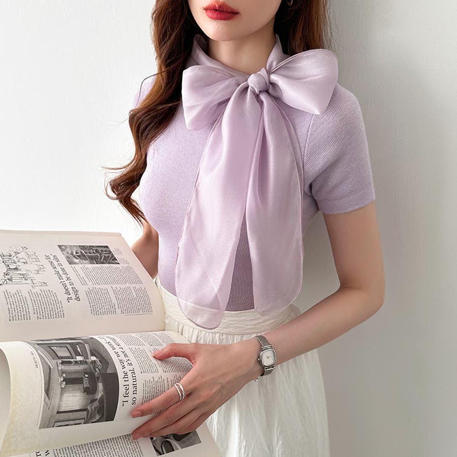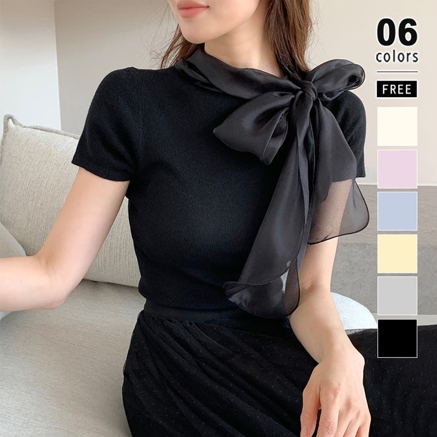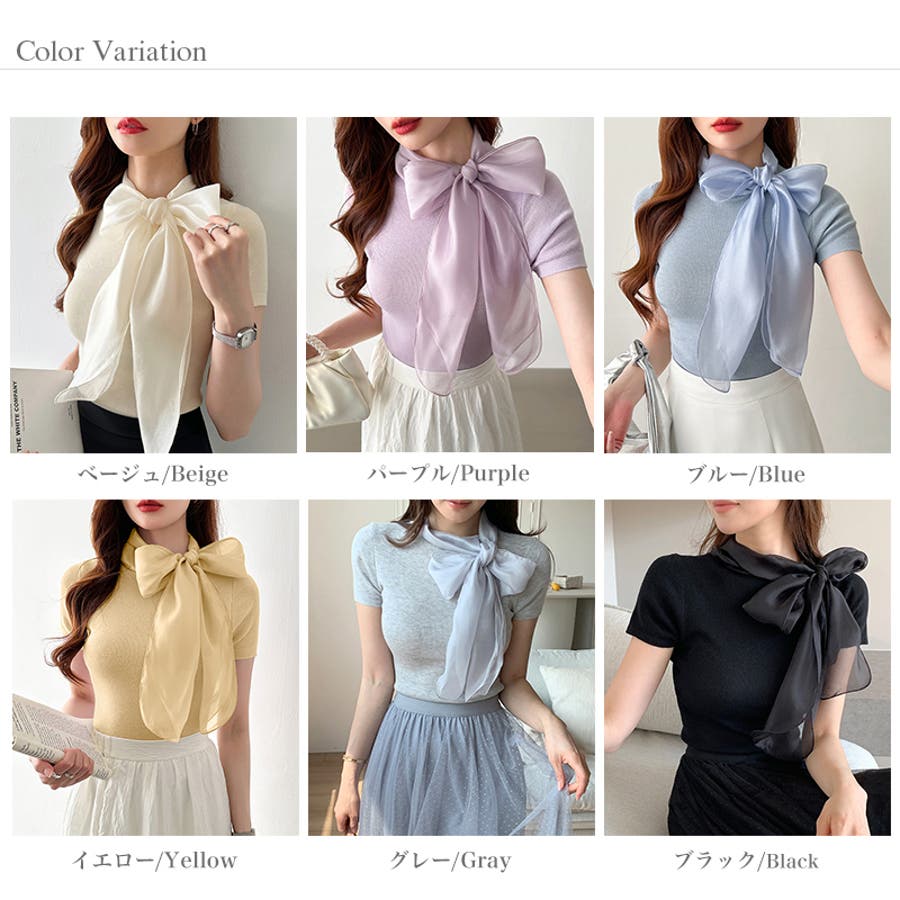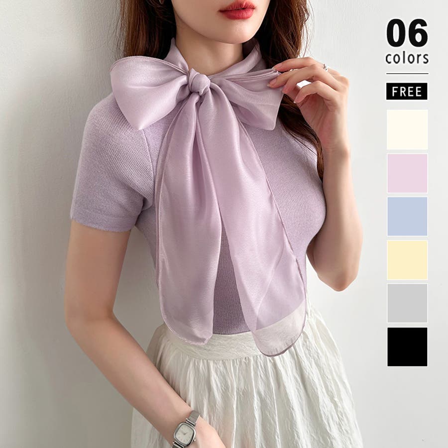 ニット リボン ボウタイ 半袖 レディース トップス シフォン スカーフ オフィス リボンタイ ビッグリボン カットソー きれいめ オフィスカジュアル 半袖ニット サマーニット ニットソー 半袖ニットレディース ボウタイリボン リボンネック りぼん ネック 首 半袖トップス 半袖トップスレディース ニットトップス 無地 きれいめニット 美人ニット 柔らか 柔らかい タイト フィット プルオーバー ニットレディース キレイめトップス tops 着回し 着まわし 伸縮性 伸びる ストレッチ 細見え にっと 1枚で決まる 洗える 手洗い 手洗い可能 洗濯 洗濯可能 洗濯可 オフィカジ オフィスカジュアル春夏 通勤 通学 仕事 会社 職場 仕事着 ol OL 会食 食事会 オケージョン 行事 学校行事 授業参観 参観日 懇談会 女子会 おでかけ お出かけ 旅行 服装 カジュアル 美人 上品 大人 オトナ かわいい 可愛い 大人可愛い 大人かわいい 大人っぽい きれい め キレイめ キレイ 綺麗 お姉さん しゃれ オシャレ 女性 母 ママ ママコーデ プチプラ 高見え トレンド コーデ コーディネート ヒット 商品 おすすめ 服 ファッション フリーサイズ フリー サイズ ベージュ パープル 紫 ブルー 青 水色 イエロー 黄色 グレー 灰色 ブラック 黒 カラー きれい色 カラーニット 春ニット 春トップス 夏ニット 夏トップス 秋トップス 秋ニット 秋トップスレディース 新作 春夏 春秋 春 夏 秋 春服 夏服 秋服 春物 夏物 秋物 春用 夏用 韓国 韓国ファッション 10代 20代 30代 40代 50代 cocomomo ココモモ