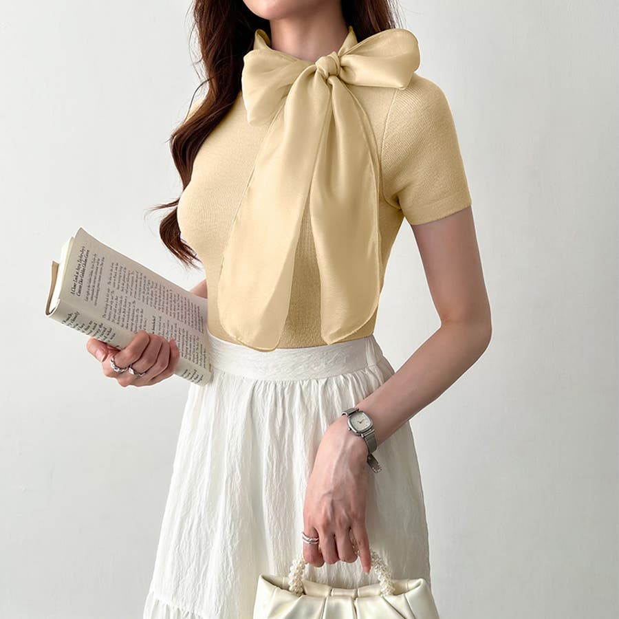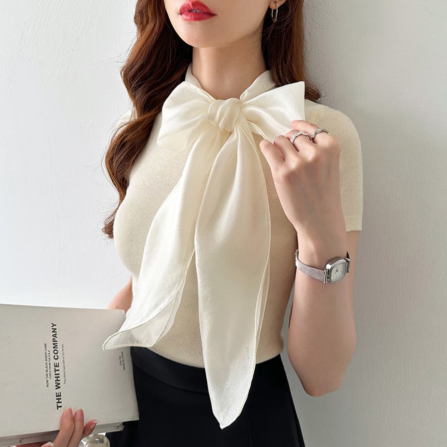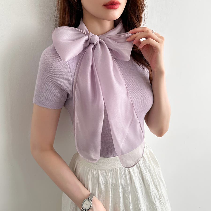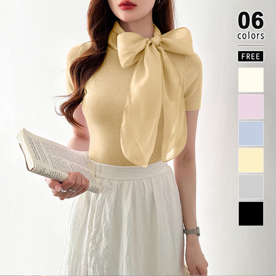 ニット リボン ボウタイ 半袖 レディース トップス シフォン スカーフ オフィス リボンタイ ビッグリボン カットソー きれいめ オフィスカジュアル 半袖ニット サマーニット ニットソー 半袖ニットレディース ボウタイリボン リボンネック りぼん ネック 首 半袖トップス 半袖トップスレディース ニットトップス 無地 きれいめニット 美人ニット 柔らか 柔らかい タイト フィット プルオーバー ニットレディース キレイめトップス tops 着回し 着まわし 伸縮性 伸びる ストレッチ 細見え にっと 1枚で決まる 洗える 手洗い 手洗い可能 洗濯 洗濯可能 洗濯可 オフィカジ オフィスカジュアル春夏 通勤 通学 仕事 会社 職場 仕事着 ol OL 会食 食事会 オケージョン 行事 学校行事 授業参観 参観日 懇談会 女子会 おでかけ お出かけ 旅行 服装 カジュアル 美人 上品 大人 オトナ かわいい 可愛い 大人可愛い 大人かわいい 大人っぽい きれい め キレイめ キレイ 綺麗 お姉さん しゃれ オシャレ 女性 母 ママ ママコーデ プチプラ 高見え トレンド コーデ コーディネート ヒット 商品 おすすめ 服 ファッション フリーサイズ フリー サイズ ベージュ パープル 紫 ブルー 青 水色 イエロー 黄色 グレー 灰色 ブラック 黒 カラー きれい色 カラーニット 春ニット 春トップス 夏ニット 夏トップス 秋トップス 秋ニット 秋トップスレディース 新作 春夏 春秋 春 夏 秋 春服 夏服 秋服 春物 夏物 秋物 春用 夏用 韓国 韓国ファッション 10代 20代 30代 40代 50代 cocomomo ココモモ