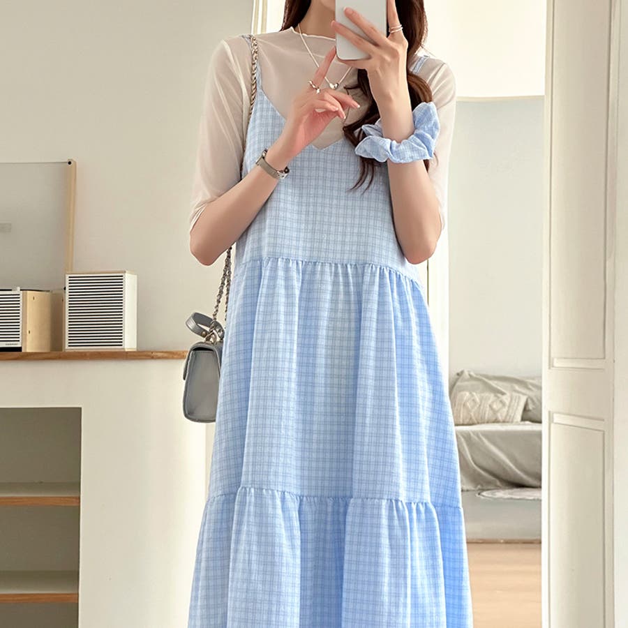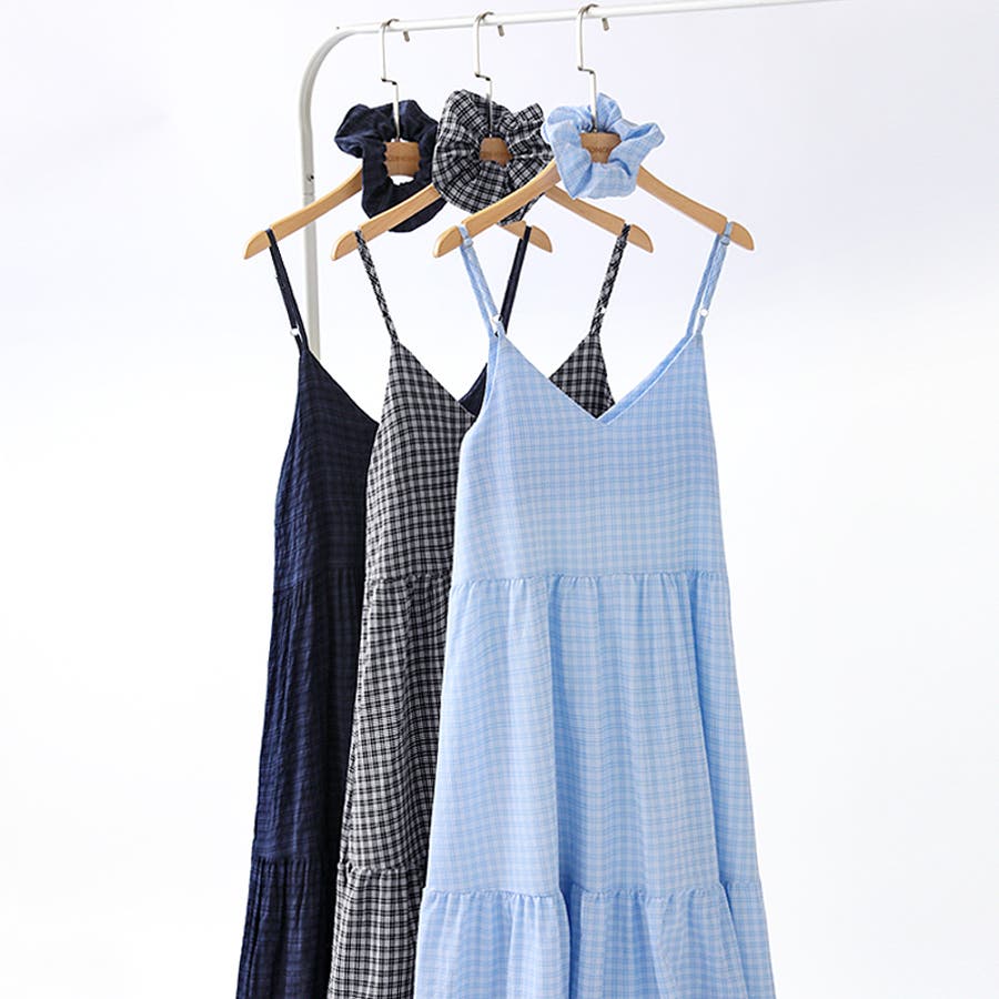 シュシュセット チェックワンピース キャミワンピース