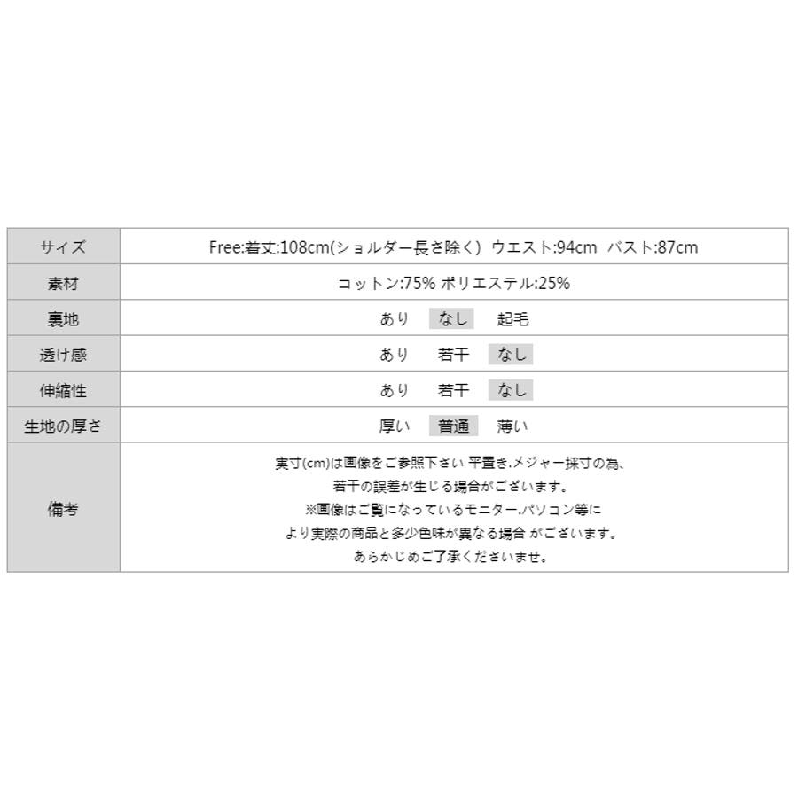 | サイズ | Free: 着丈 108cm(ショルダーの長さ除く) ウエスト 94cm バスト 87cm |