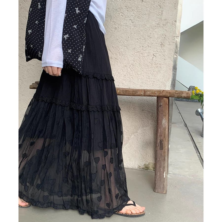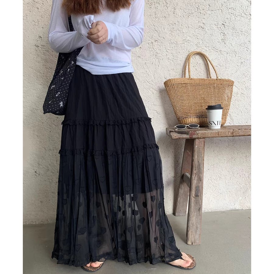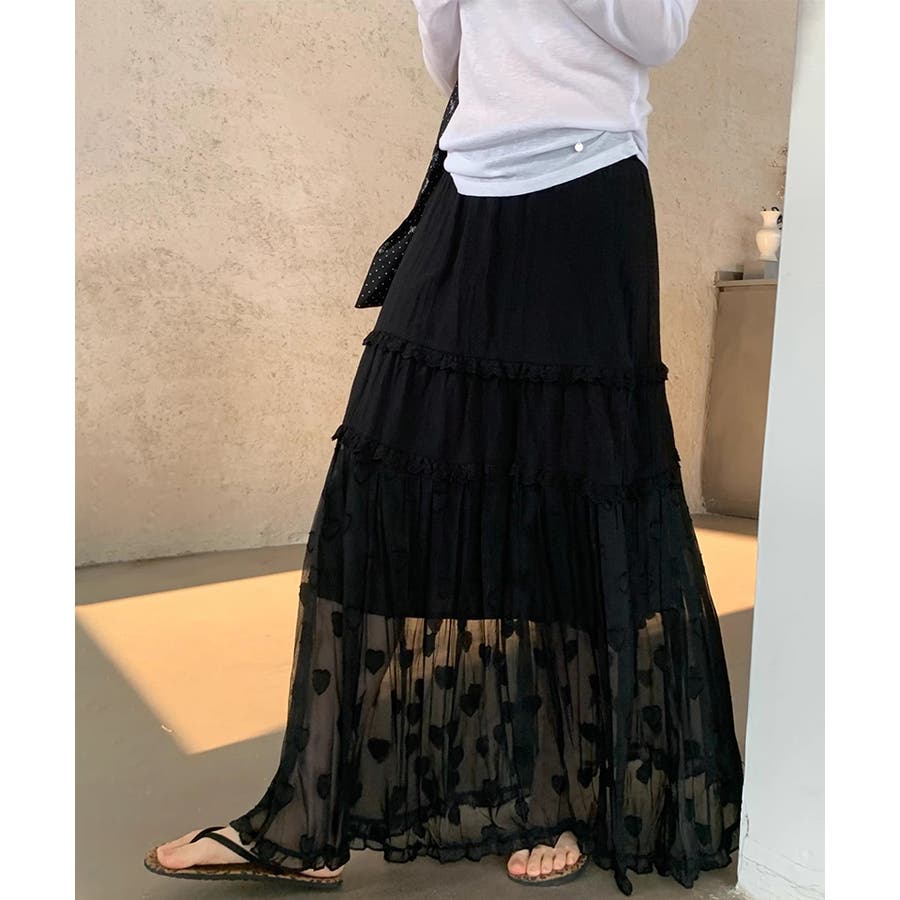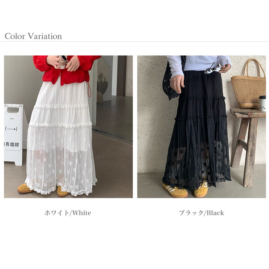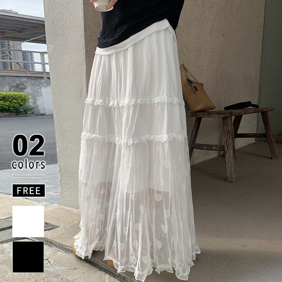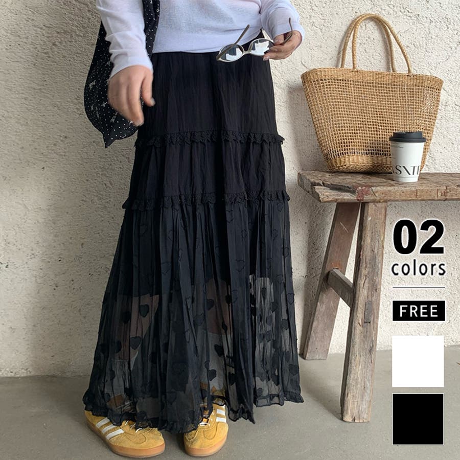ティアードスカート ハート柄 レース ロング スカート レディース ハート フリル ティアード シフォン シフォンスカート ボトムス ロングスカート マキシスカート マキシ ウエストゴム シアー シアースカート 透け感 フレア フレアスカート マキシ丈 ロング丈 マキシスカート夏 ハートスカート 裏地 レーススカート フリルスカート 柄 大きいサイズ 体型カバー 柄スカート ハイウエスト さらさら ふんわり 膝下 ひざ下 ひざ下丈 生地 膝下スカート 着回し ウエスト ゴム 着痩せ 大きい 大きいめ 楽ちん 楽 柔らかい やわらかい やわらか 通学 学生 旅行 おでかけ お出かけ 個性 個性的 個性派 韓国風 フェミニン ガーリー ラブリー キュート カジュアル 大人 かわいい 可愛い 大人可愛い おしゃれ オシャレ トレンド ヒット 商品 おすすめ 服 ファッション コーデ コーディネート プチプラ 高見え ママ ママコーデ 母 女性 フリー サイズ フリーサイズ ホワイト 白 ブラック 黒 カラー 春夏スカート スカート春夏 春スカート 夏スカート 新作 春夏 春秋 春 夏 秋 春服 夏服 秋服 春物 夏物 春用 夏用 韓国 韓国ファッション 10代 20代 30代 40代 50代 cocomomo ココモモ