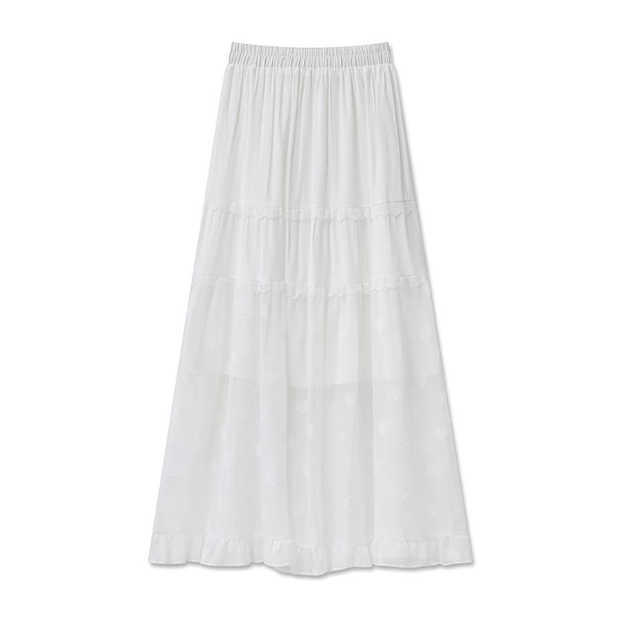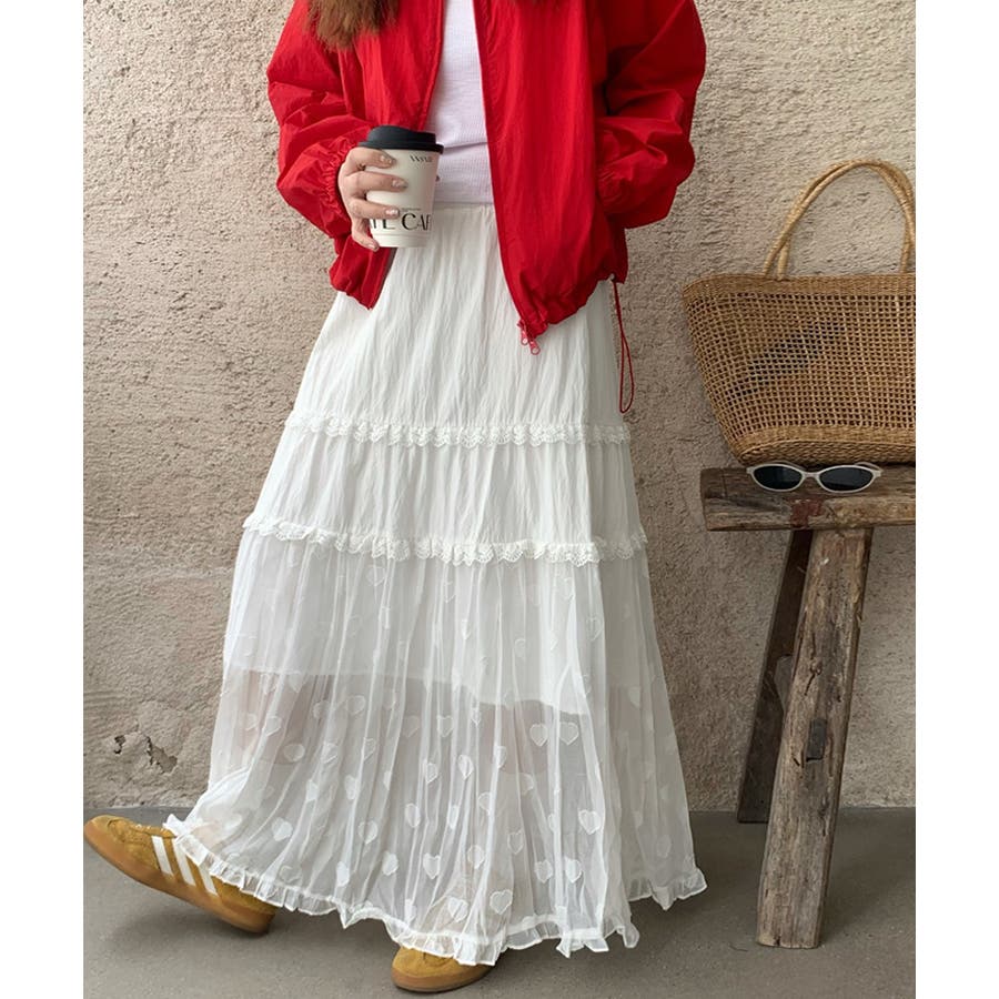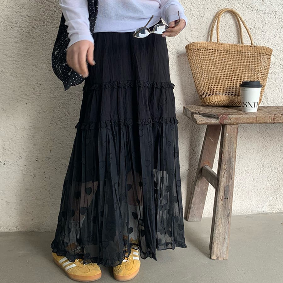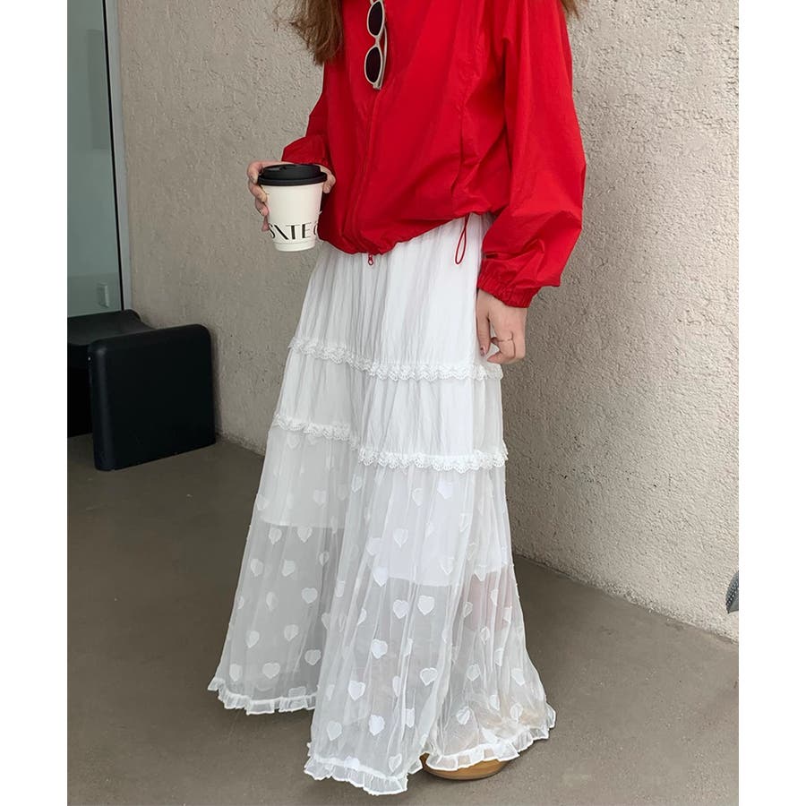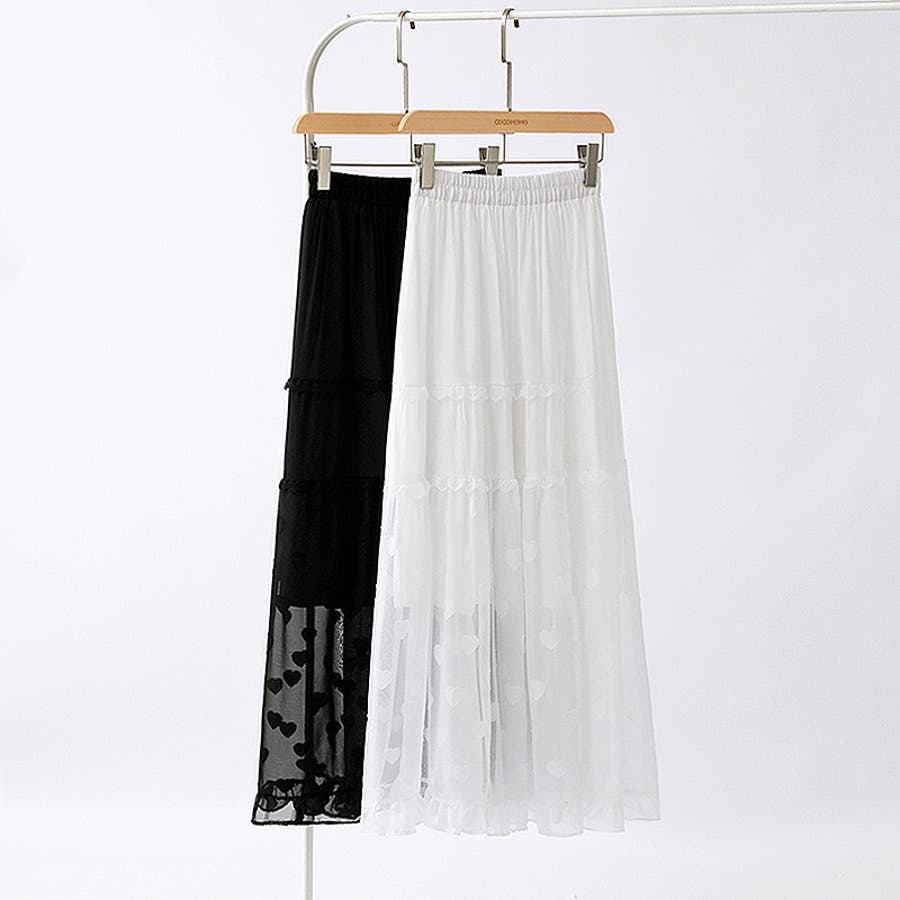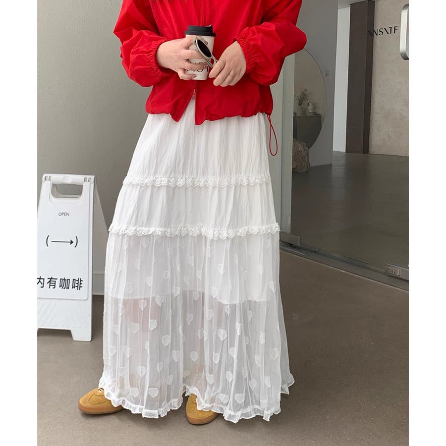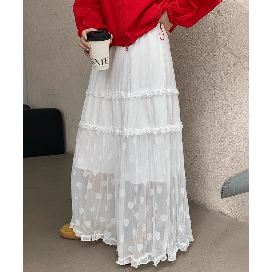 ティアードスカート ハート柄 レース ロング スカート レディース ハート フリル ティアード シフォン シフォンスカート ボトムス ロングスカート マキシスカート マキシ ウエストゴム シアー シアースカート 透け感 フレア フレアスカート マキシ丈 ロング丈 マキシスカート夏 ハートスカート 裏地 レーススカート フリルスカート 柄 大きいサイズ 体型カバー 柄スカート ハイウエスト さらさら ふんわり 膝下 ひざ下 ひざ下丈 生地 膝下スカート 着回し ウエスト ゴム 着痩せ 大きい 大きいめ 楽ちん 楽 柔らかい やわらかい やわらか 通学 学生 旅行 おでかけ お出かけ 個性 個性的 個性派 韓国風 フェミニン ガーリー ラブリー キュート カジュアル 大人 かわいい 可愛い 大人可愛い おしゃれ オシャレ トレンド ヒット 商品 おすすめ 服 ファッション コーデ コーディネート プチプラ 高見え ママ ママコーデ 母 女性 フリー サイズ フリーサイズ ホワイト 白 ブラック 黒 カラー 春夏スカート スカート春夏 春スカート 夏スカート 新作 春夏 春秋 春 夏 秋 春服 夏服 秋服 春物 夏物 春用 夏用 韓国 韓国ファッション 10代 20代 30代 40代 50代 cocomomo ココモモ