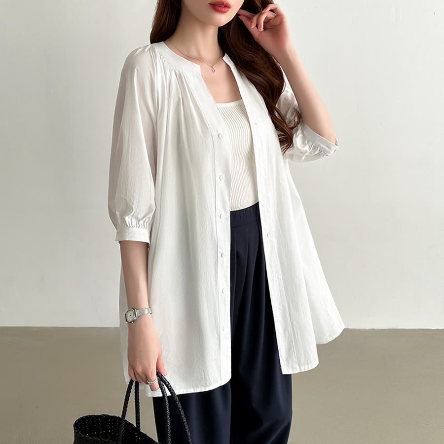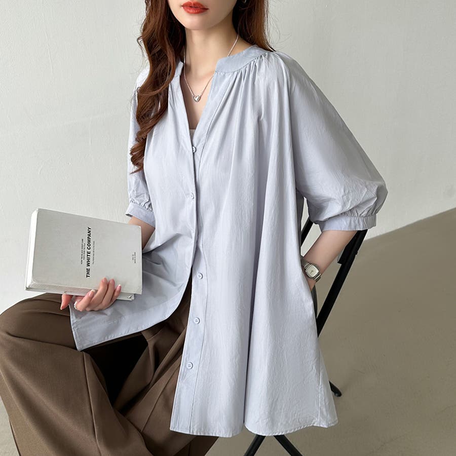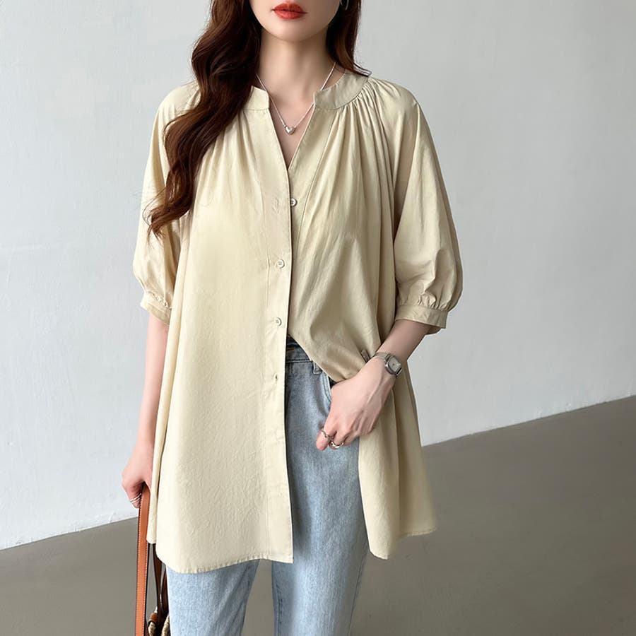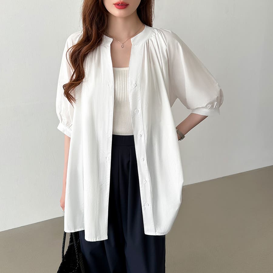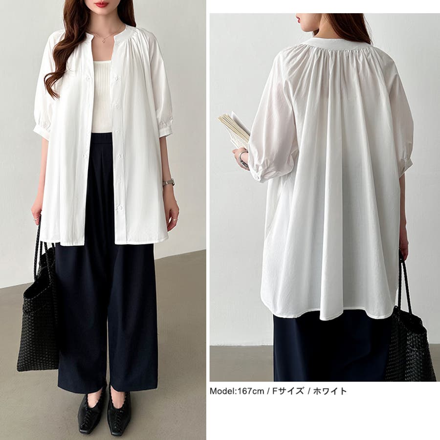 シャツ チュニック ブラウス ロングシャツ トップス レディース バンドカラー 前開き おしゃれ バンドカラーシャツ ロング シャツブラウス チュニックシャツ 大きいサイズ 体型カバー ゆったり オーバーサイズ 羽織り サマー 五分袖 パフスリーブ ロング丈 丈 大きい 大きめ お尻が隠れる フォーマル オフィス きれいめ ギャザー タック 襟元 スタンドカラー オフィスカジュアル スタンドカラーブラウス タックブラウス タック入り ノーカラー スタンド ネック ロングシャツレディース バンドカラーシャツレディース ロング丈シャツ ロング丈シャツレディース チュニックシャツレディース チュニックシャツブラウス ラグランスリーブ シャツブラウスレディース 半袖 羽織 羽織る 前ボタン 前 ボタン 襟なし 襟 袖あり ぽわん袖 ぽわん 袖 仕事 学校行事 行事 参観日 服装 事務服 通勤 通学 オフィスカジュアル春夏 オフィカジ レディース春 着回し 着まわし 綺麗 キレイめ きれい め 大人 オトナ かわいい 可愛い 大人可愛い オトナ女子 おしゃれ オシャレ 女性 母 母親 女 ママ ママコーデ プチプラ 高見え 高級感 トレンド ヒット 商品 おすすめ 服 ファッション コーデ コーディネート 洋服 フリー サイズ フリーサイズ ホワイト 白 ベージュ ライトブルー 青 水色 ブラック 黒 カラー 白ブラウス 黒ブラウス 青シャツ 水色シャツ 綺麗目めブラウス レディース白 新作 春夏 春 夏 秋 春服 夏服 秋服 春物 夏物 春用 夏用 韓国 韓国ファッション 10代 20代 30代 40代 50代 60代 cocomomo ココモモ