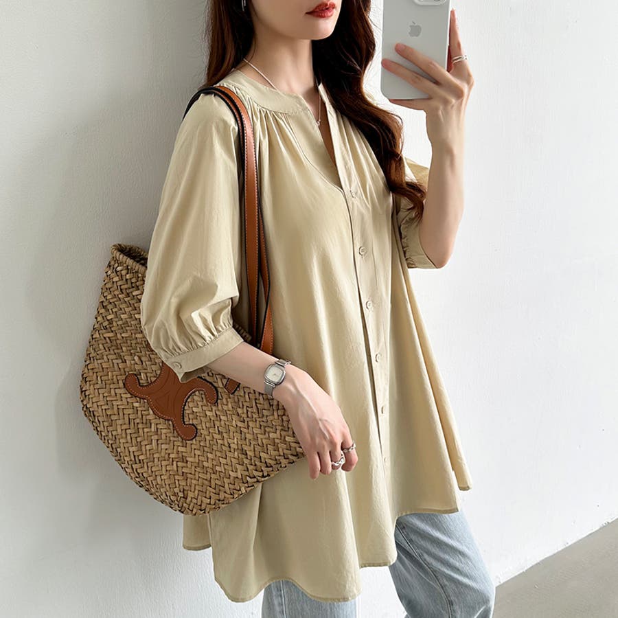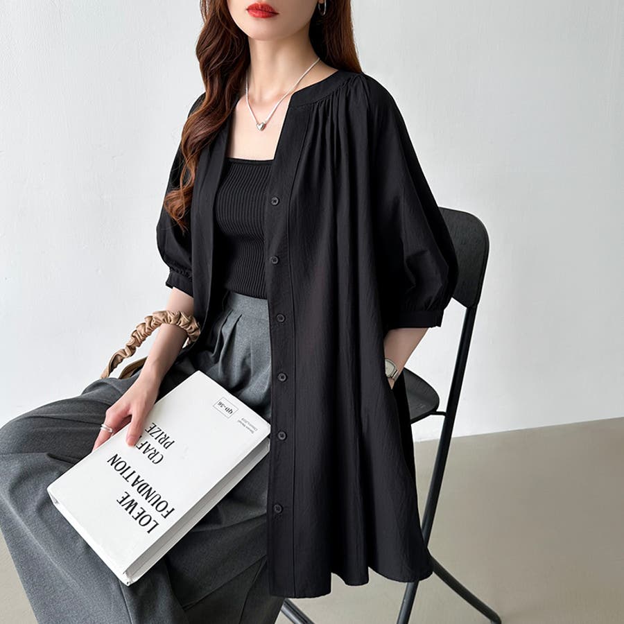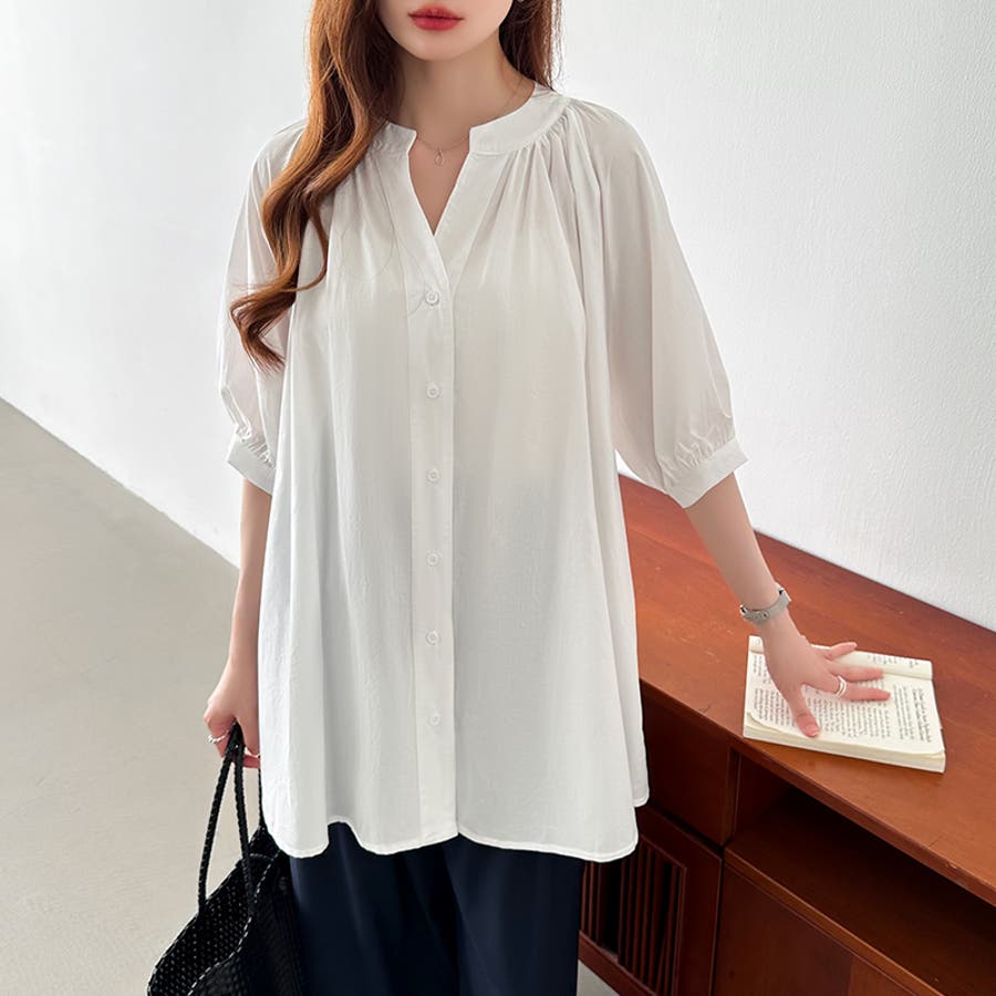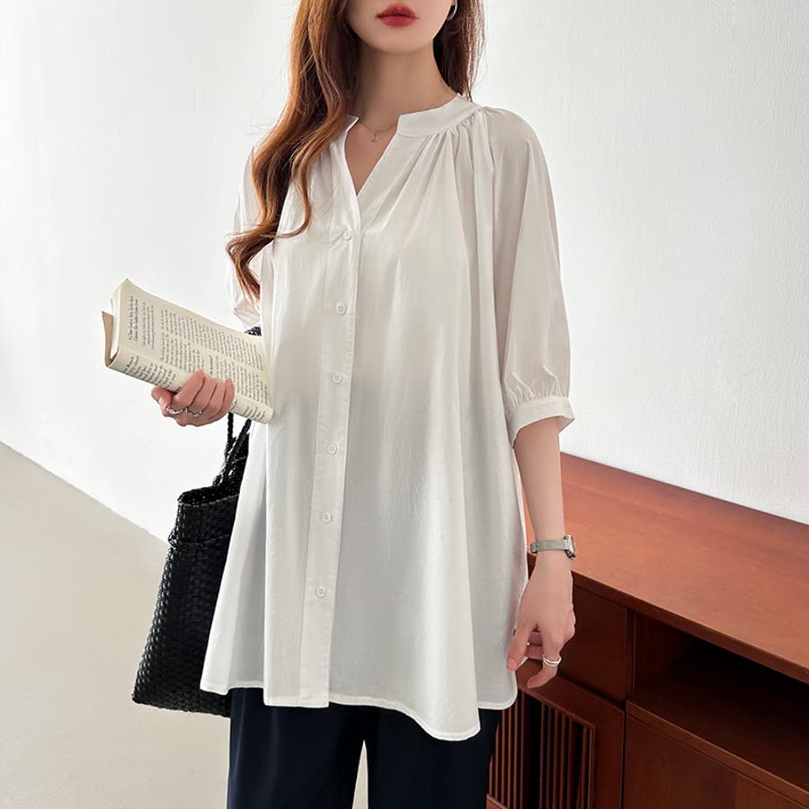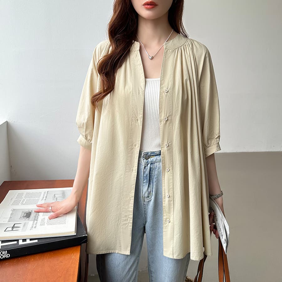 シャツ チュニック ブラウス ロングシャツ トップス レディース バンドカラー 前開き おしゃれ バンドカラーシャツ ロング シャツブラウス チュニックシャツ 大きいサイズ 体型カバー ゆったり オーバーサイズ 羽織り サマー 五分袖 パフスリーブ ロング丈 丈 大きい 大きめ お尻が隠れる フォーマル オフィス きれいめ ギャザー タック 襟元 スタンドカラー オフィスカジュアル スタンドカラーブラウス タックブラウス タック入り ノーカラー スタンド ネック ロングシャツレディース バンドカラーシャツレディース ロング丈シャツ ロング丈シャツレディース チュニックシャツレディース チュニックシャツブラウス ラグランスリーブ シャツブラウスレディース 半袖 羽織 羽織る 前ボタン 前 ボタン 襟なし 襟 袖あり ぽわん袖 ぽわん 袖 仕事 学校行事 行事 参観日 服装 事務服 通勤 通学 オフィスカジュアル春夏 オフィカジ レディース春 着回し 着まわし 綺麗 キレイめ きれい め 大人 オトナ かわいい 可愛い 大人可愛い オトナ女子 おしゃれ オシャレ 女性 母 母親 女 ママ ママコーデ プチプラ 高見え 高級感 トレンド ヒット 商品 おすすめ 服 ファッション コーデ コーディネート 洋服 フリー サイズ フリーサイズ ホワイト 白 ベージュ ライトブルー 青 水色 ブラック 黒 カラー 白ブラウス 黒ブラウス 青シャツ 水色シャツ 綺麗目めブラウス レディース白 新作 春夏 春 夏 秋 春服 夏服 秋服 春物 夏物 春用 夏用 韓国 韓国ファッション 10代 20代 30代 40代 50代 60代 cocomomo ココモモ