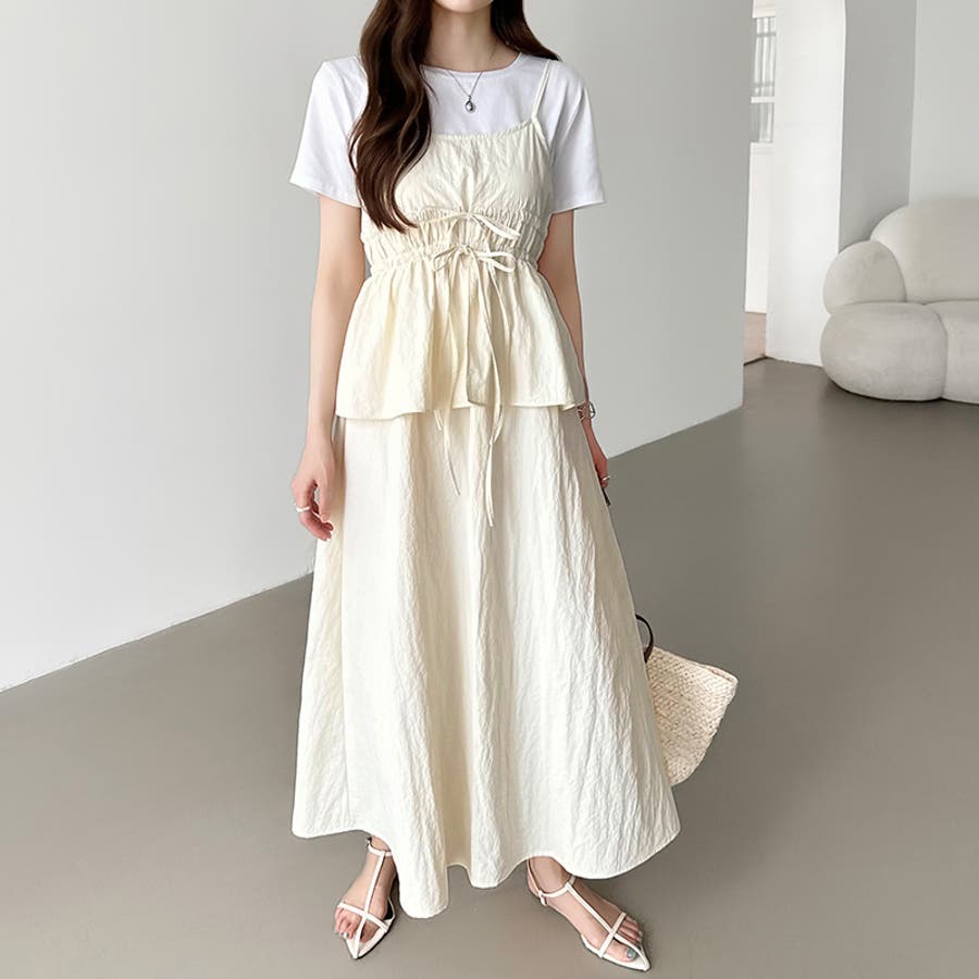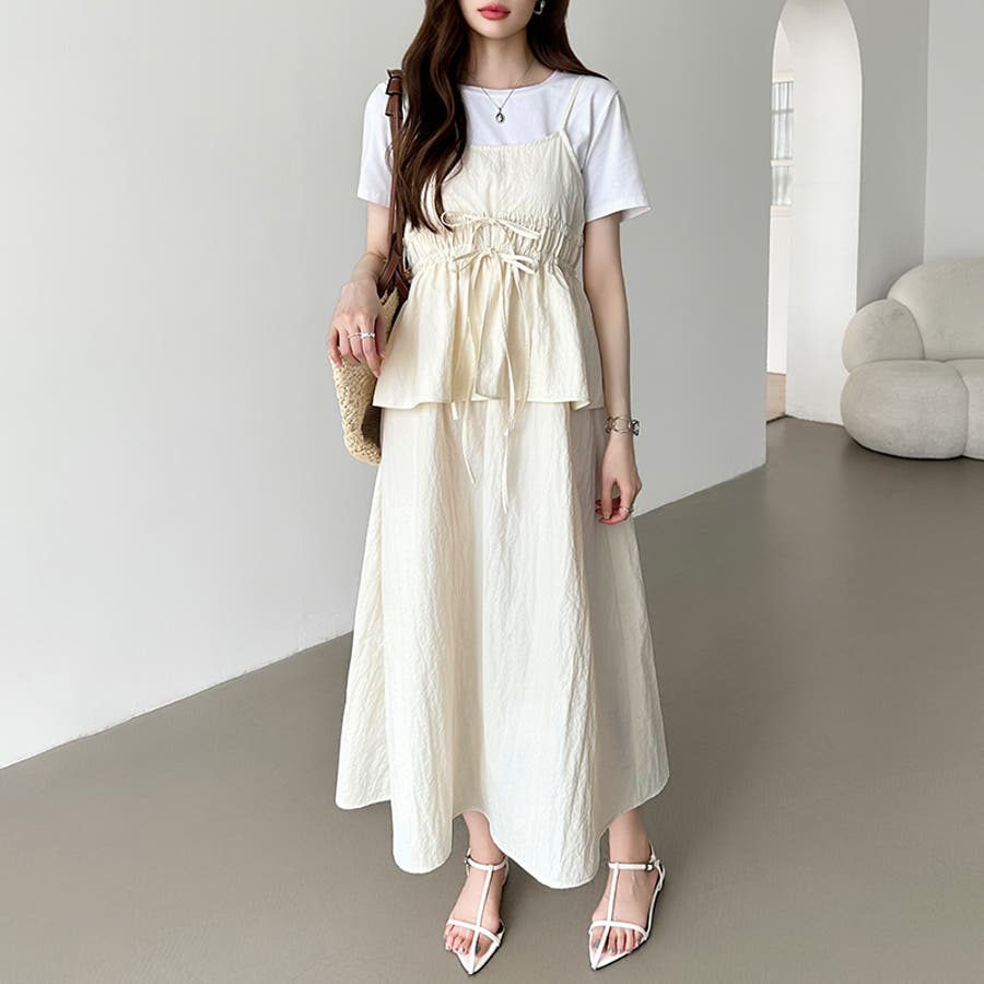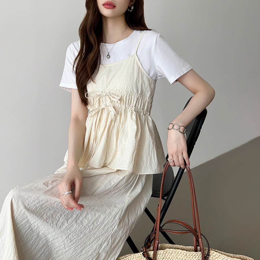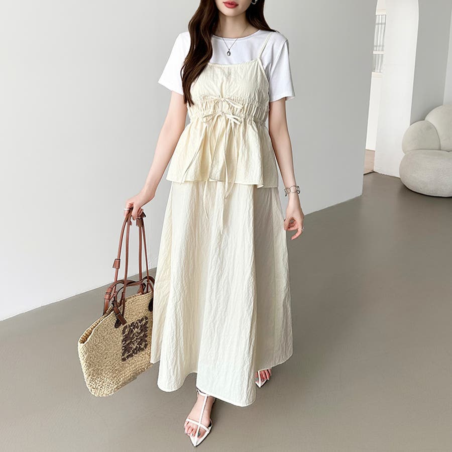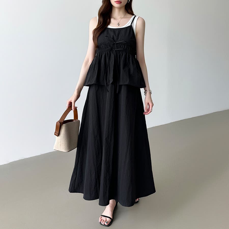 ペプラムキャミワンピース セットアップ風 夏ワンピース