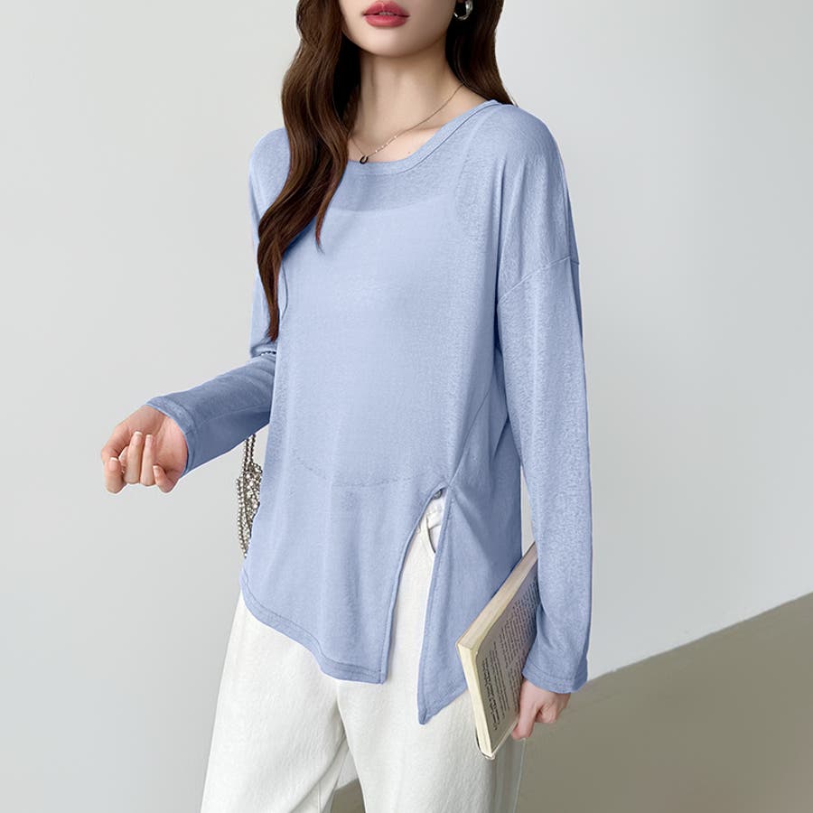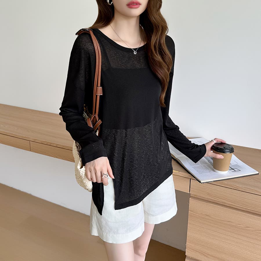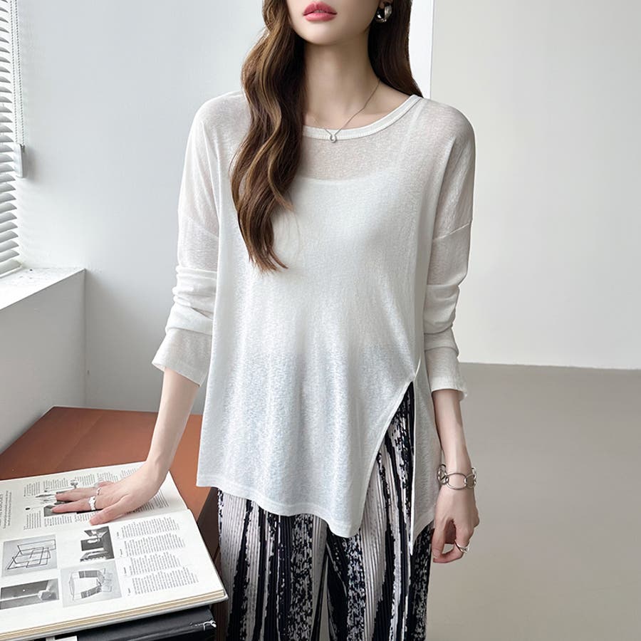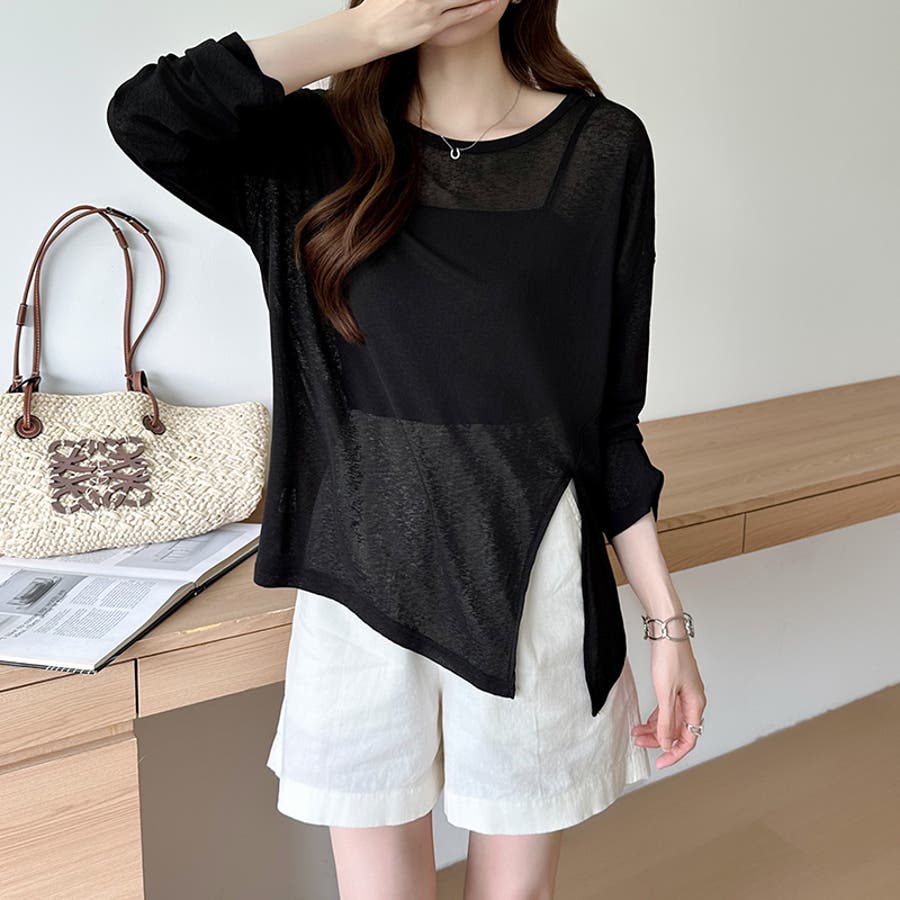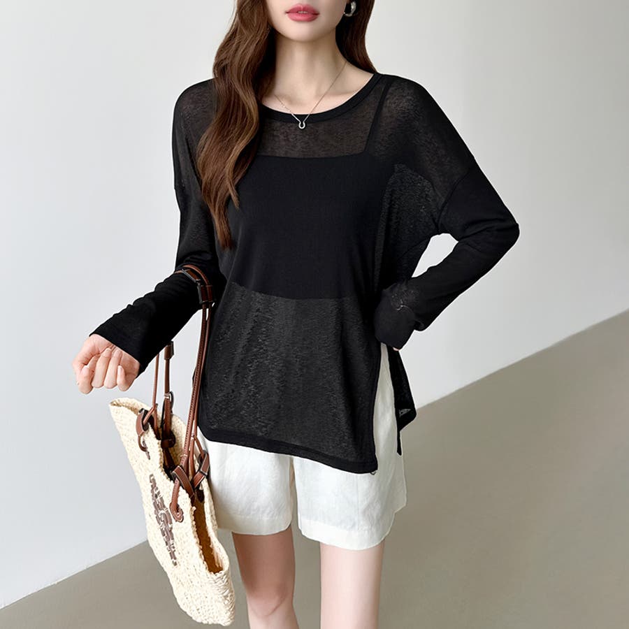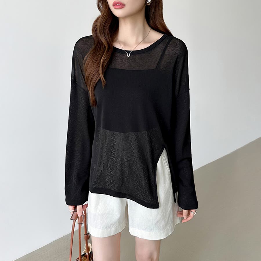 サイドスリットスラブシアーロンT シアートップス シアーカットソー
