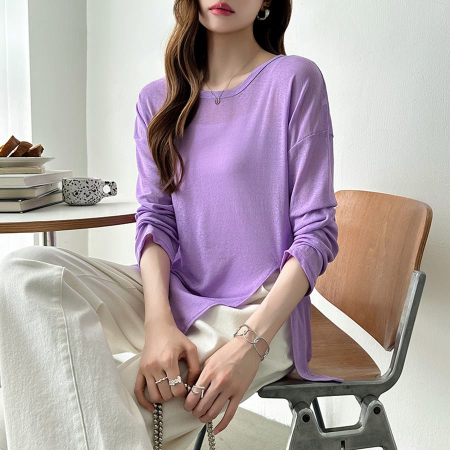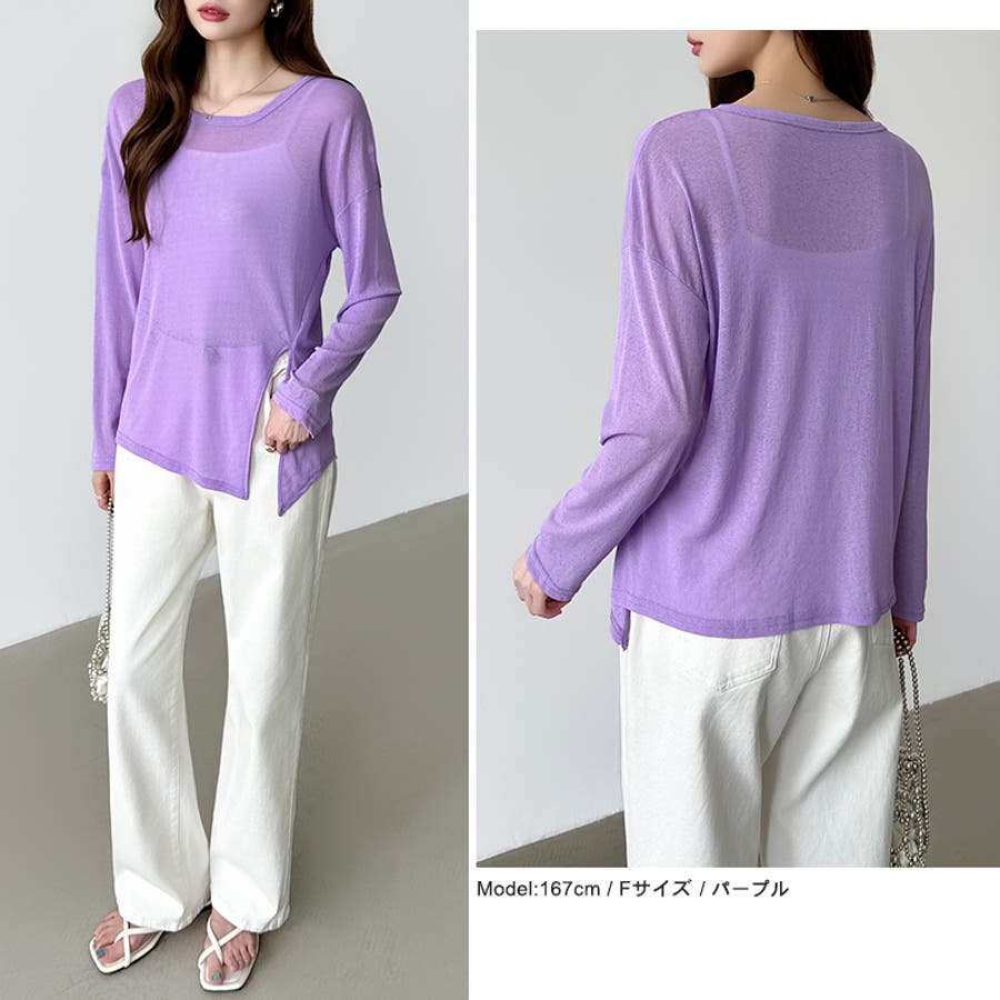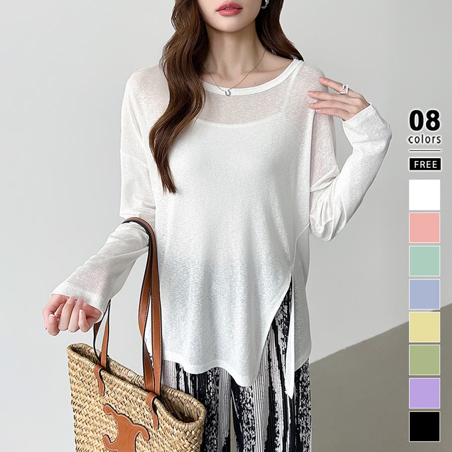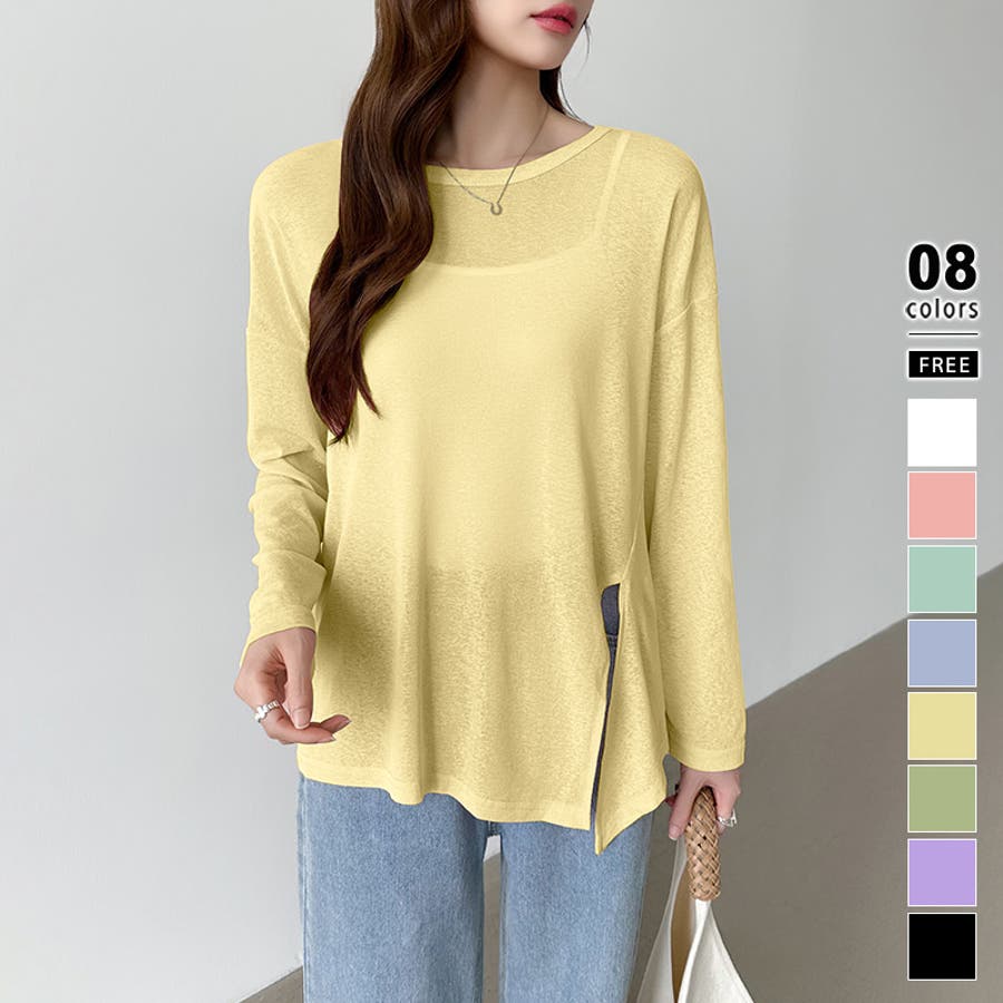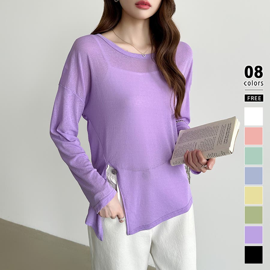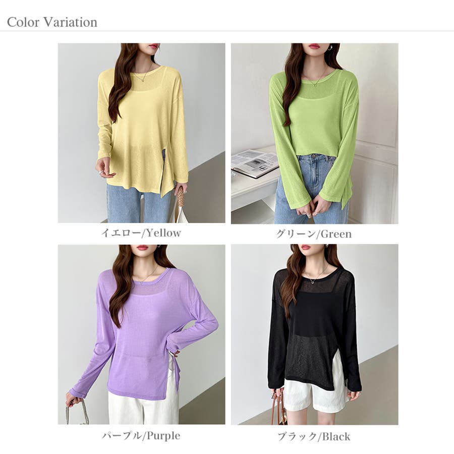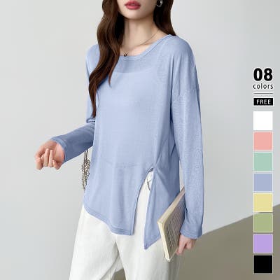 シアー トップス ロンT カットソー 長袖 レディース サイドスリット ロングtシャツ シアーカットソー シアーロンT シアートップス インナー クルーネック Tシャツ 袖長め オーバーサイズ 透け感 薄手 シアーロングTシャツ スラブ スラブシアー シアー長袖Tシャツ 長袖カットソー 長袖カットソーレディース 長袖Tシャツ 長袖tシャツ tシャツ ロンt ロンティー ロンTシャツ ろんT レディース長袖 スリット入り スリット 入り サイドスリットtシャツ 重ね着 袖くしゅ くしゅ くしゅくしゅ ストレッチ 無地 レイヤード プルオーバー 細見え 袖長い 袖 長め 長い ロングスリーブ ロングスリーブTシャツ おしゃれ ラウンドネック 着回し 着まわし 楽 楽ちん tops 伸縮性 重ね レイヤードインナー 長袖インナー 1枚で決まる 洗える 洗濯機で洗える 冷房対策 紫外線対策 日焼け対策 紫外線 日焼け UV 対策 水着の上から 海 プール ビーチ リゾート 旅行 お出かけ おでかけ カジュアル きれい め 大人 かわいい 可愛い 大人可愛い きれい め キレイ 綺麗 オシャレ プチプラ 高見え トレンド ヒット 商品 おすすめ 服 ファッション コーデ コーディネート 母 ママ ママコーデ 女性 服 服装 フリーサイズ フリー サイズ ホワイト 白 ピンク ライトグリーン ライトブルー ブルー 青 イエロー 黄色 グリーン 緑 パープル 紫 ブラック 黒 カラー 長袖トップス 長袖トップスレディース レディース春夏 レディース秋冬 レディース春物 レディース夏物 レディース秋物 レディース春 レディース冬 春トップス 秋トップス 冬トップス 春物 夏物 秋物 冬物 春用 夏用 秋用 冬用 春秋冬 春夏 秋冬 春 夏 秋 冬 春服 夏服 秋服 冬服 韓国 韓国ファッション 10代 20代 30代 40代 50代 60代 cocomomo ココモモ