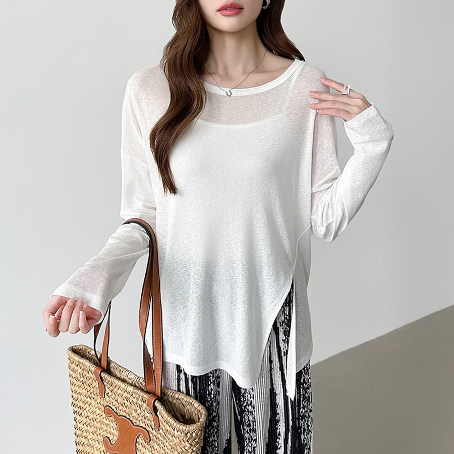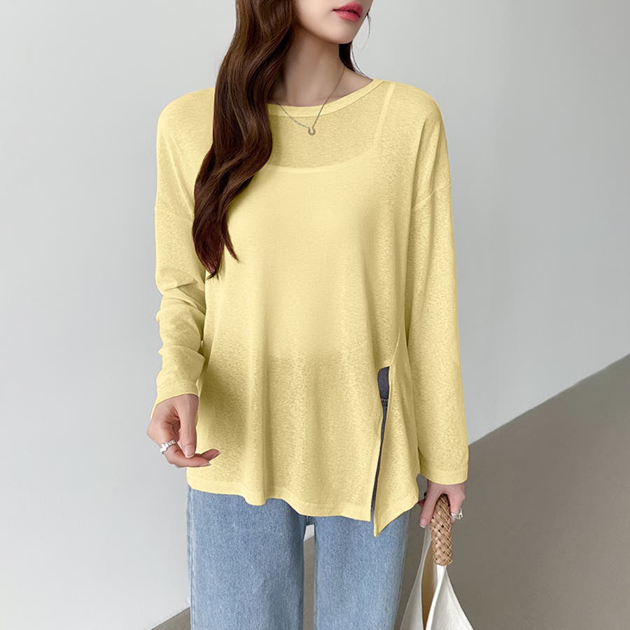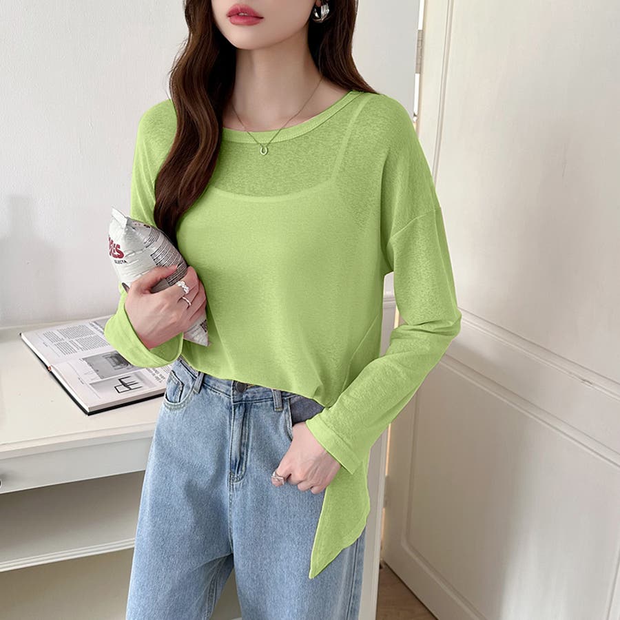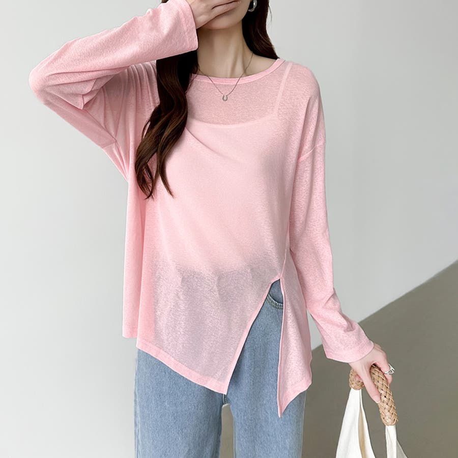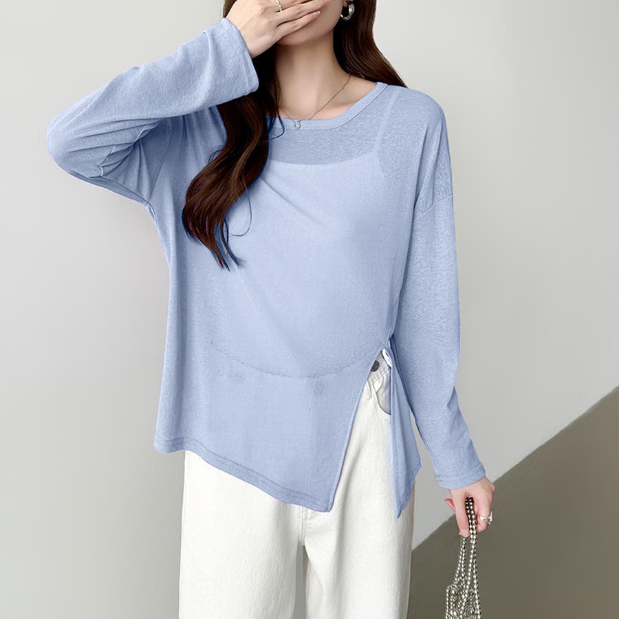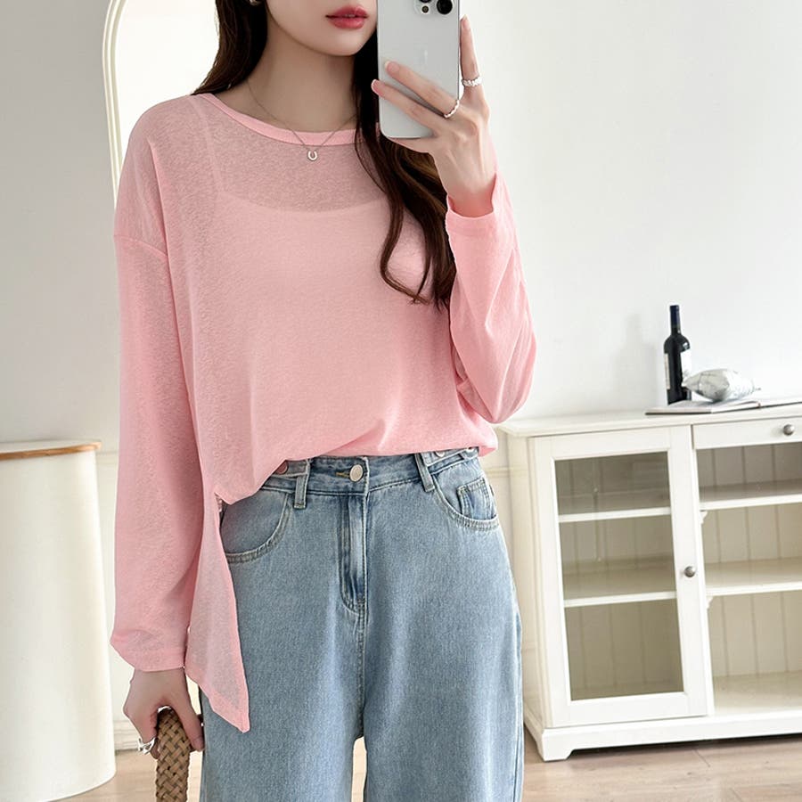 シアー トップス ロンT カットソー 長袖 レディース サイドスリット ロングtシャツ シアーカットソー シアーロンT シアートップス インナー クルーネック Tシャツ 袖長め オーバーサイズ 透け感 薄手 シアーロングTシャツ スラブ スラブシアー シアー長袖Tシャツ 長袖カットソー 長袖カットソーレディース 長袖Tシャツ 長袖tシャツ tシャツ ロンt ロンティー ロンTシャツ ろんT レディース長袖 スリット入り スリット 入り サイドスリットtシャツ 重ね着 袖くしゅ くしゅ くしゅくしゅ ストレッチ 無地 レイヤード プルオーバー 細見え 袖長い 袖 長め 長い ロングスリーブ ロングスリーブTシャツ おしゃれ ラウンドネック 着回し 着まわし 楽 楽ちん tops 伸縮性 重ね レイヤードインナー 長袖インナー 1枚で決まる 洗える 洗濯機で洗える 冷房対策 紫外線対策 日焼け対策 紫外線 日焼け UV 対策 水着の上から 海 プール ビーチ リゾート 旅行 お出かけ おでかけ カジュアル きれい め 大人 かわいい 可愛い 大人可愛い きれい め キレイ 綺麗 オシャレ プチプラ 高見え トレンド ヒット 商品 おすすめ 服 ファッション コーデ コーディネート 母 ママ ママコーデ 女性 服 服装 フリーサイズ フリー サイズ ホワイト 白 ピンク ライトグリーン ライトブルー ブルー 青 イエロー 黄色 グリーン 緑 パープル 紫 ブラック 黒 カラー 長袖トップス 長袖トップスレディース レディース春夏 レディース秋冬 レディース春物 レディース夏物 レディース秋物 レディース春 レディース冬 春トップス 秋トップス 冬トップス 春物 夏物 秋物 冬物 春用 夏用 秋用 冬用 春秋冬 春夏 秋冬 春 夏 秋 冬 春服 夏服 秋服 冬服 韓国 韓国ファッション 10代 20代 30代 40代 50代 60代 cocomomo ココモモ