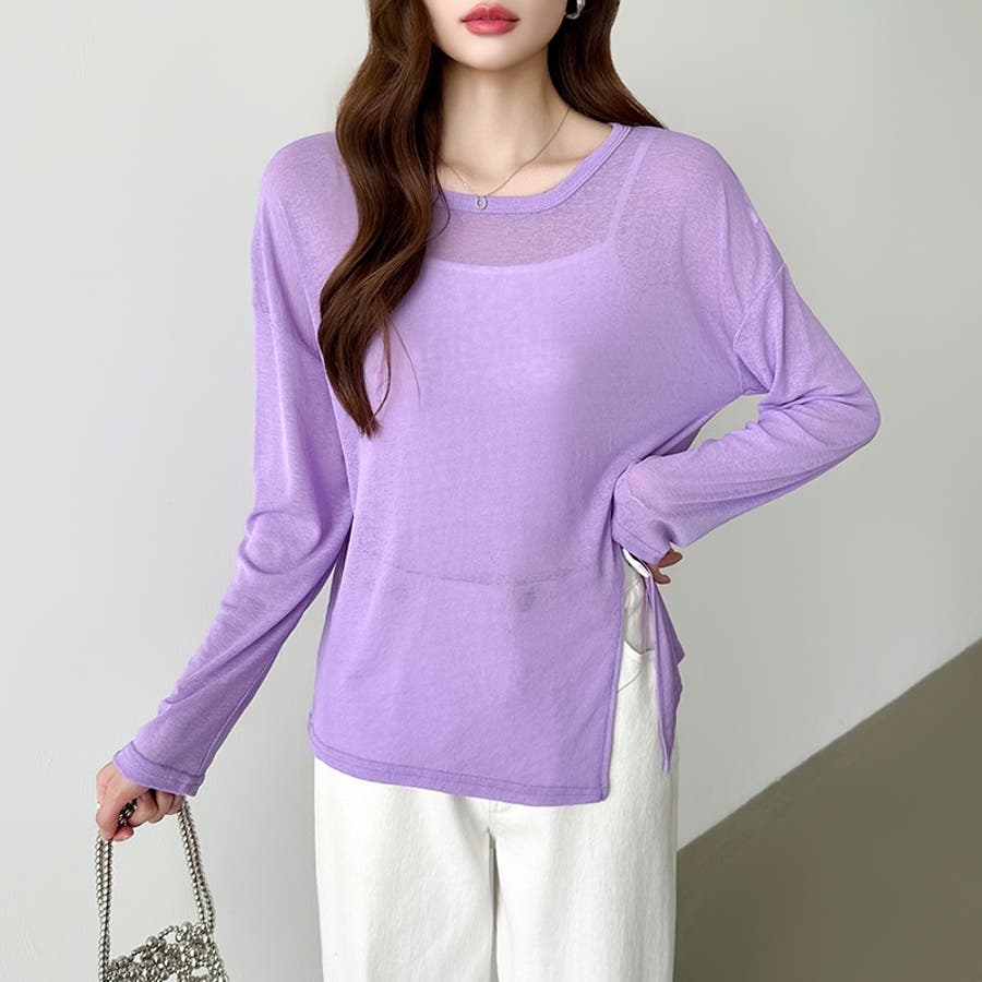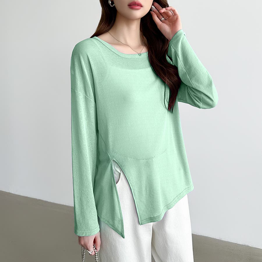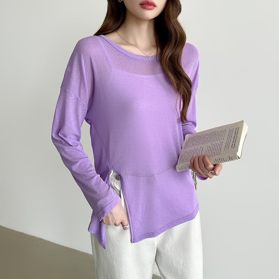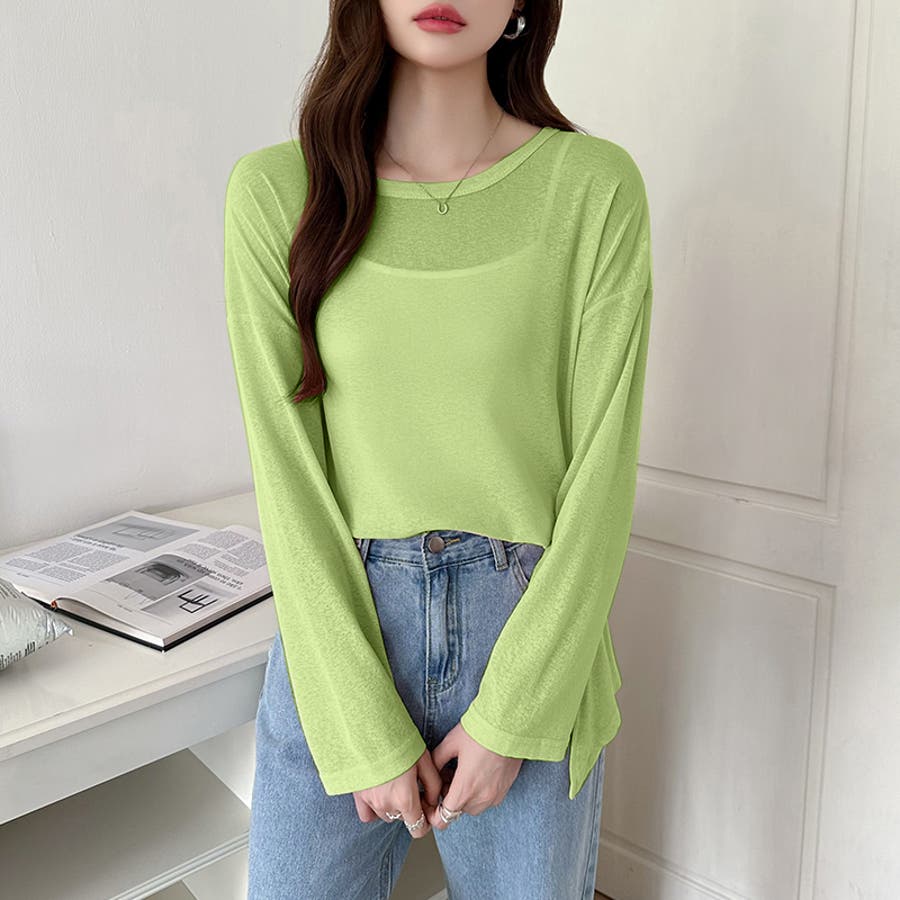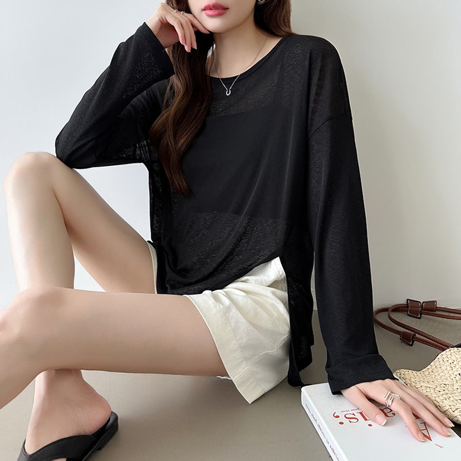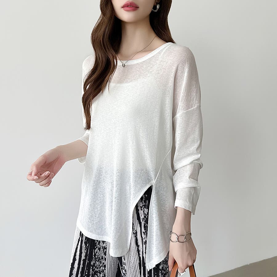 シアー トップス ロンT カットソー 長袖 レディース サイドスリット ロングtシャツ シアーカットソー シアーロンT シアートップス インナー クルーネック Tシャツ 袖長め オーバーサイズ 透け感 薄手 シアーロングTシャツ スラブ スラブシアー シアー長袖Tシャツ 長袖カットソー 長袖カットソーレディース 長袖Tシャツ 長袖tシャツ tシャツ ロンt ロンティー ロンTシャツ ろんT レディース長袖 スリット入り スリット 入り サイドスリットtシャツ 重ね着 袖くしゅ くしゅ くしゅくしゅ ストレッチ 無地 レイヤード プルオーバー 細見え 袖長い 袖 長め 長い ロングスリーブ ロングスリーブTシャツ おしゃれ ラウンドネック 着回し 着まわし 楽 楽ちん tops 伸縮性 重ね レイヤードインナー 長袖インナー 1枚で決まる 洗える 洗濯機で洗える 冷房対策 紫外線対策 日焼け対策 紫外線 日焼け UV 対策 水着の上から 海 プール ビーチ リゾート 旅行 お出かけ おでかけ カジュアル きれい め 大人 かわいい 可愛い 大人可愛い きれい め キレイ 綺麗 オシャレ プチプラ 高見え トレンド ヒット 商品 おすすめ 服 ファッション コーデ コーディネート 母 ママ ママコーデ 女性 服 服装 フリーサイズ フリー サイズ ホワイト 白 ピンク ライトグリーン ライトブルー ブルー 青 イエロー 黄色 グリーン 緑 パープル 紫 ブラック 黒 カラー 長袖トップス 長袖トップスレディース レディース春夏 レディース秋冬 レディース春物 レディース夏物 レディース秋物 レディース春 レディース冬 春トップス 秋トップス 冬トップス 春物 夏物 秋物 冬物 春用 夏用 秋用 冬用 春秋冬 春夏 秋冬 春 夏 秋 冬 春服 夏服 秋服 冬服 韓国 韓国ファッション 10代 20代 30代 40代 50代 60代 cocomomo ココモモ