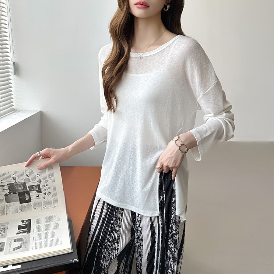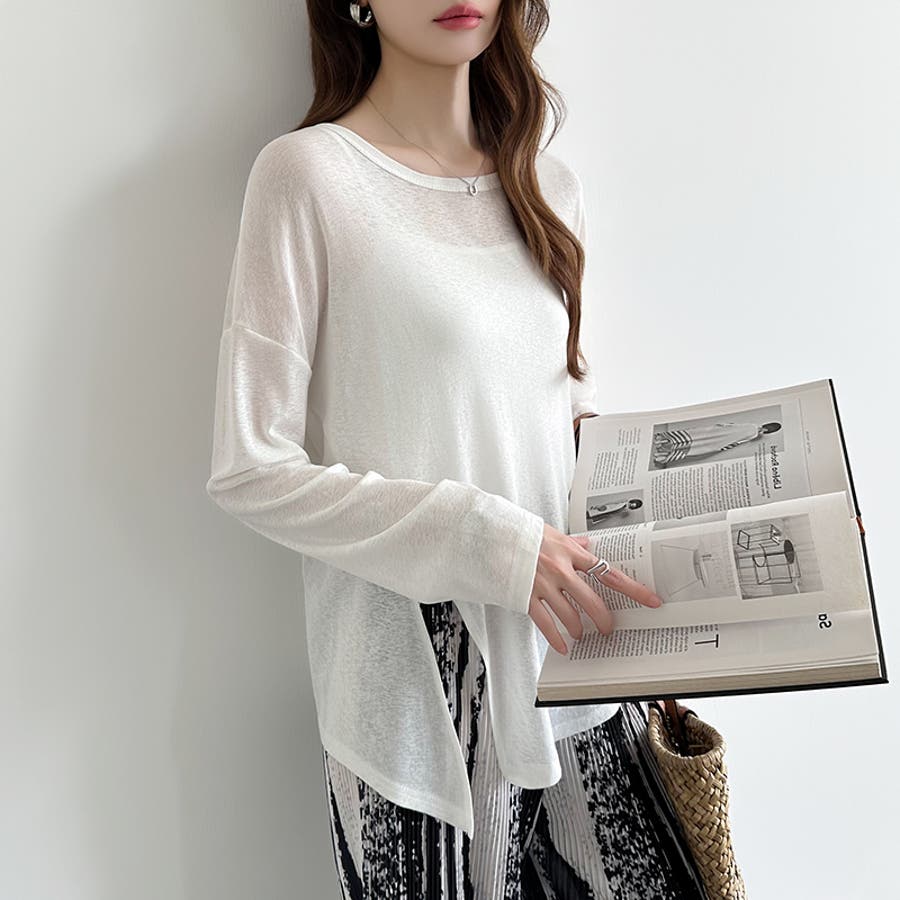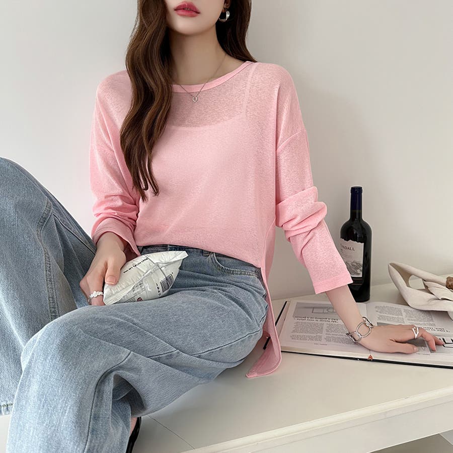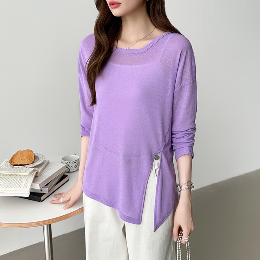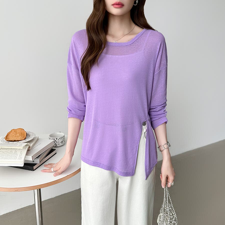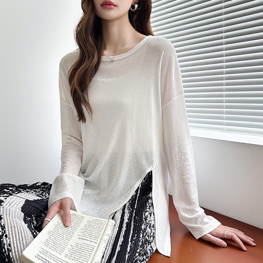シアー トップス ロンT カットソー 長袖 レディース サイドスリット ロングtシャツ シアーカットソー シアーロンT シアートップス インナー クルーネック Tシャツ 袖長め オーバーサイズ 透け感 薄手 シアーロングTシャツ スラブ スラブシアー シアー長袖Tシャツ 長袖カットソー 長袖カットソーレディース 長袖Tシャツ 長袖tシャツ tシャツ ロンt ロンティー ロンTシャツ ろんT レディース長袖 スリット入り スリット 入り サイドスリットtシャツ 重ね着 袖くしゅ くしゅ くしゅくしゅ ストレッチ 無地 レイヤード プルオーバー 細見え 袖長い 袖 長め 長い ロングスリーブ ロングスリーブTシャツ おしゃれ ラウンドネック 着回し 着まわし 楽 楽ちん tops 伸縮性 重ね レイヤードインナー 長袖インナー 1枚で決まる 洗える 洗濯機で洗える 冷房対策 紫外線対策 日焼け対策 紫外線 日焼け UV 対策 水着の上から 海 プール ビーチ リゾート 旅行 お出かけ おでかけ カジュアル きれい め 大人 かわいい 可愛い 大人可愛い きれい め キレイ 綺麗 オシャレ プチプラ 高見え トレンド ヒット 商品 おすすめ 服 ファッション コーデ コーディネート 母 ママ ママコーデ 女性 服 服装 フリーサイズ フリー サイズ ホワイト 白 ピンク ライトグリーン ライトブルー ブルー 青 イエロー 黄色 グリーン 緑 パープル 紫 ブラック 黒 カラー 長袖トップス 長袖トップスレディース レディース春夏 レディース秋冬 レディース春物 レディース夏物 レディース秋物 レディース春 レディース冬 春トップス 秋トップス 冬トップス 春物 夏物 秋物 冬物 春用 夏用 秋用 冬用 春秋冬 春夏 秋冬 春 夏 秋 冬 春服 夏服 秋服 冬服 韓国 韓国ファッション 10代 20代 30代 40代 50代 60代 cocomomo ココモモ