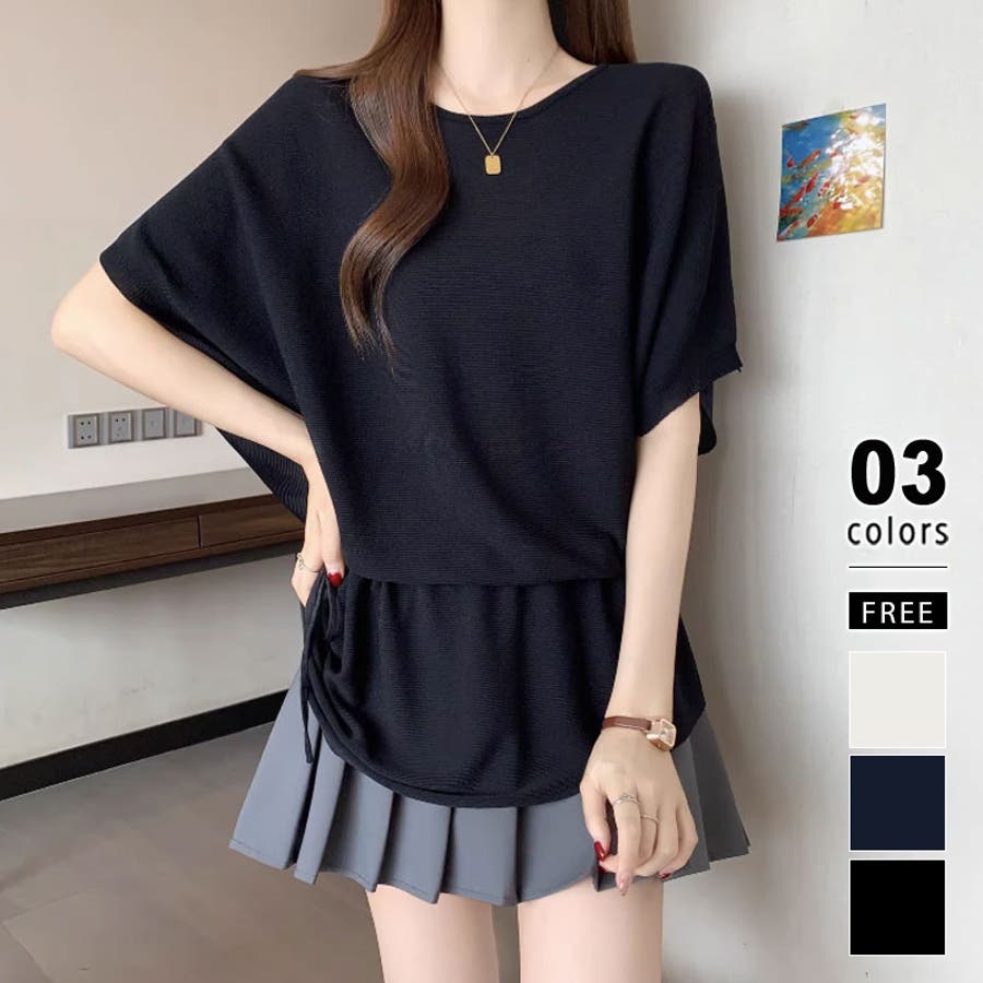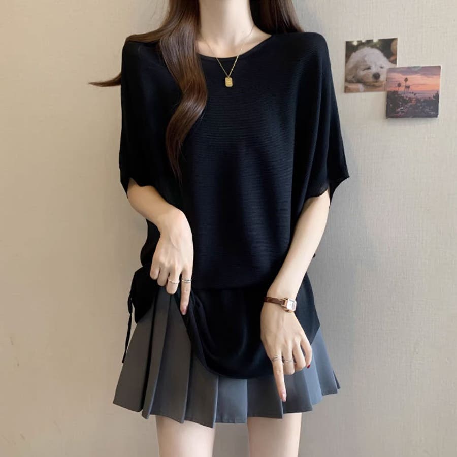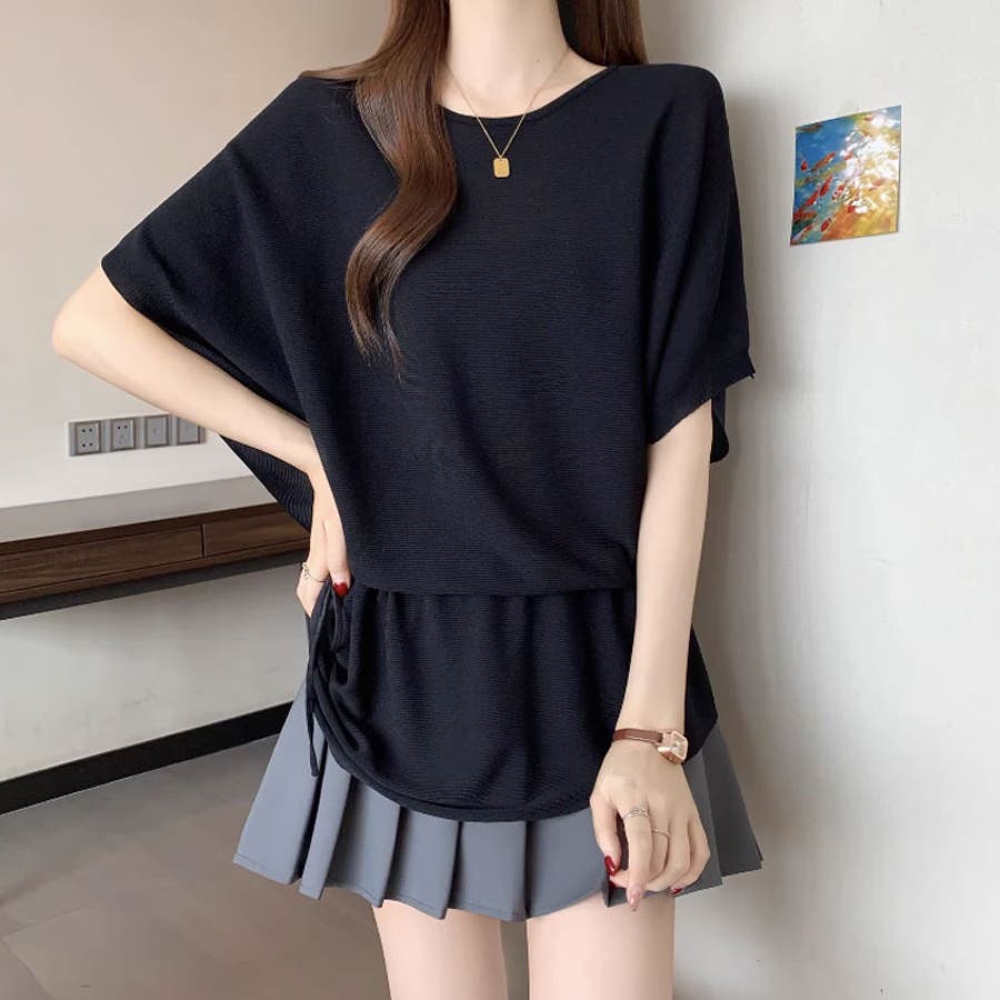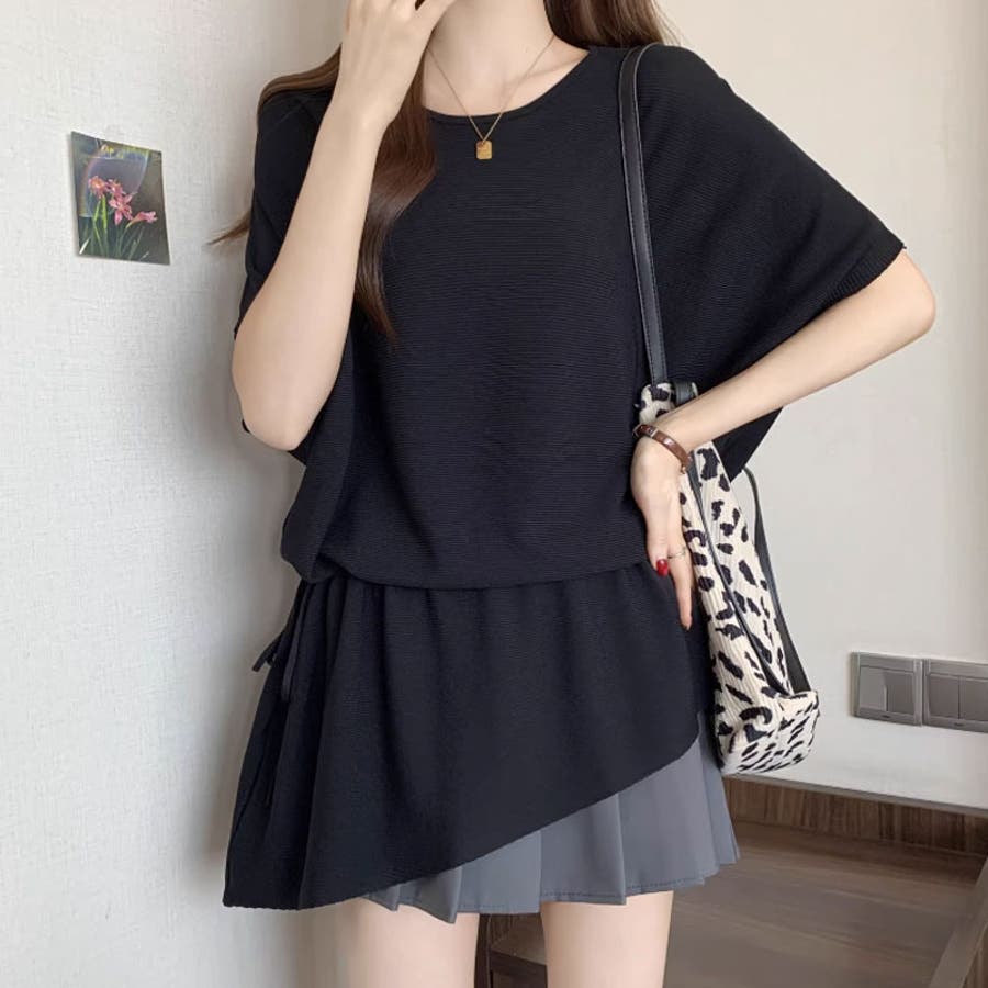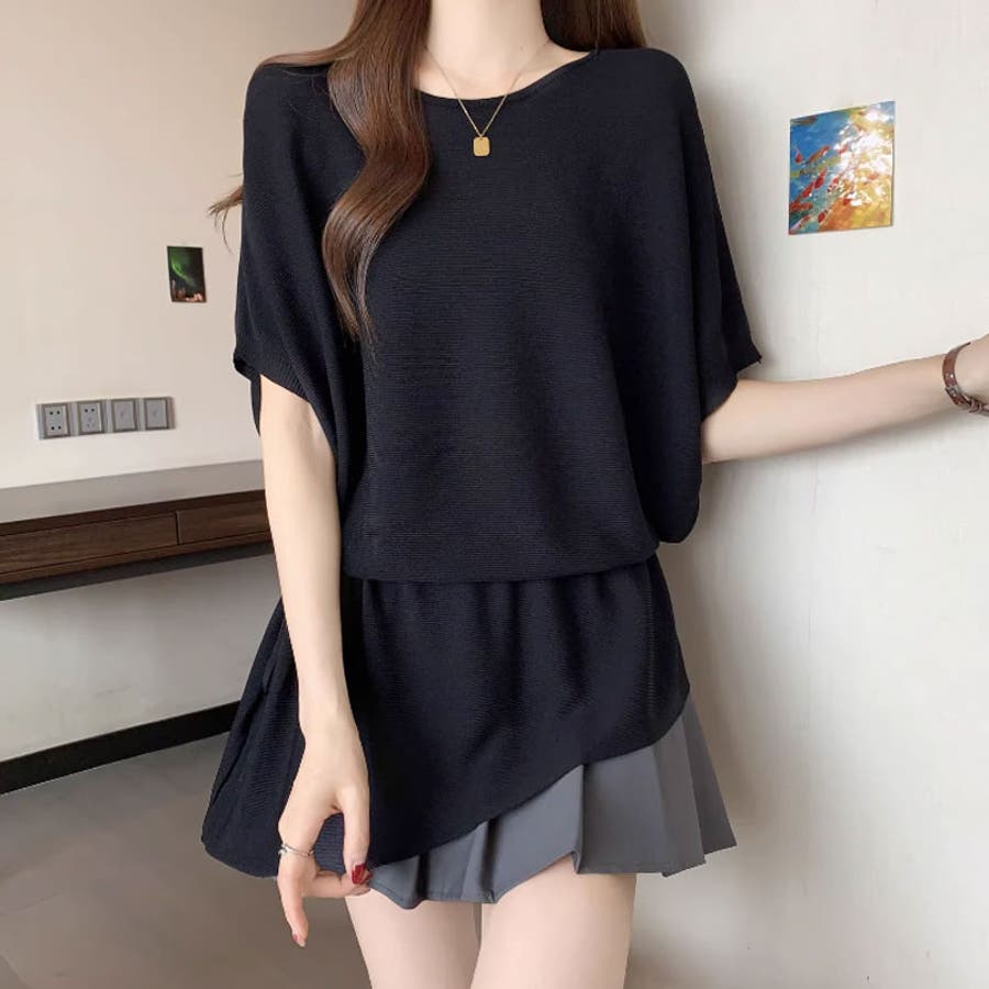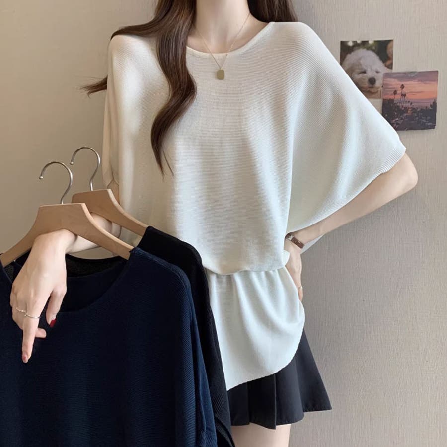 ペプラムトップス ドルマンスリーブ 半袖ニット
