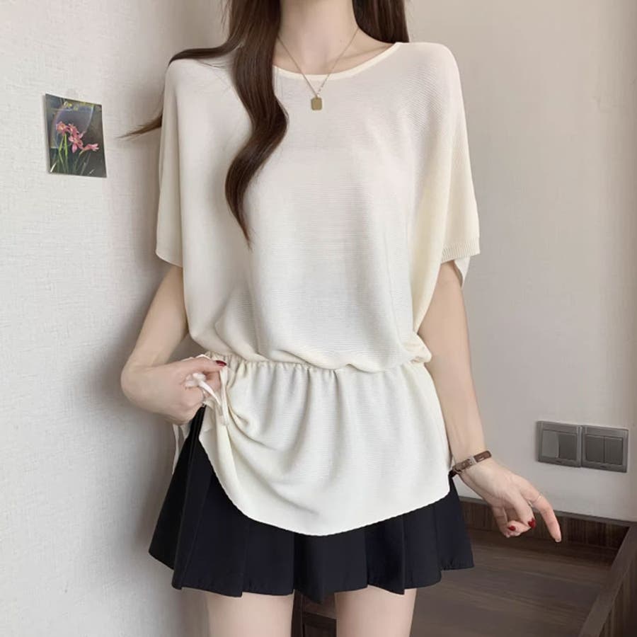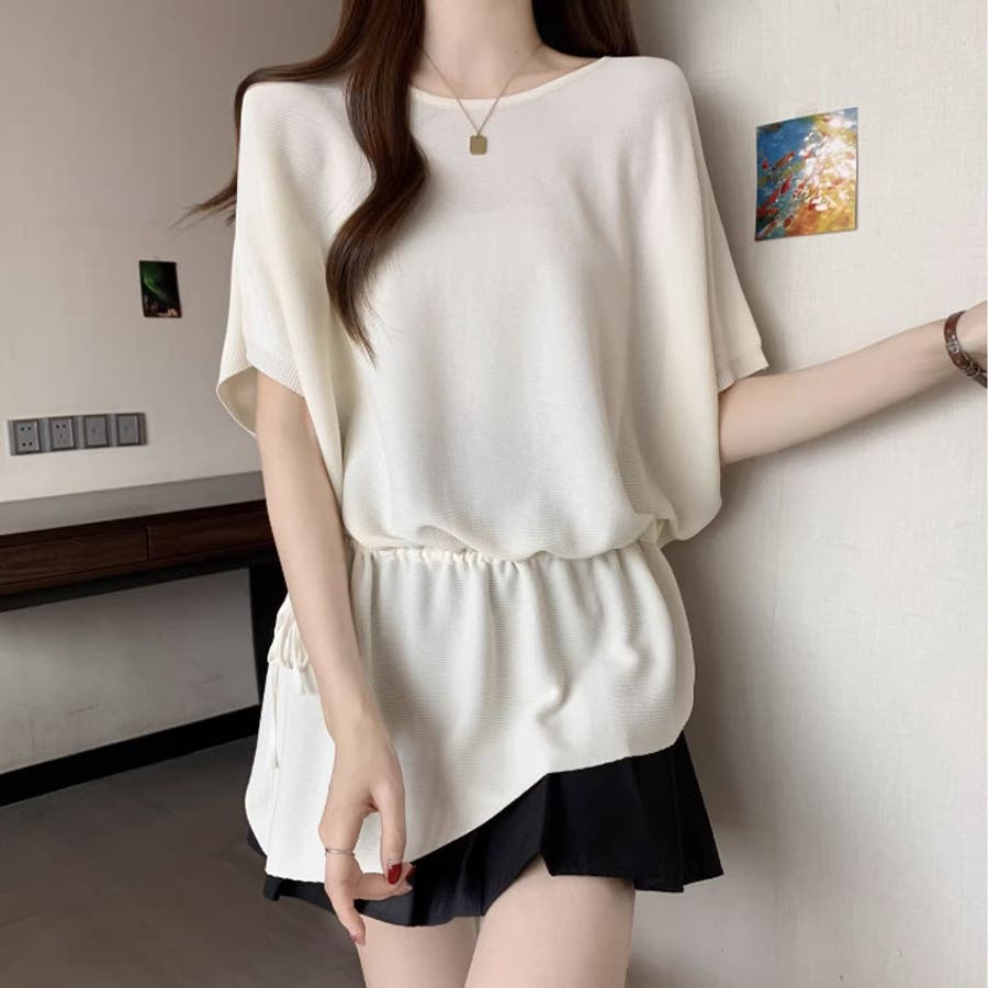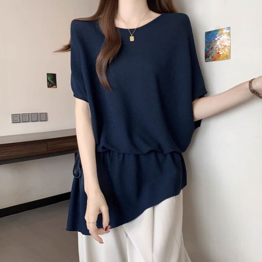 ペプラム トップス ドルマン ニット 半袖 ドロスト レディース ドルマンスリーブ ニットソー 半袖ニット アシンメトリー ペプラムトップス ゆったり 体型カバー ロング チュニック クルーネック ウエスト紐 アシンメトリートップス アシメ カットソー Tシャツ 半袖Tシャツ 涼しい 半袖カットソー カジュアルトップス プルオーバー 半袖おしゃれ 伸縮性 ストレッチ ウエスト 紐 調整 tops 洗える 洗濯機で洗える 洗濯 韓国風 韓国服 カジュアル 大人 かわいい 可愛い おしゃれ オシャレ プチプラ 高見え トレンド ヒット 商品 おすすめ 服 ファッション コーデ コーディネート 母 ママ ママコーデ 女性 服 服装 フリー サイズ フリーサイズ アイボリー 白 ネイビー 紺 紺色 ブラック 黒 カラー レディース春夏 レディース夏物 レディース夏 レディース春 春トップス 夏トップス トップス夏 春物 夏物 春用 夏用 春夏 春 夏 春服 夏服 韓国 韓国ファッション 10代 20代 30代 40代 50代 cocomomo ココモモ