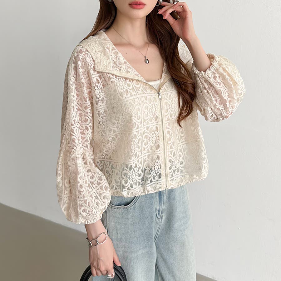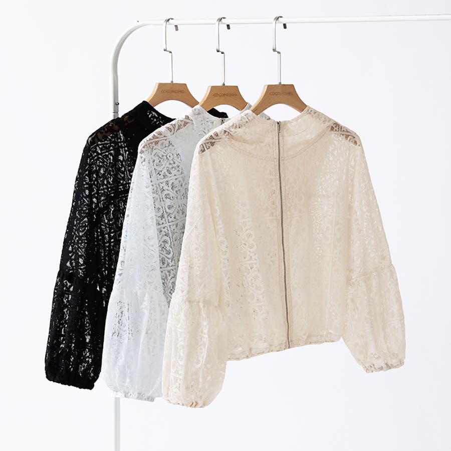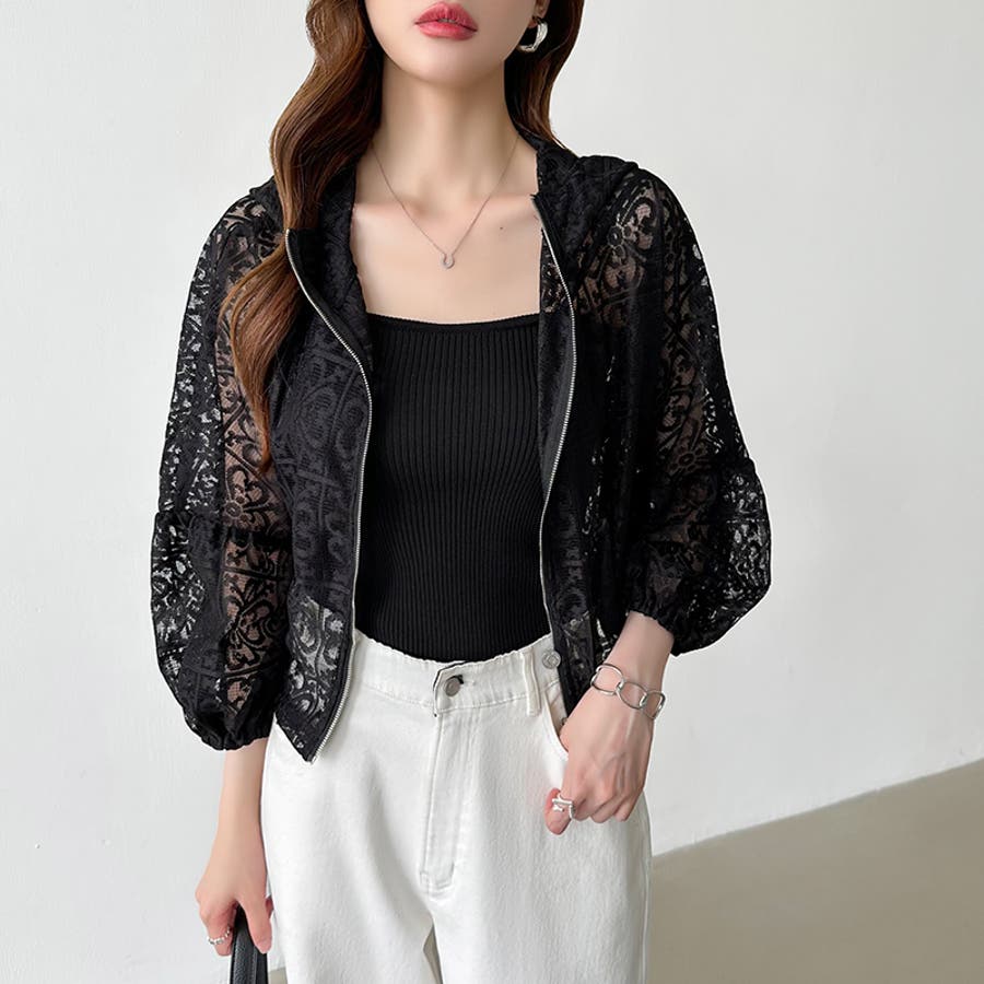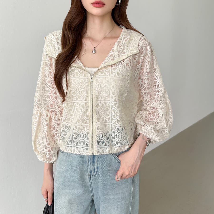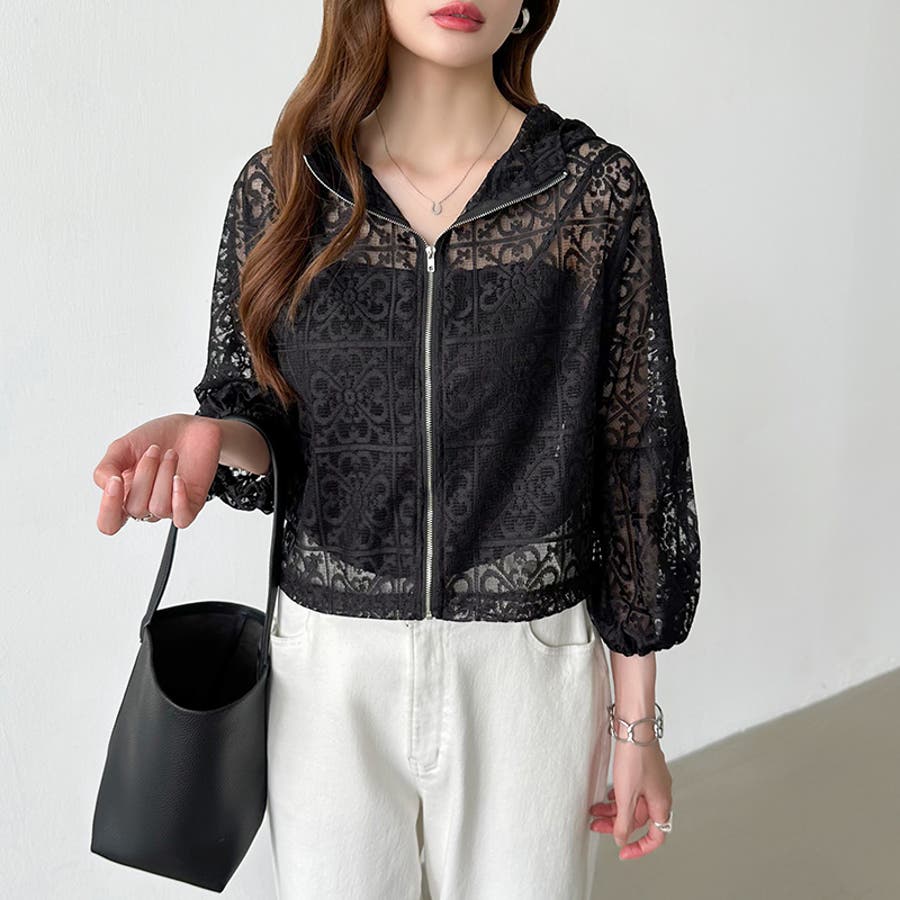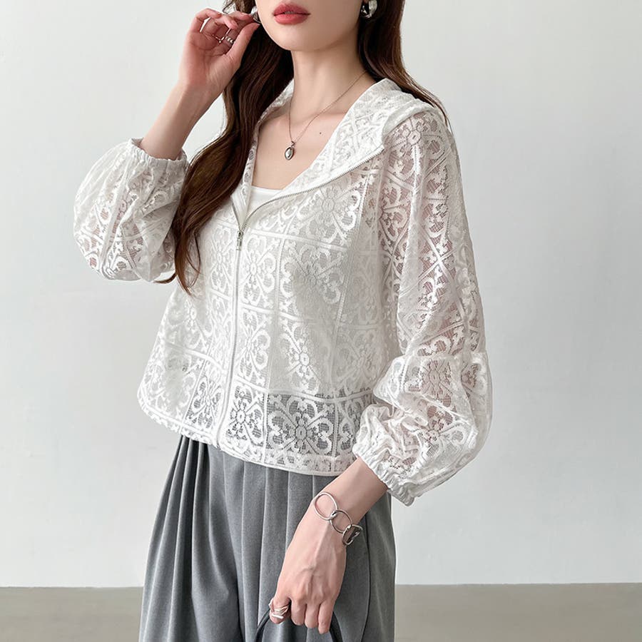 パネルレースシアーブルゾン レースパーカー ショート丈