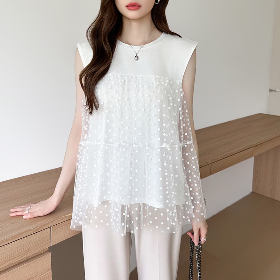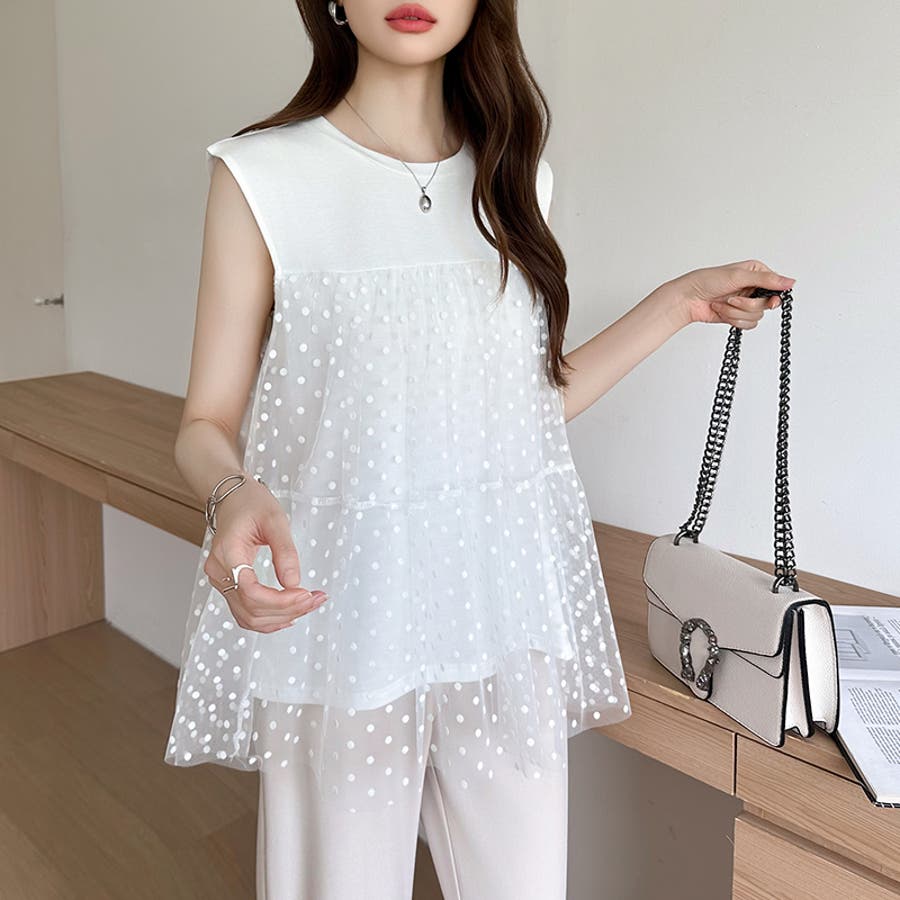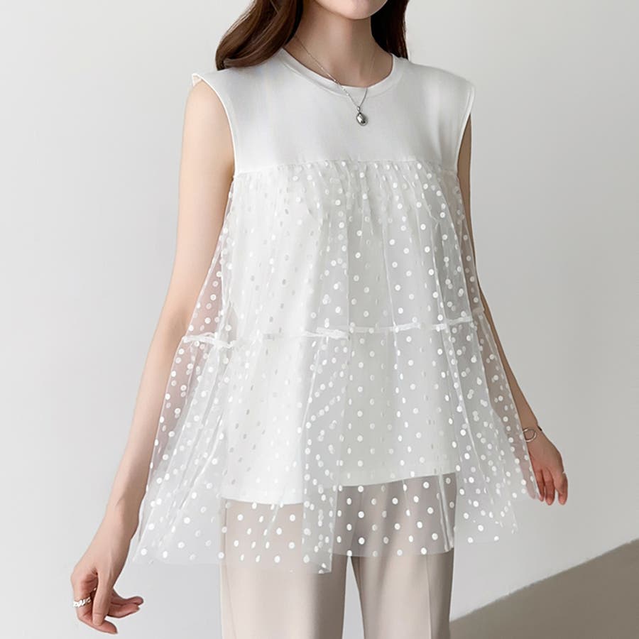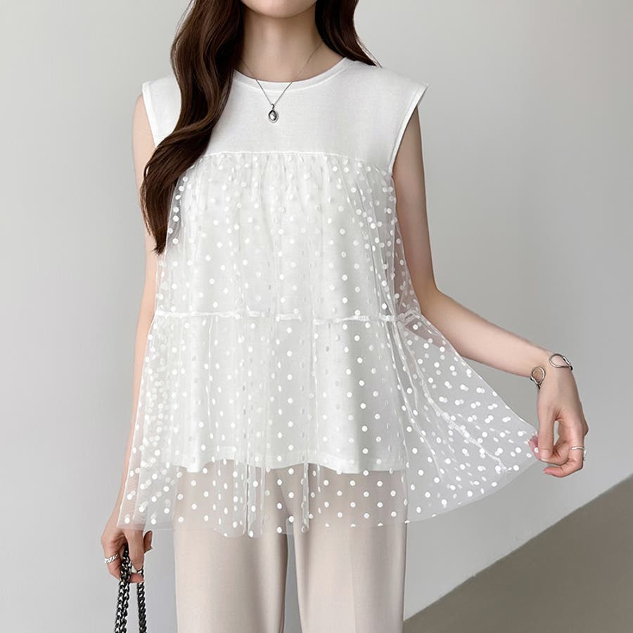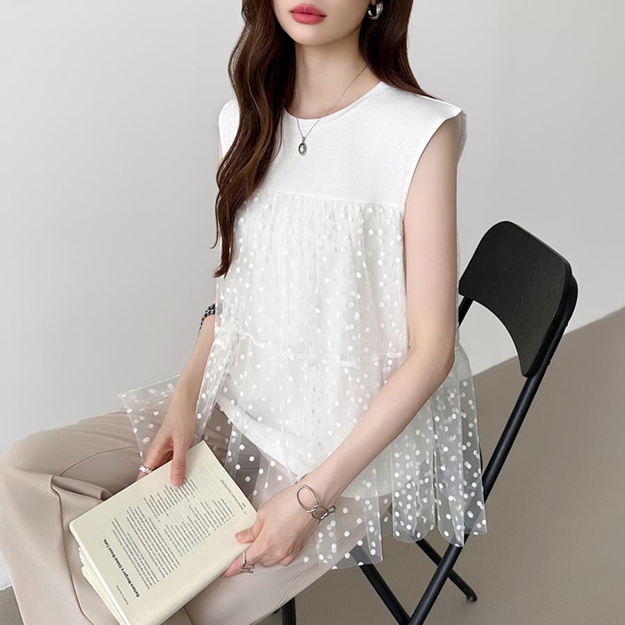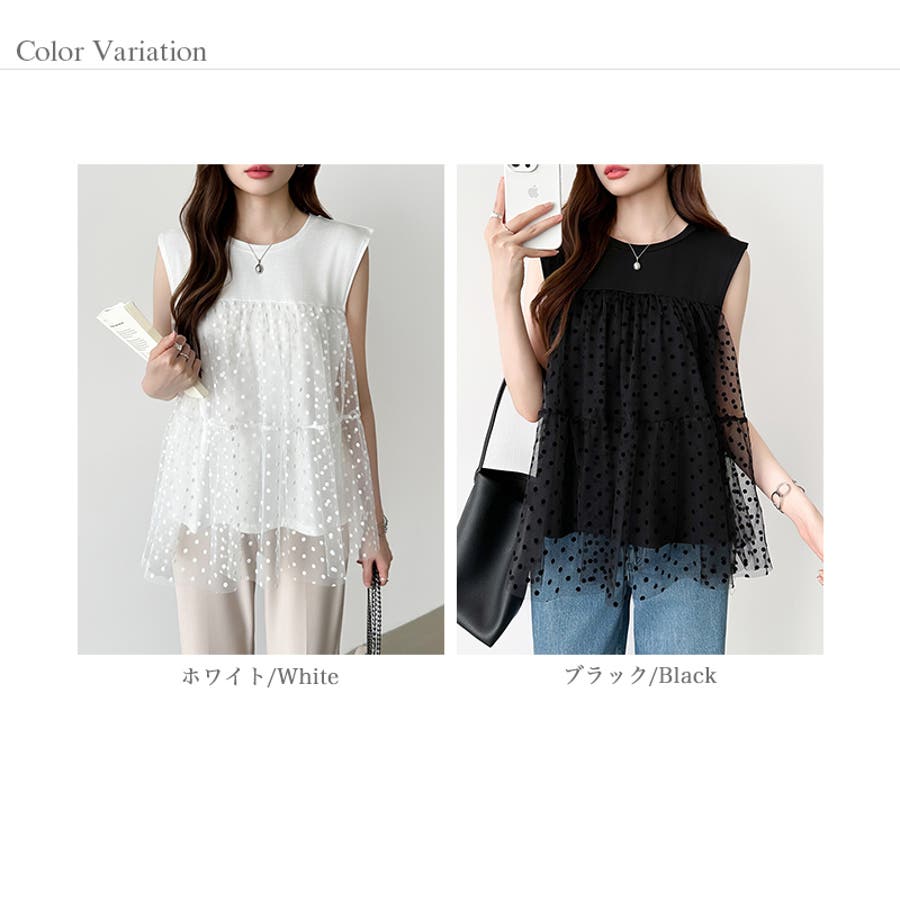チュール ドッキングトップス ドットチュール ビスチェ トップス レディース ティアード チュニック ノースリーブ ビスチェ風 ドッキング ドット 水玉 シアー カットソー チュールトップス ノースリーブTシャツ タンクトップ レース 大人可愛い 透け感 体型カバー 体型 カバー 隠し ビスチェ風トップス ビスチェドッキング ビスチェドッキングプルオーバー ドッキングチュニック チュールドッキング チュールドッキングトップス きれいめ 切り替え フリル 切替 異素材 異素材カットソー 異素材トップス クルーネック プルオーバー ノースリーブTシャツレディース ノースリーブティーシャツ ノースリーブトップス ノースリーブカットソー ティアードチュニック ドットトップス ドット柄 柄 後ろが長い 後ろ長め 後ろ 長い 長め カットソーレディース オーガンジー ふんわり ボリューム tops ストレッチ 伸縮性 お出かけ 旅行 普段着 着回し 韓国風 二次会 食事会 女子会 デート 通勤 通学 華やか カジュアル フェミニン 大人 かわいい 可愛い 大人かわいい きれい め おしゃれ オシャレ プチプラ 高見え トレンド ヒット 商品 おすすめ 服 ファッション コーデ コーディネート 母 ママ ママコーデ 女性 服 服装 洋服 フリーサイズ フリー サイズ ホワイト 白 ブラック 黒 カラー レディース春夏 レディース春物 レディース夏物 レディース春 春トップス レディース夏 夏トップス レディース韓国 春物 夏物 春用 夏用 春夏 春 夏 春服 夏服 韓国 韓国ファッション 10代 20代 30代 40代 50代 cocomomo ココモモ