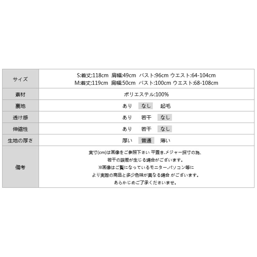 | サイズ | S: 総丈 118cm 肩幅 49cm バスト 96cm ウエスト 64-104cm M: 総丈 119cm 肩幅 50cm バスト 100cm ウエスト 68-108cm |