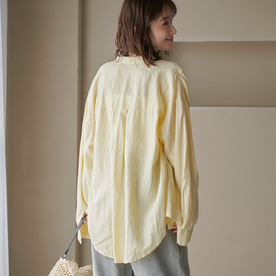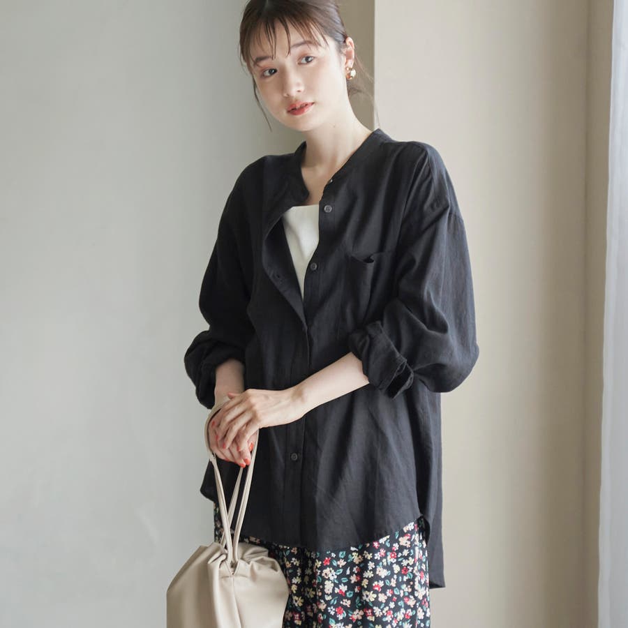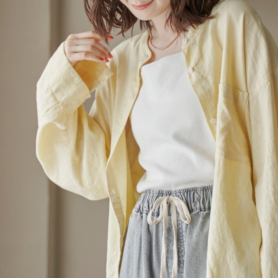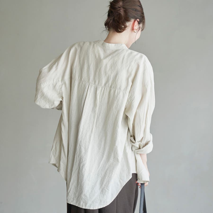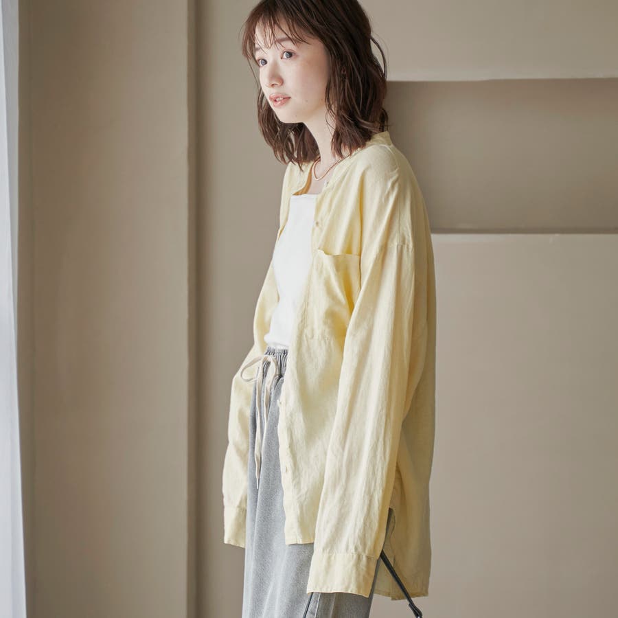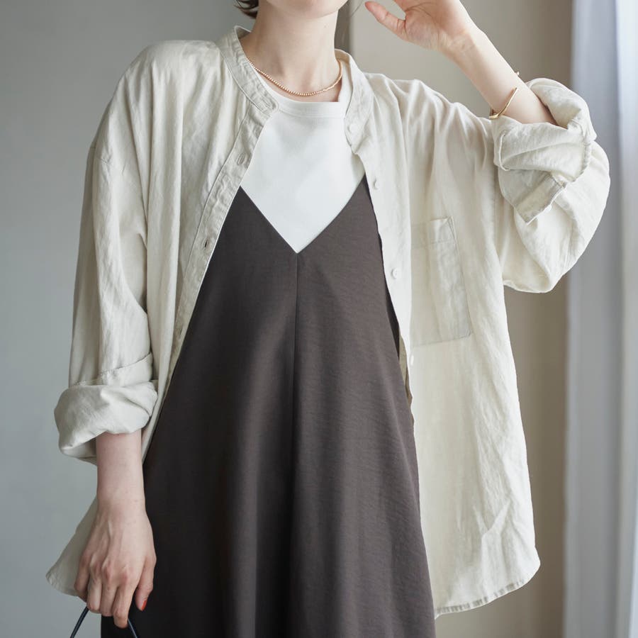 品名:リネンレーヨンバンドカラーシャツ