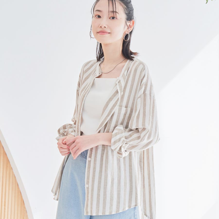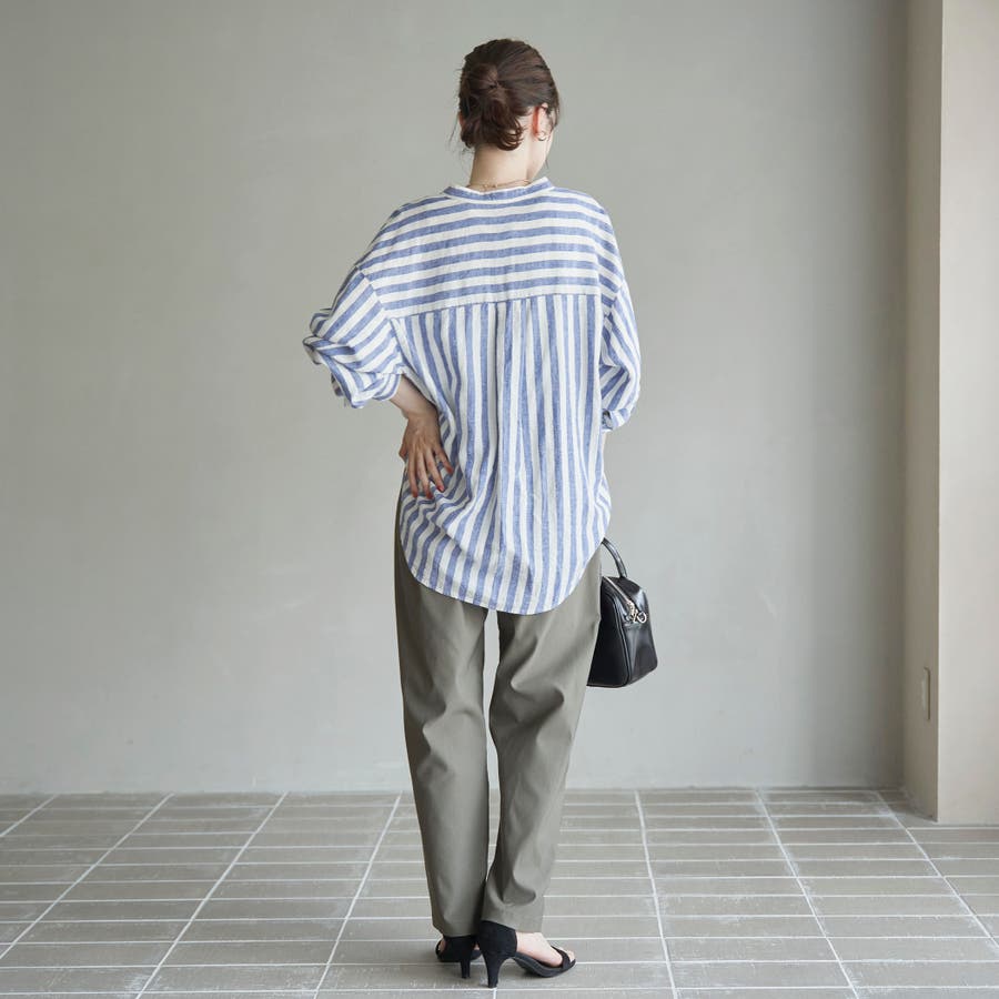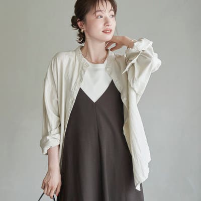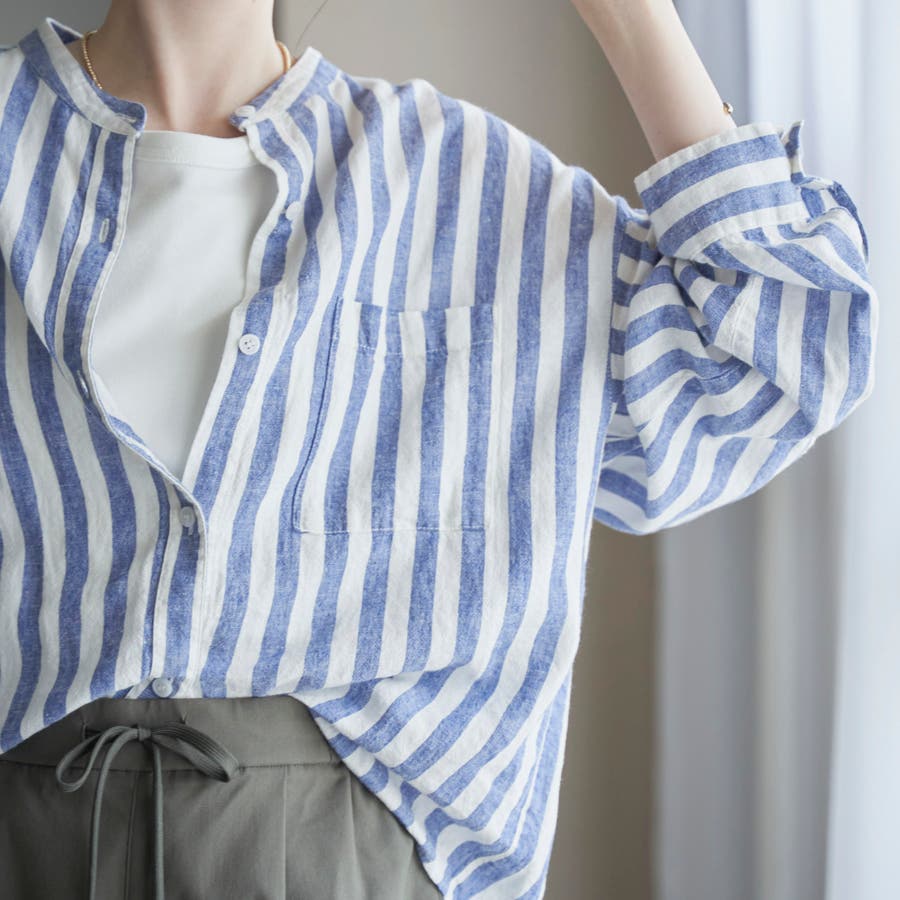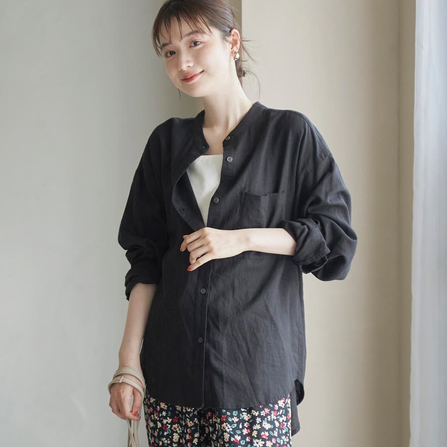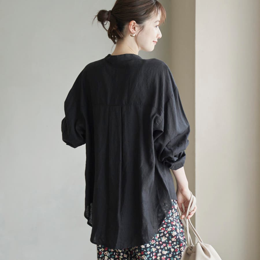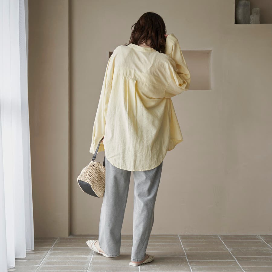 品名:リネンレーヨンバンドカラーシャツ
