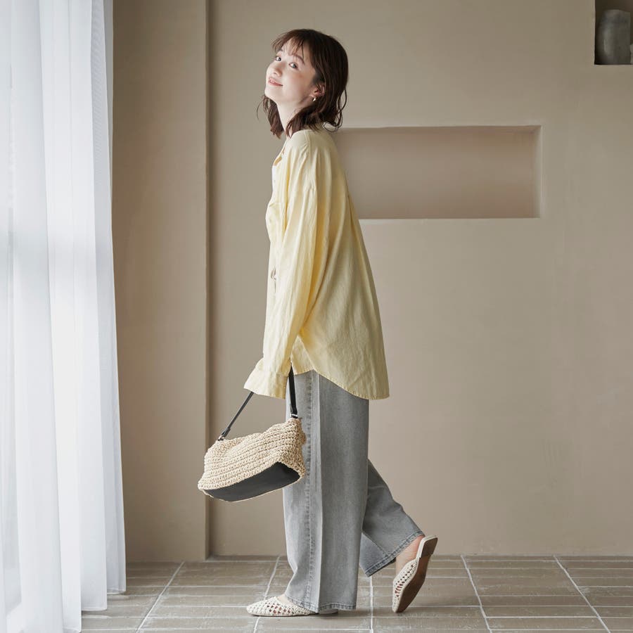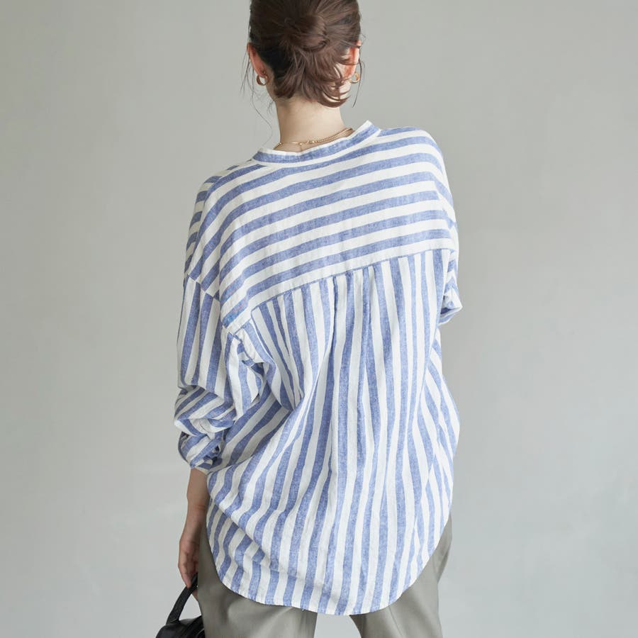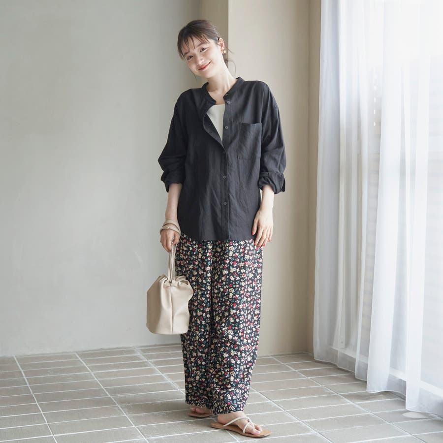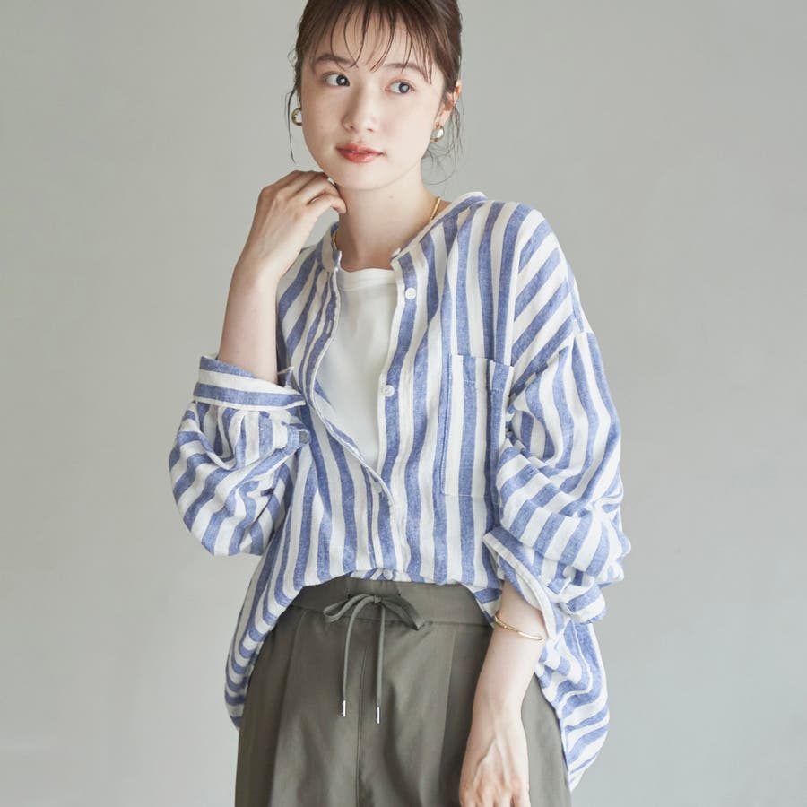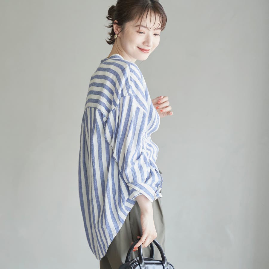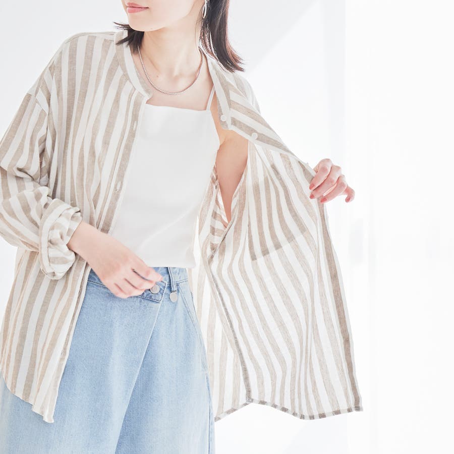 品名:リネンレーヨンバンドカラーシャツ