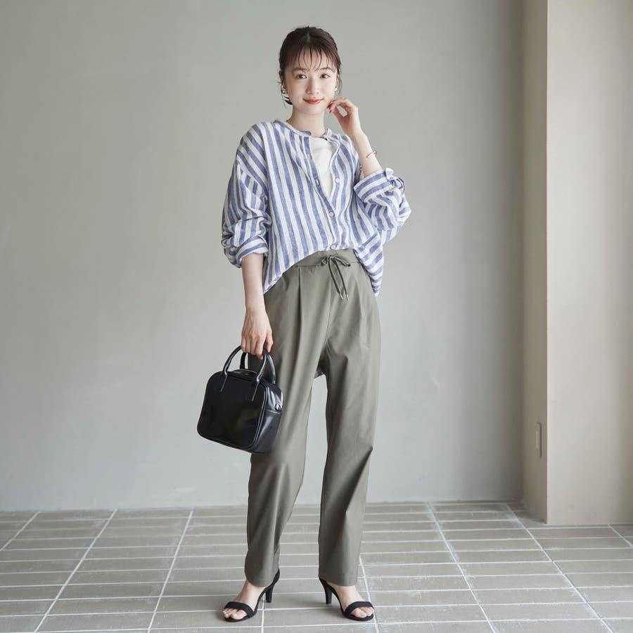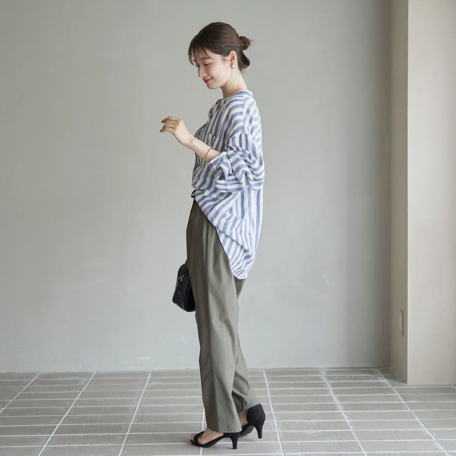 麻×レーヨンのブレンド素材で、汗ばむ季節にもさらっと快適に着用できます。