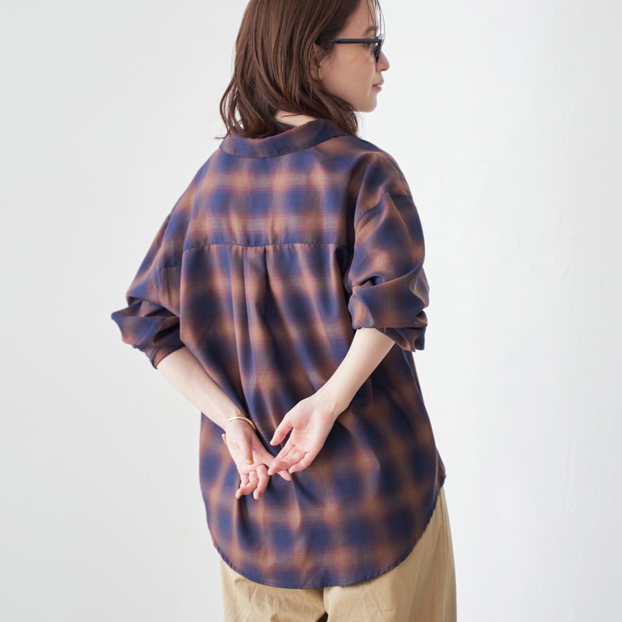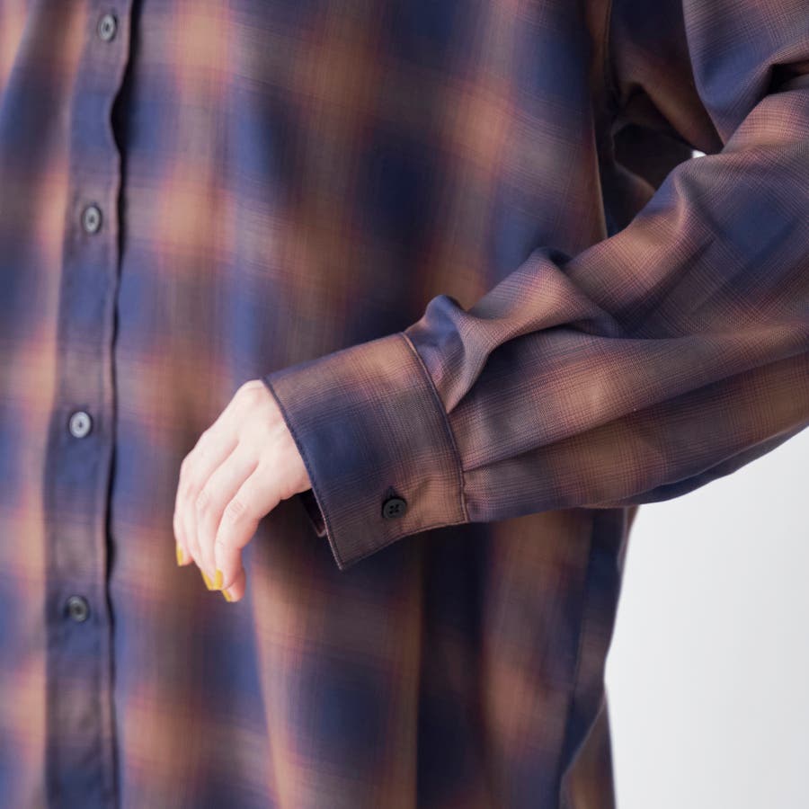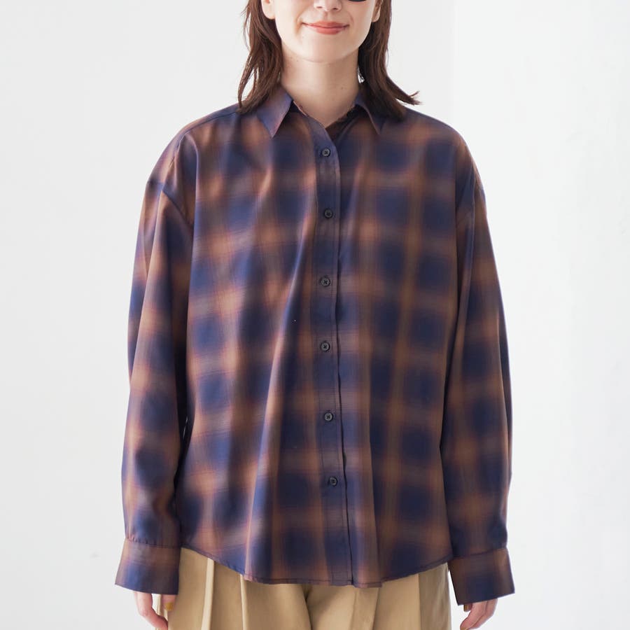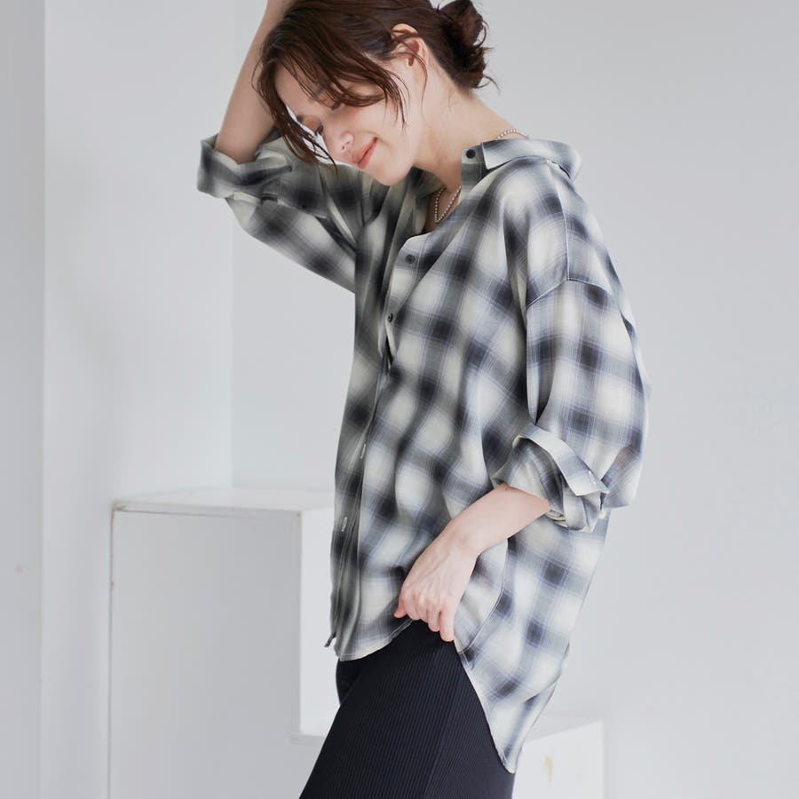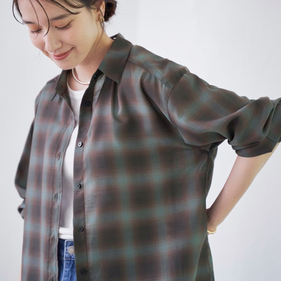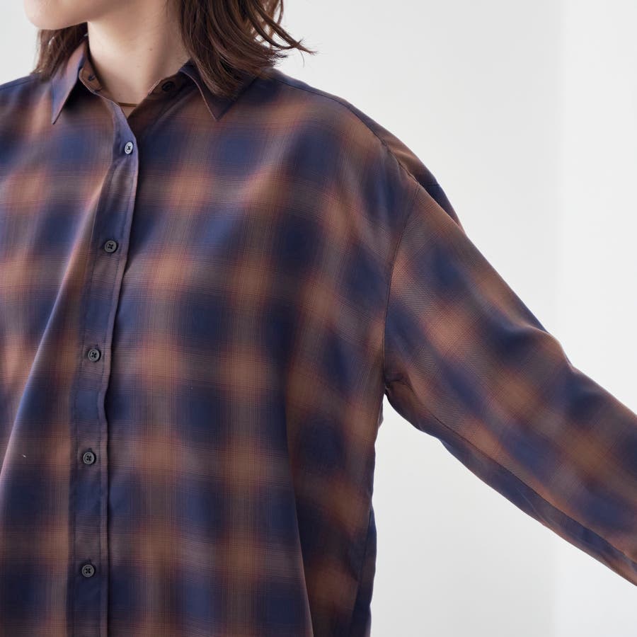 グラデーションのような色合いが魅力のオンブレチェックを、軽やかなシアー素材で仕上げたレギュラーシャツ。