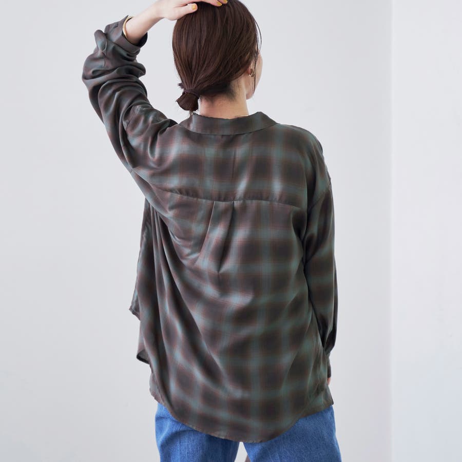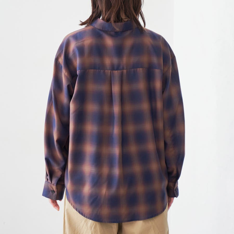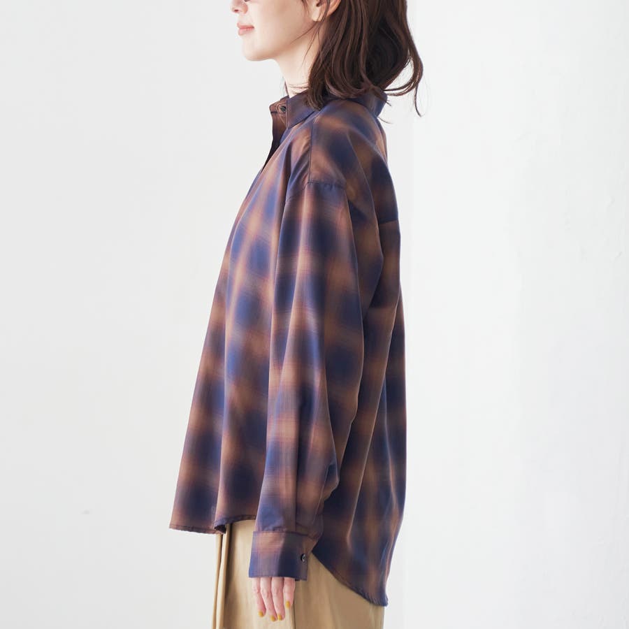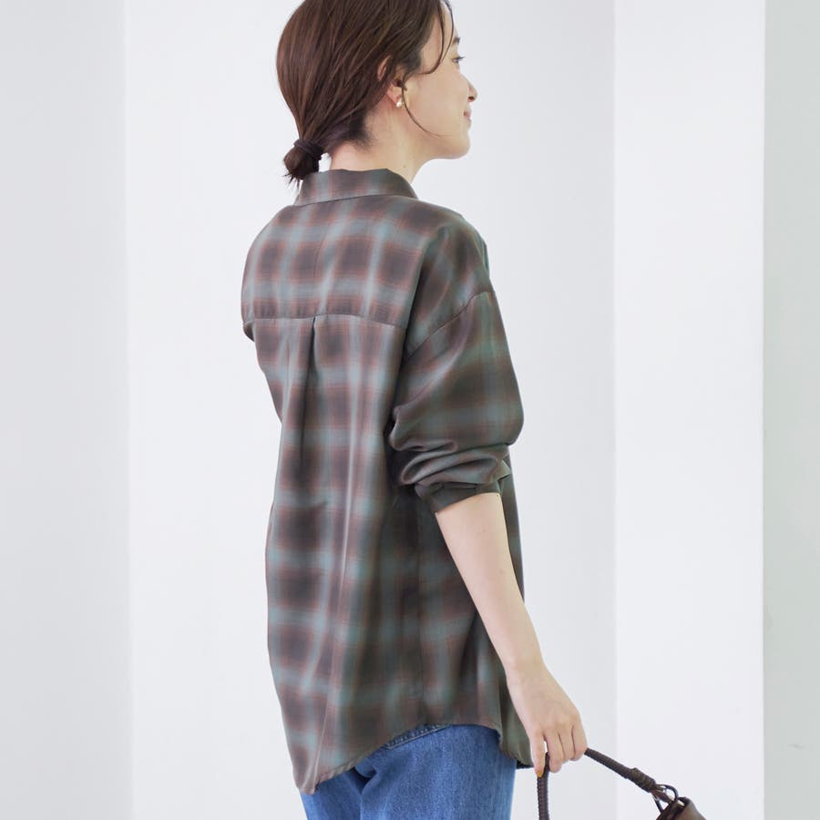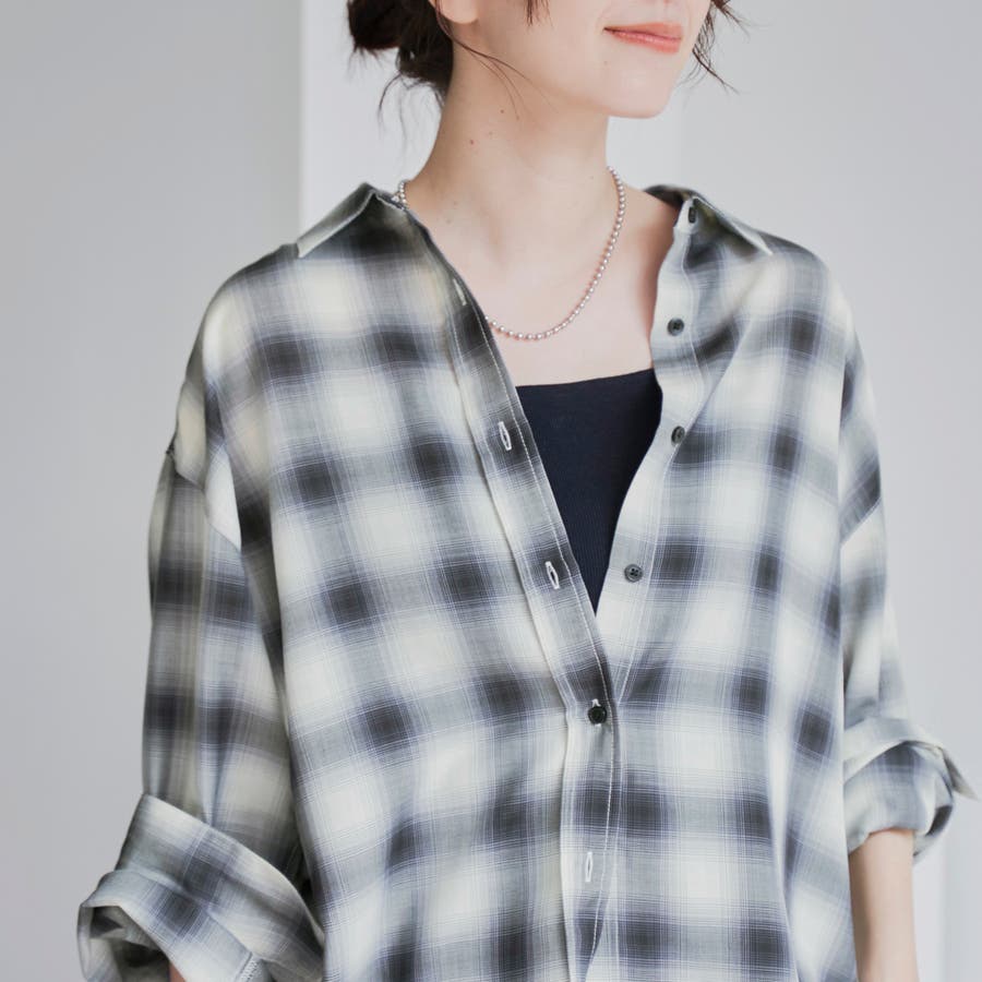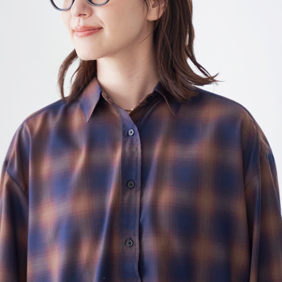 グラデーションのような色合いが魅力のオンブレチェックを、軽やかなシアー素材で仕上げたレギュラーシャツ。
