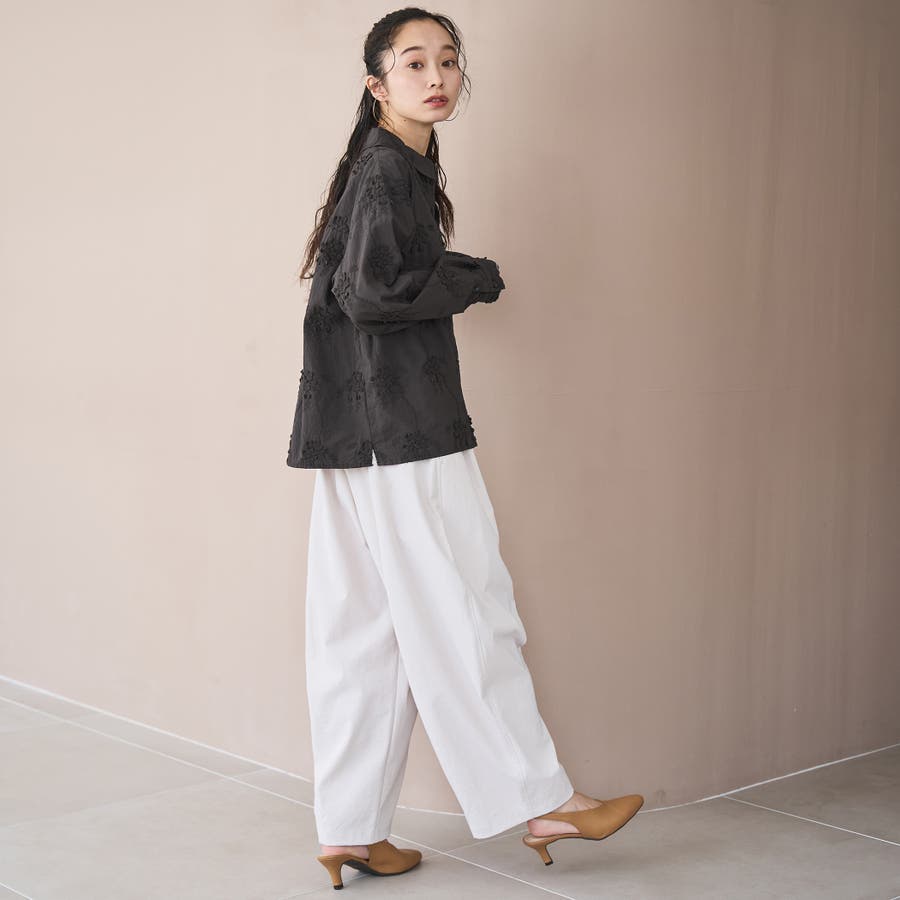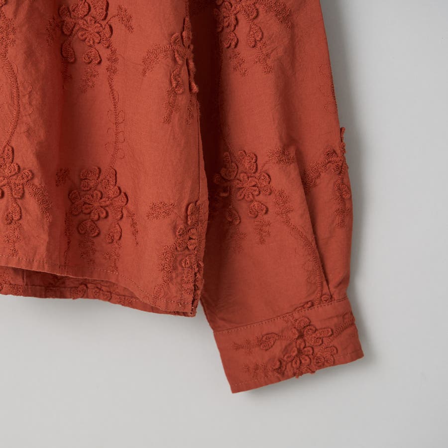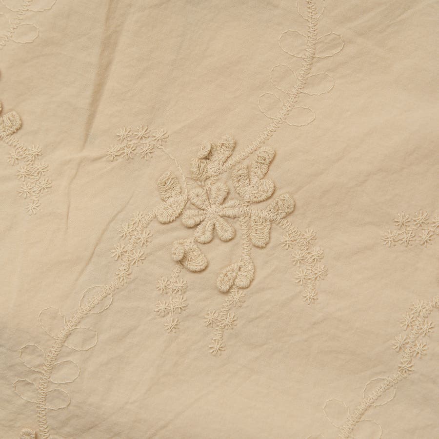 コットン素材に繊細で立体的な3D刺繍を施し、存在感のある仕上がりに。
