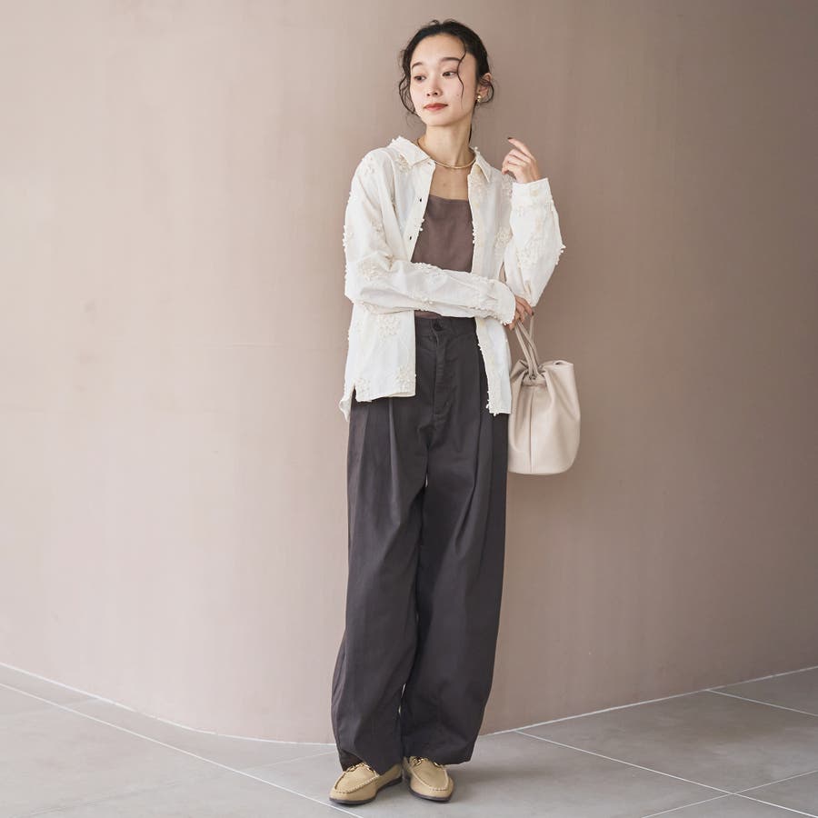 ワイドパンツやサロペットと合わせたスタイリングがおすすめです。