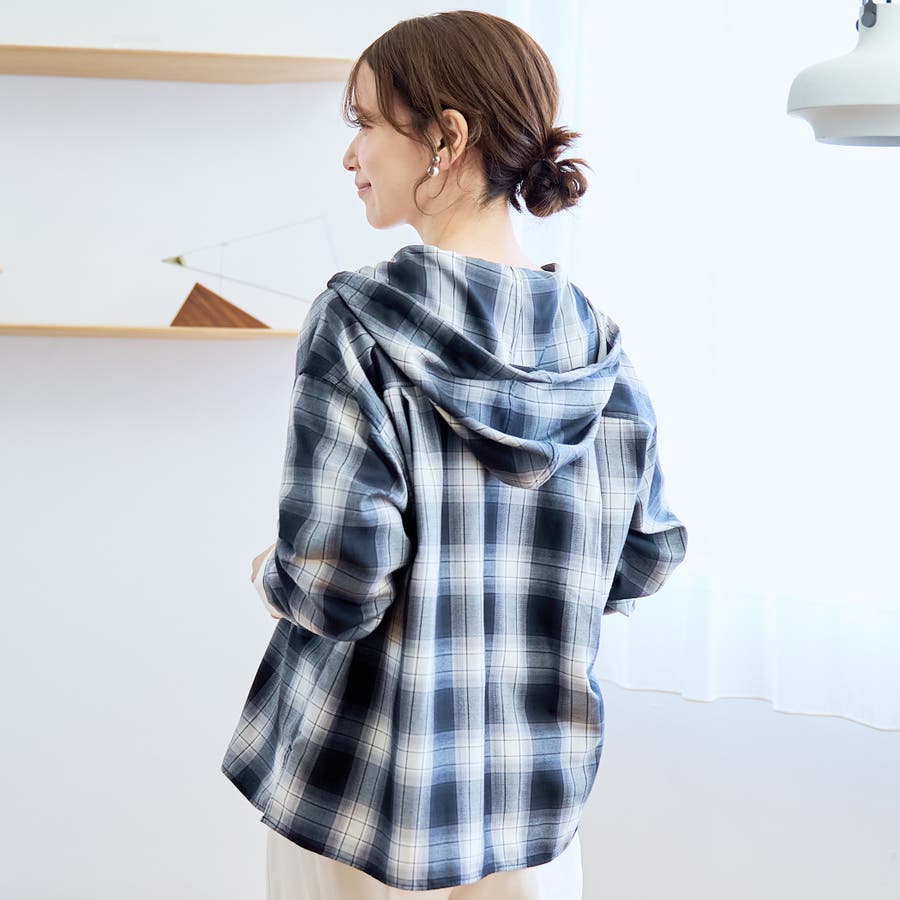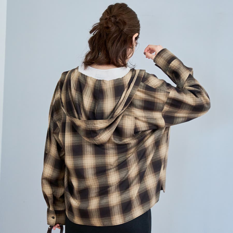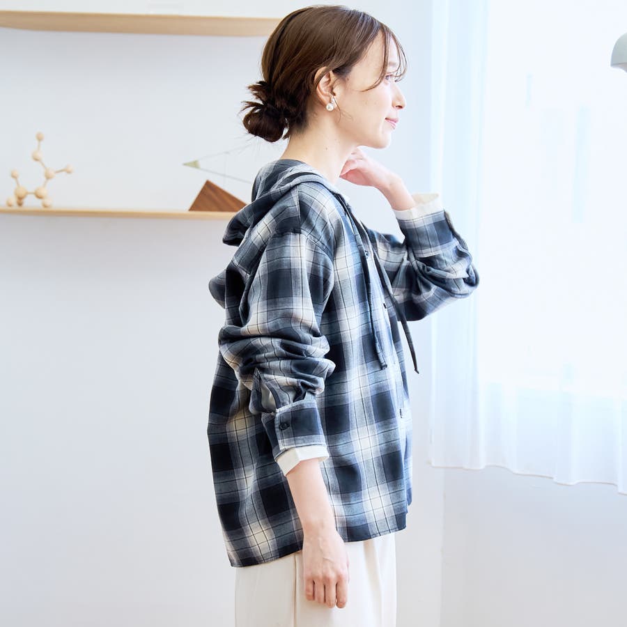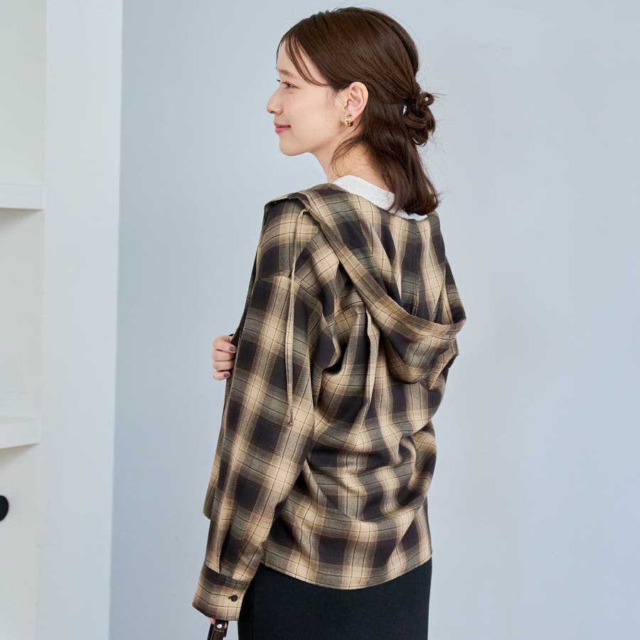 トレンド感のあるチェック柄にフードがついたデザインで、カジュアルながらもこなれた印象を演出します。