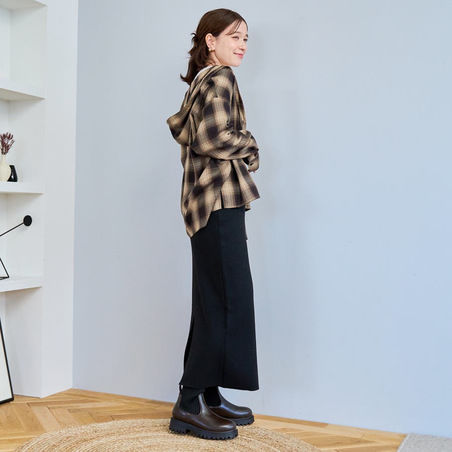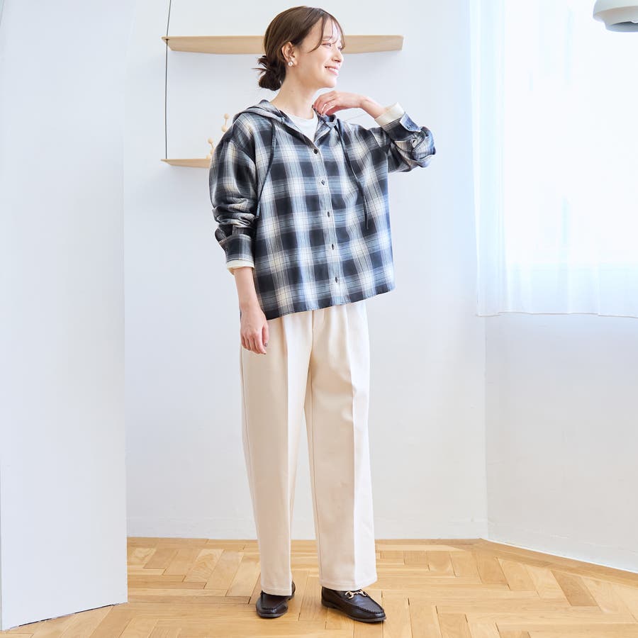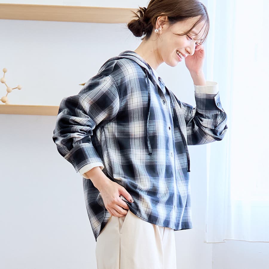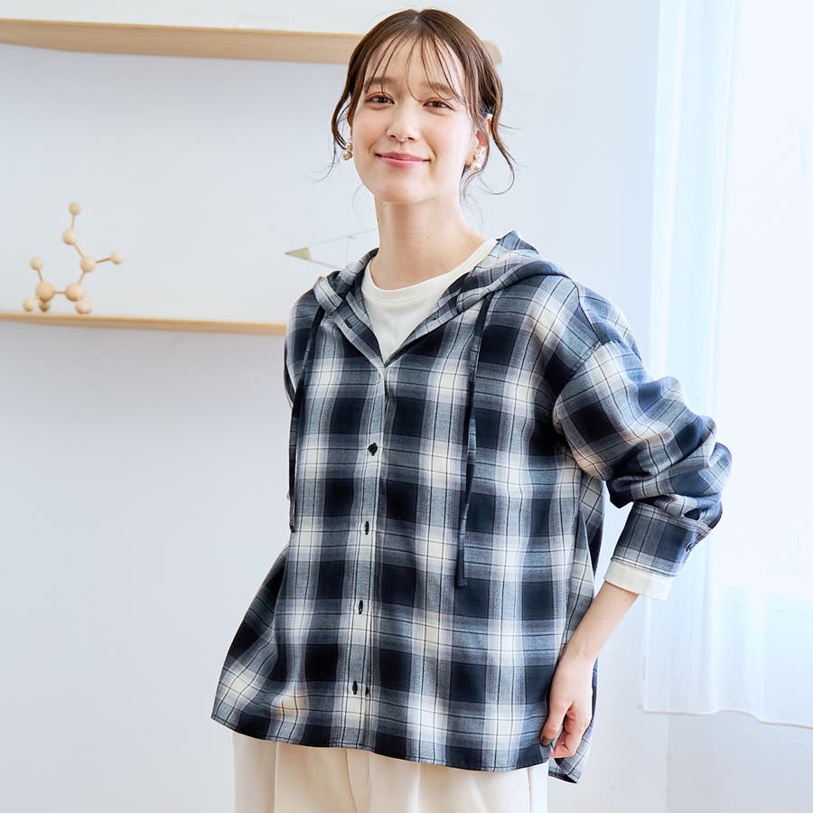 トレンド感のあるチェック柄にフードがついたデザインで、カジュアルながらもこなれた印象を演出します。