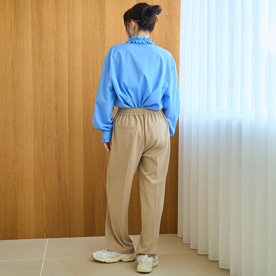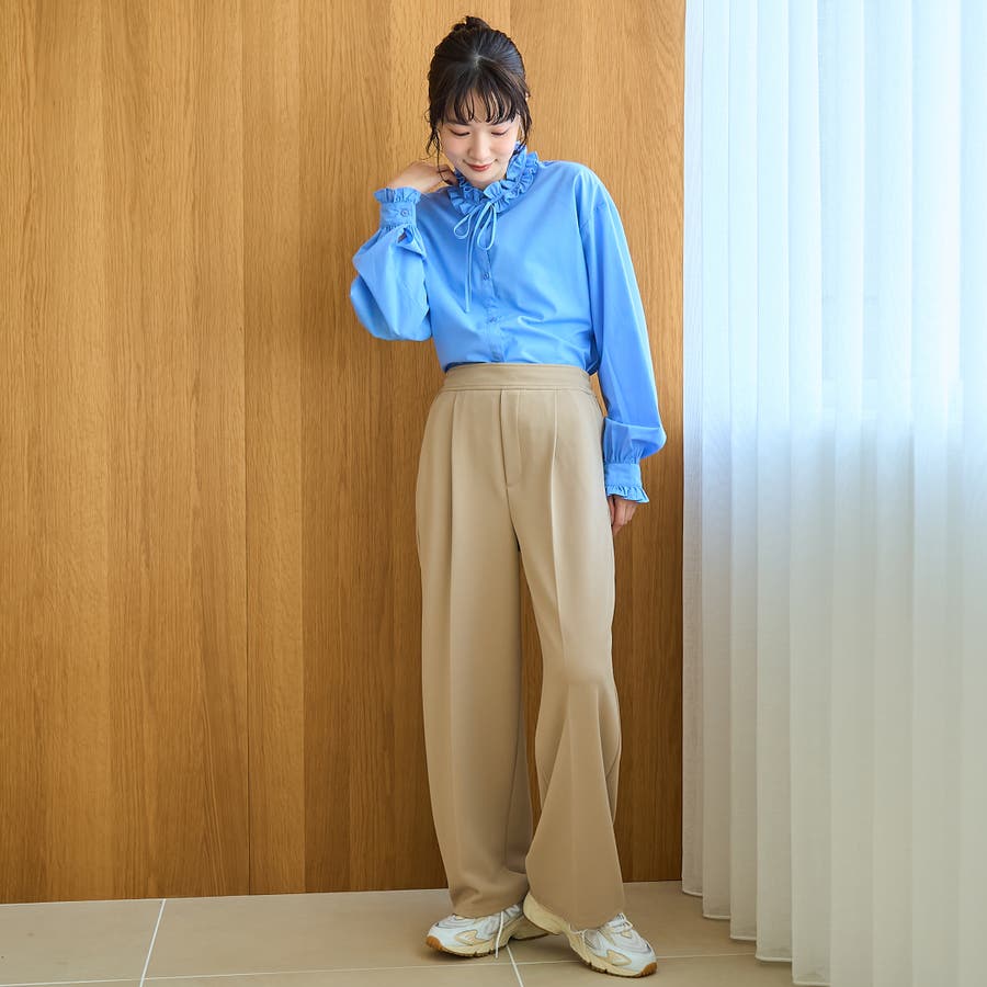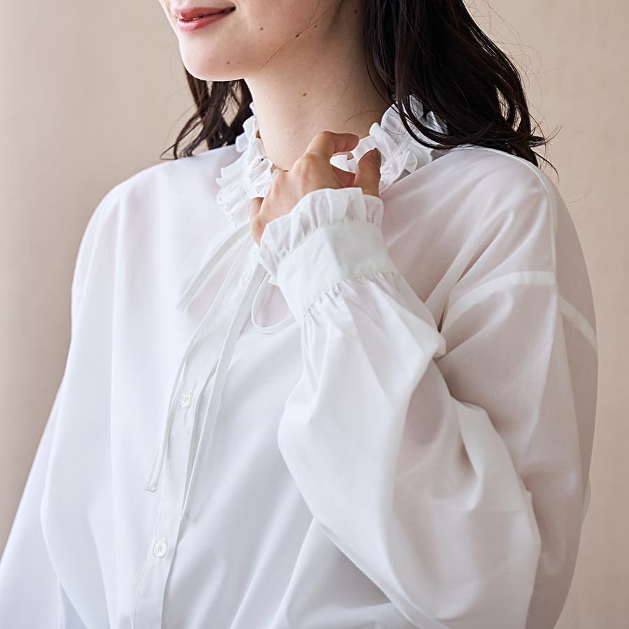 【イージーケア】フリルネックシャツ